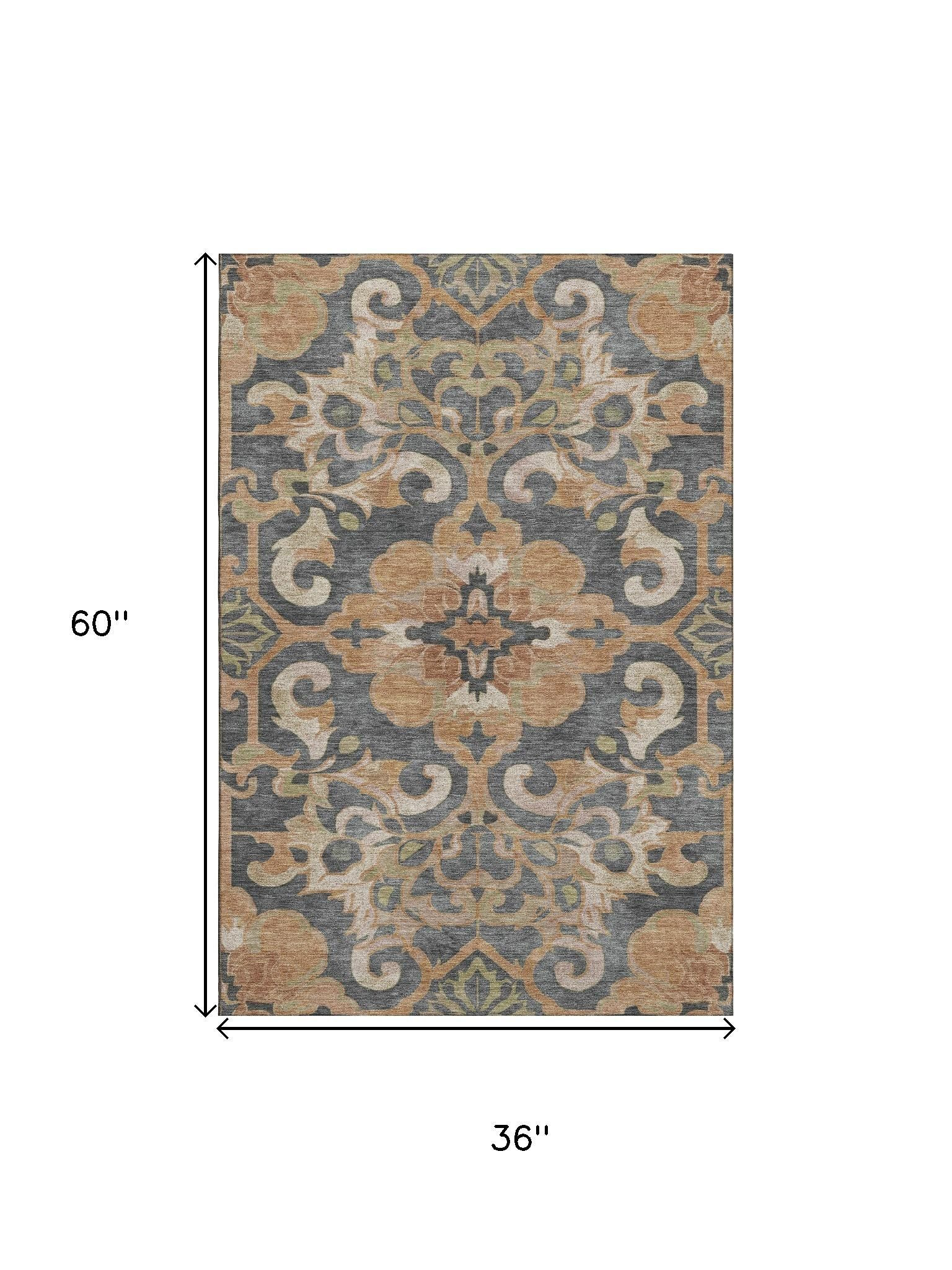 Add great coloration and comfortable texture to your space with this 3-foot x 5-foot terra cotta charcoal and beige floral medallion washable area rug with uv protection. Ideal for spaces with kids and pets, this rug is stain resistant to help repel dirt and spilled liquids. Built to last, this rug crafted from polyester fibers is known for its durability and long lasting appeal. Rugs are a great way to showcase your style, hide imperfections, warm your home and reduce noise. This smaller sized, traditional styled rug is just what you need for your walkway, bedside, in front of door, cabinet, refrigerator, or chair. 36.00-inch h x 60.00-inch w x 0.39-inch d.