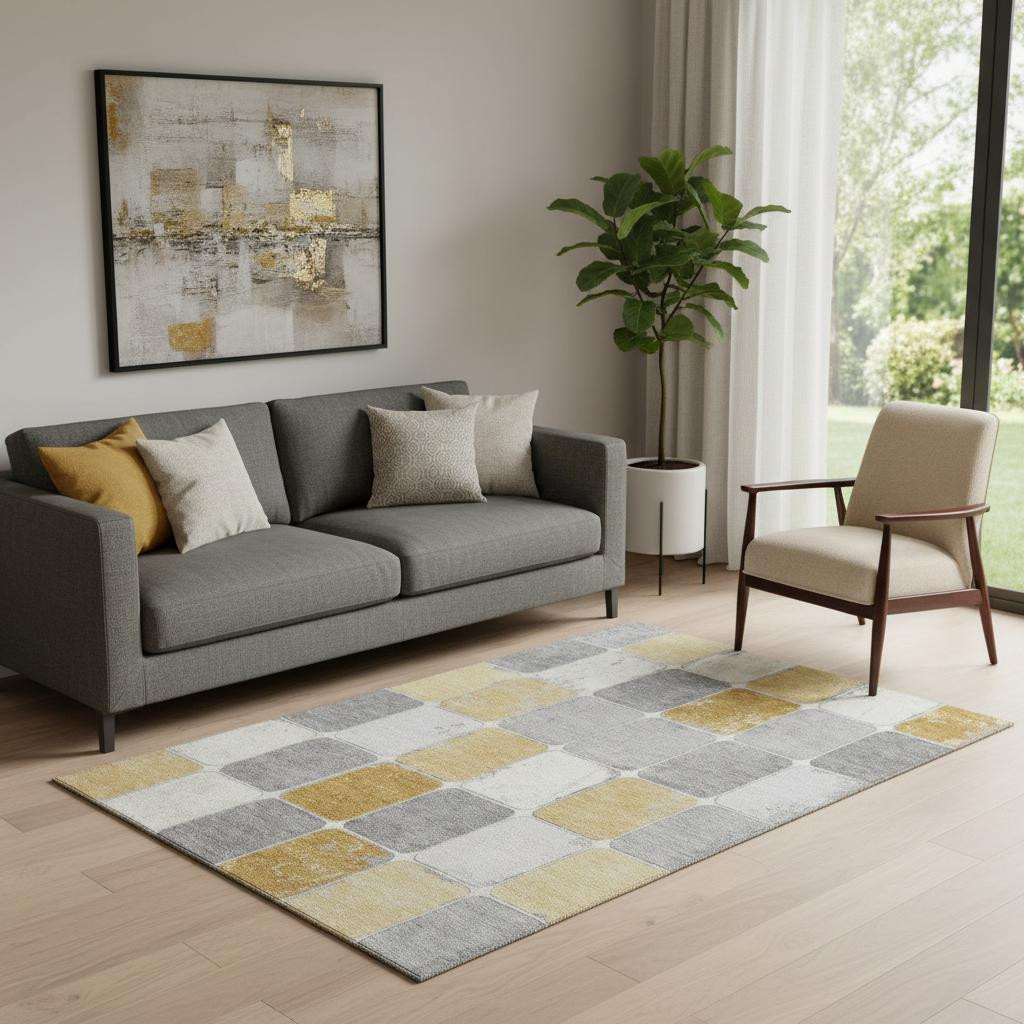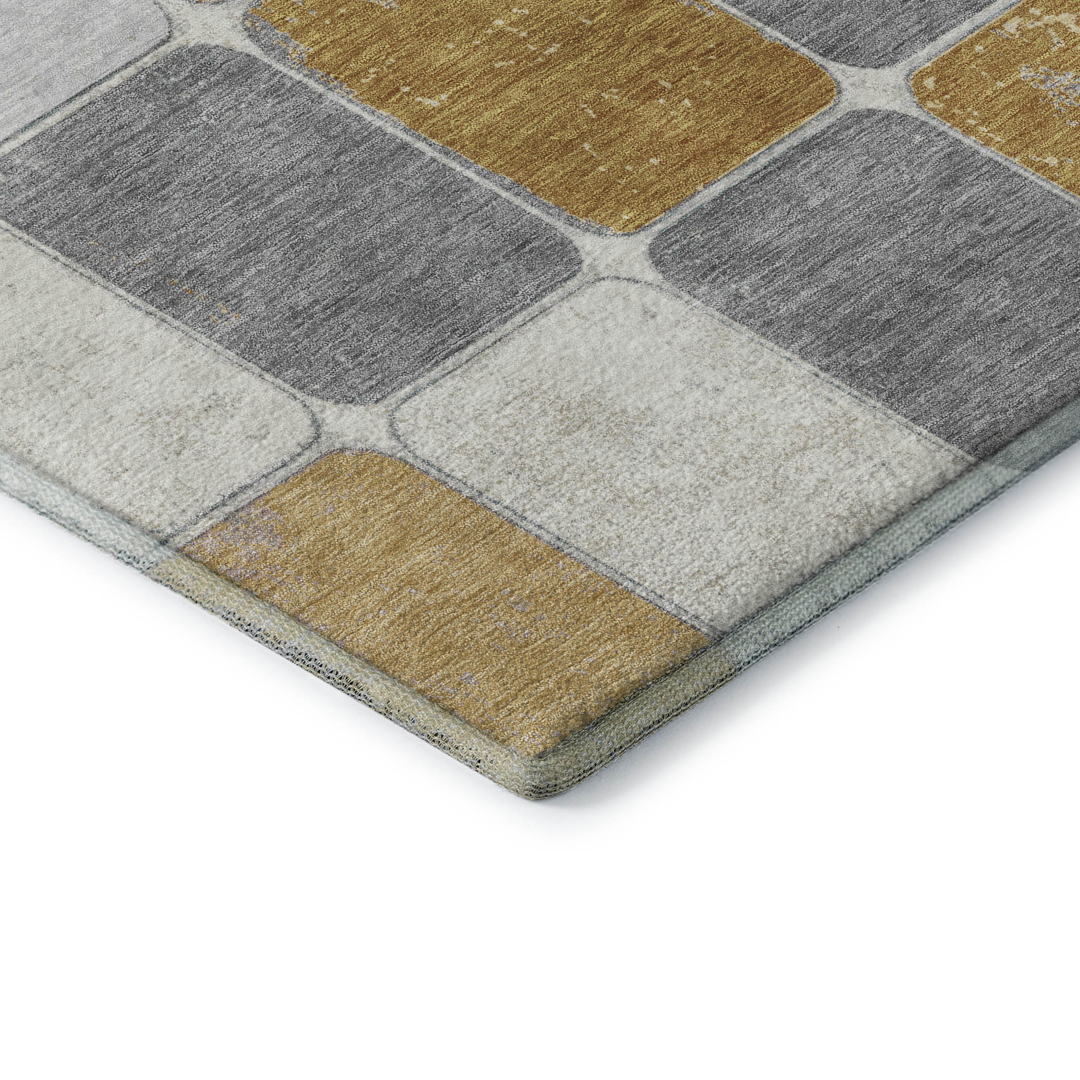 Add great coloration and comfortable texture to your space with this 5-foot x 8-foot gold gray and ivory geometric washable area rug with uv protection. Ideal for spaces with kids and pets, this rug is stain resistant to help repel dirt and spilled liquids. Built to last, this rug crafted from polyester fibers is known for its durability and long lasting appeal. Rugs are a great way to showcase your style, hide imperfections, warm your home and reduce noise. This larger sized, transitional styled rug is ready to create a focal point or statement piece in your room. 60.00-inch h x 90.00-inch w x 0.39-inch d.