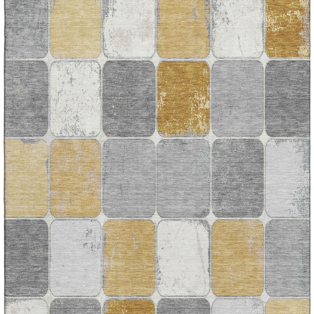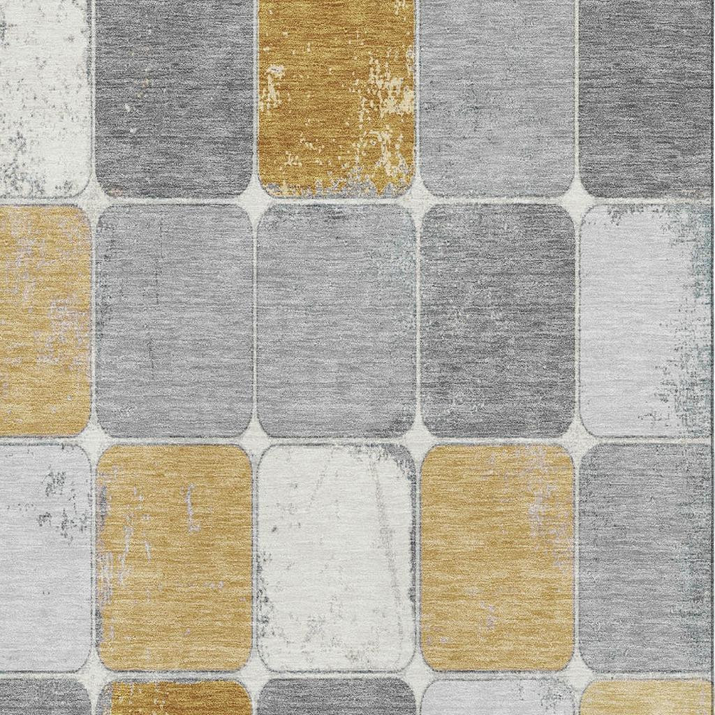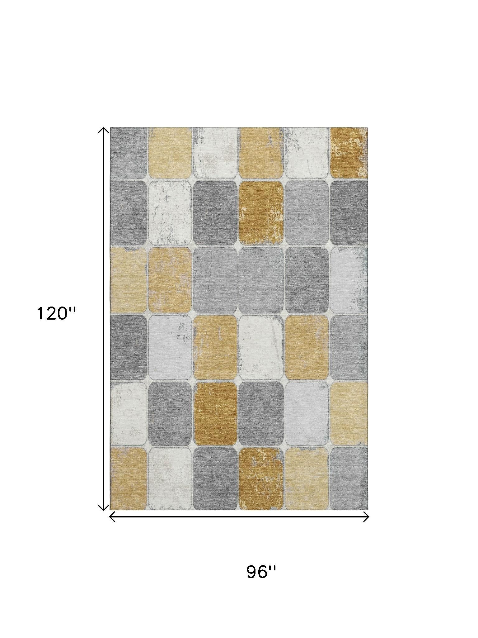 Add great coloration and comfortable texture to your space with this 8-foot x 10-foot gold gray and ivory geometric washable area rug with uv protection. Ideal for spaces with kids and pets, this rug is stain resistant to help repel dirt and spilled liquids. Built to last, this rug crafted from polyester fibers is known for its durability and long lasting appeal. Rugs are a great way to showcase your style, hide imperfections, warm your home and reduce noise. This larger sized, transitional styled rug is ready to create a focal point or statement piece in your room. 96.00-inch h x 120.00-inch w x 0.39-inch d.
