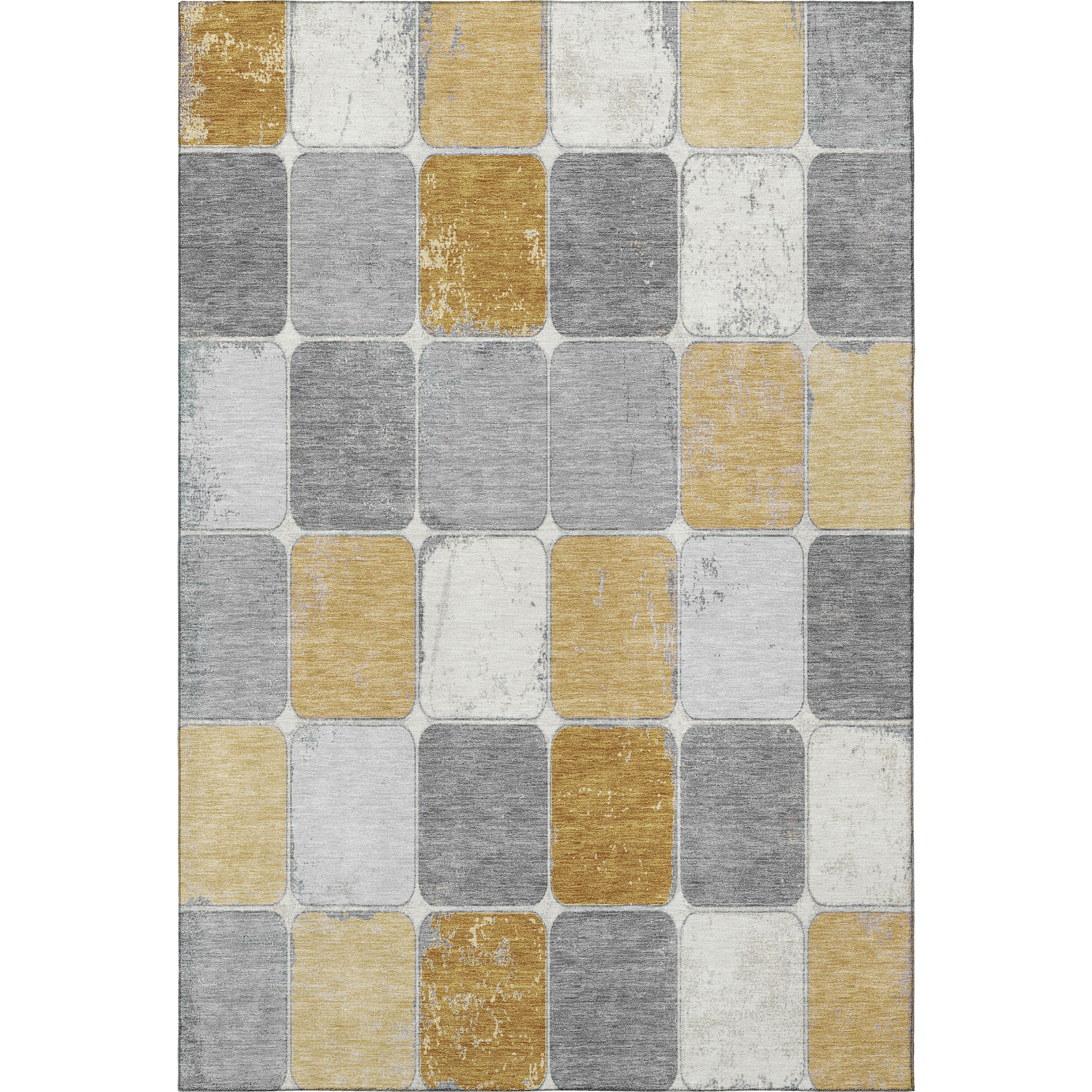 Add great coloration and comfortable texture to your space with this 10-foot x 14-foot gold gray and ivory geometric washable area rug with uv protection. Ideal for spaces with kids and pets, this rug is stain resistant to help repel dirt and spilled liquids. Built to last, this rug crafted from polyester fibers is known for its durability and long lasting appeal. Rugs are a great way to showcase your style, hide imperfections, warm your home and reduce noise. This larger sized, transitional styled rug is ready to create a focal point or statement piece in your room. 120.00-inch h x 168.00-inch w x 0.39-inch d.