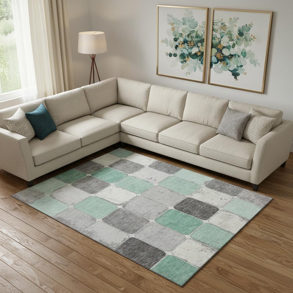 Add great coloration and comfortable texture to your space with this 10-foot x 14-foot mint green ivory and gray geometric washable area rug with uv protection. Ideal for spaces with kids and pets, this rug is stain resistant to help repel dirt and spilled liquids. Built to last, this rug crafted from polyester fibers is known for its durability and long lasting appeal. Rugs are a great way to showcase your style, hide imperfections, warm your home and reduce noise. This larger sized, transitional styled rug is ready to create a focal point or statement piece in your room. 120.00-inch h x 168.00-inch w x 0.39-inch d.