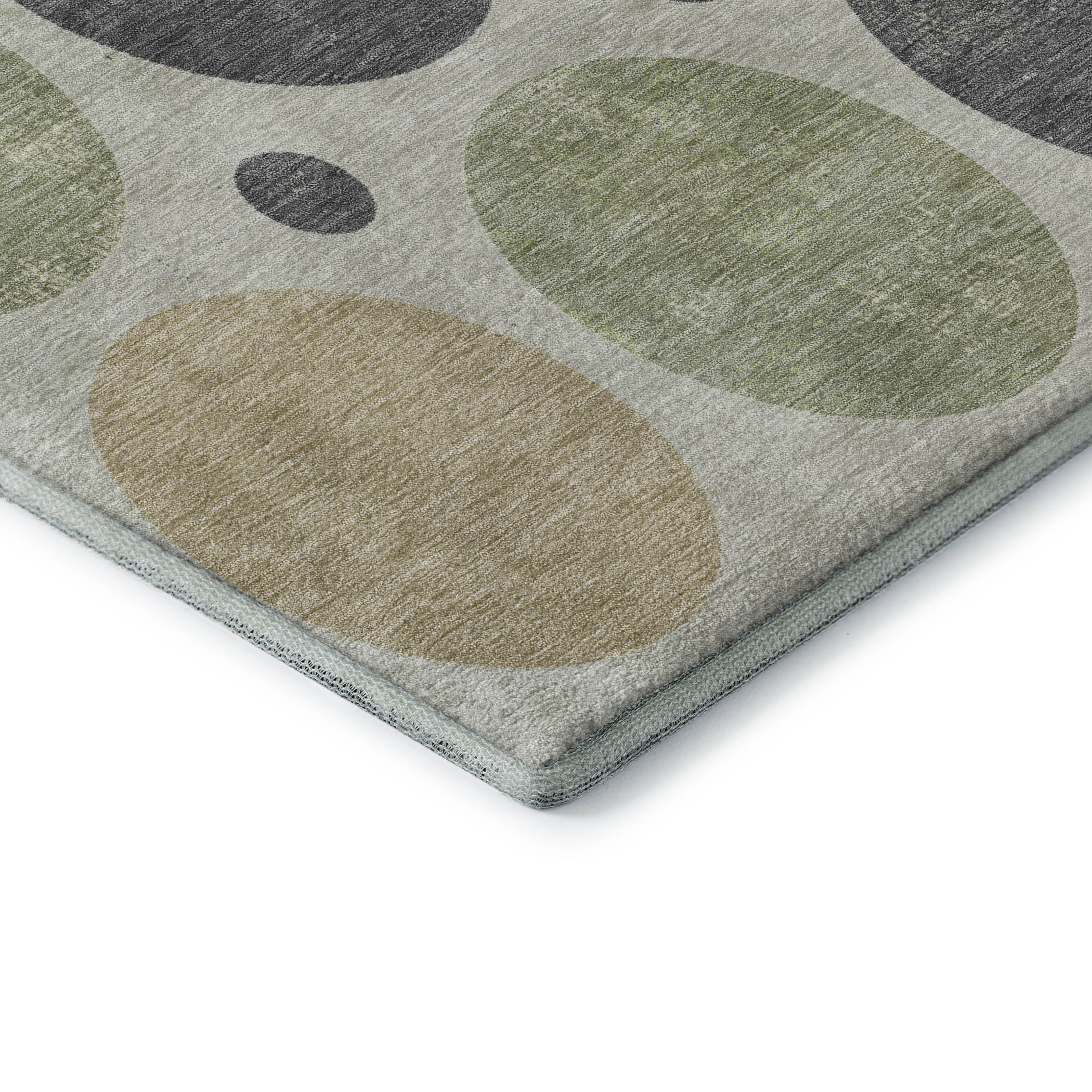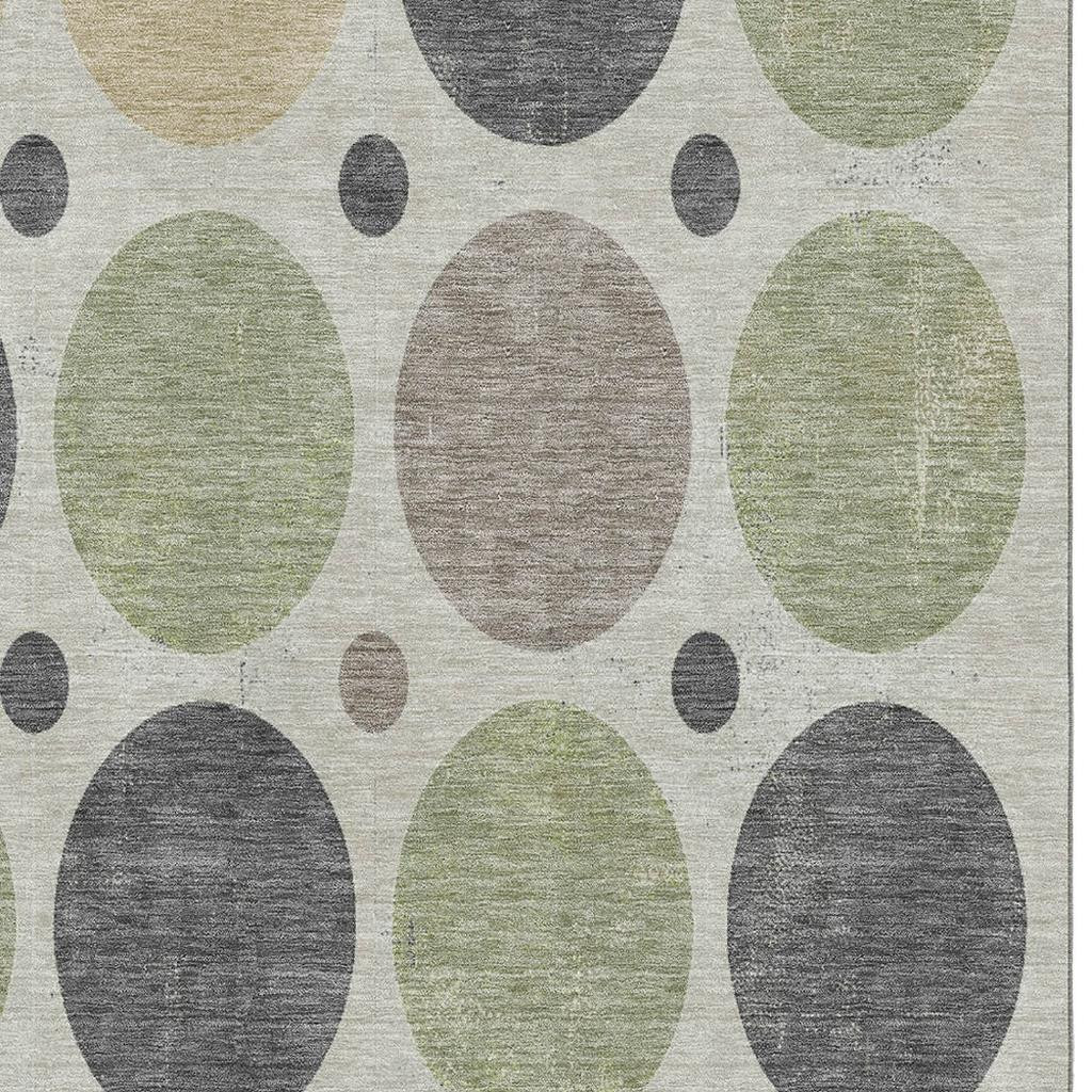 This 9-foot x 12-foot beige charcoal and green geometric washable area rug with uv protection, is a great way to add warmth to a room. Ideal for spaces with kids and pets, this rug is stain resistant to help repel dirt and spilled liquids. Built to last, this rug crafted from polyester fibers is known for its durability and long lasting appeal. Rugs are a great way to showcase your style, hide imperfections, warm your home and reduce noise. This larger sized, transitional styled rug is ready to create a focal point or statement piece in your room. 108.00-inch h x 144.00-inch w x 0.39-inch d.