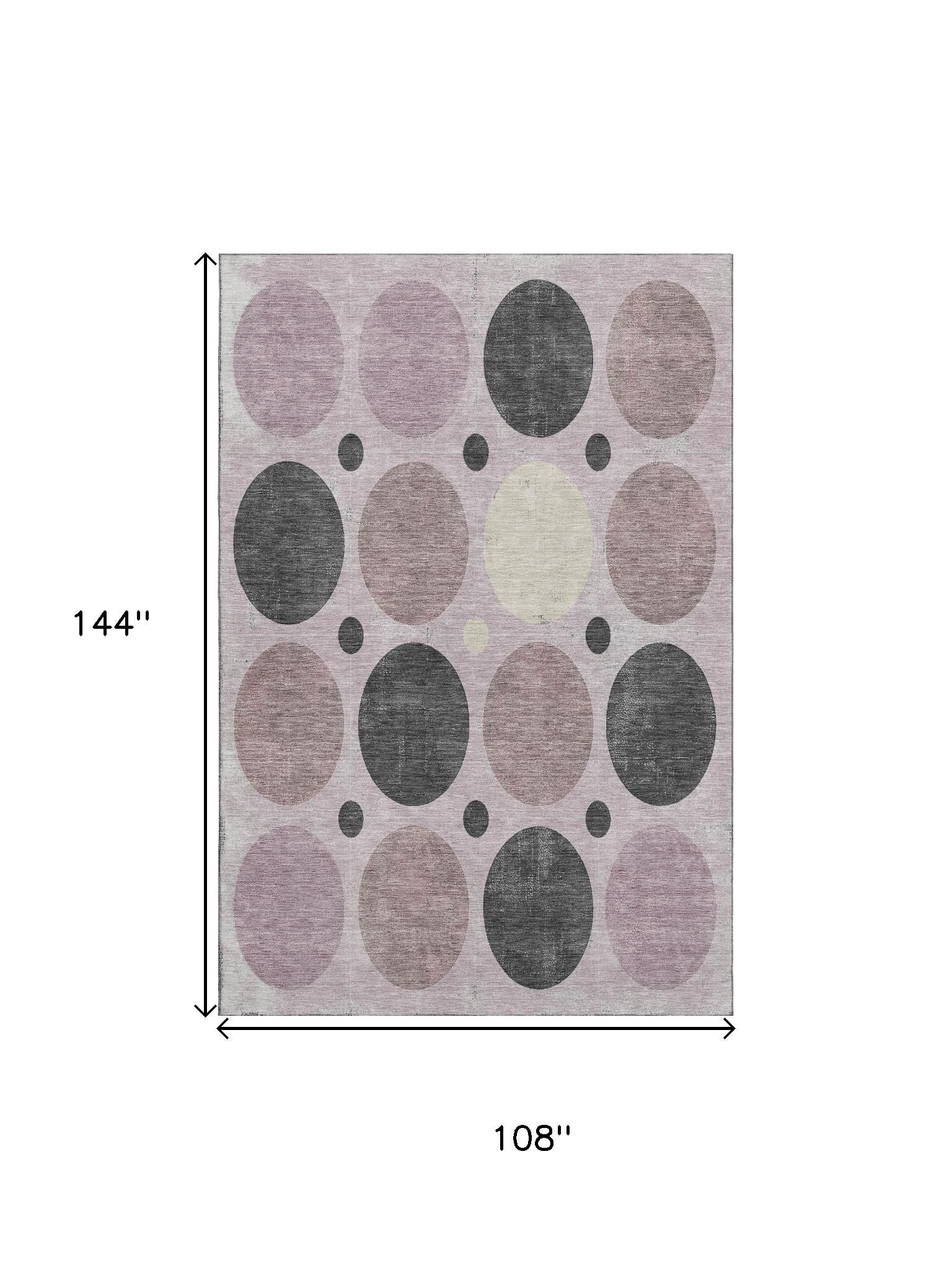 This 9-foot x 12-foot blush charcoal and ivory geometric washable area rug with uv protection, is a great way to add warmth to a room. Ideal for spaces with kids and pets, this rug is stain resistant to help repel dirt and spilled liquids. Built to last, this rug crafted from polyester fibers is known for its durability and long lasting appeal. Rugs are a great way to showcase your style, hide imperfections, warm your home and reduce noise. This larger sized, transitional styled rug is ready to create a focal point or statement piece in your room. 108.00-inch h x 144.00-inch w x 0.39-inch d.