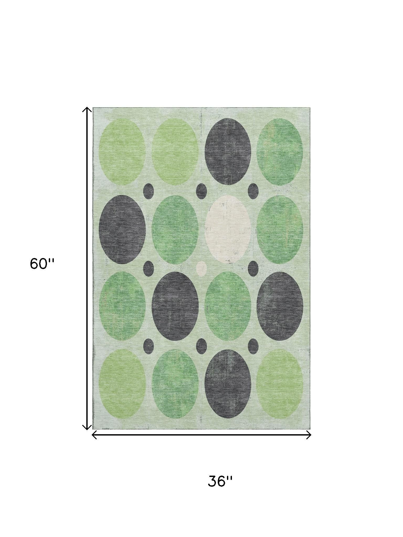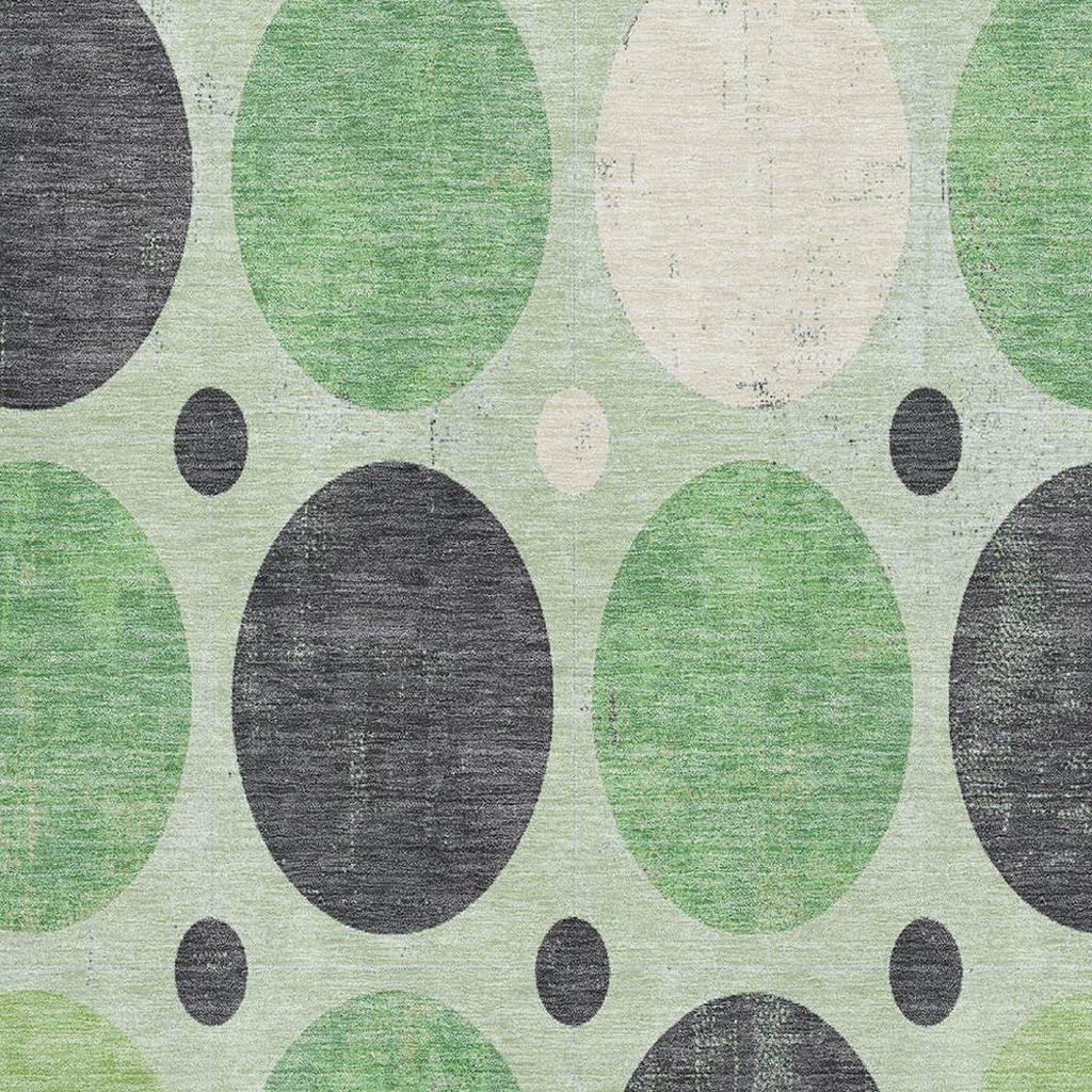 This 3-foot x 5-foot green ivory and charcoal geometric washable area rug with uv protection, is a great way to add warmth to a room. Ideal for spaces with kids and pets, this rug is stain resistant to help repel dirt and spilled liquids. Built to last, this rug crafted from polyester fibers is known for its durability and long lasting appeal. Rugs are a great way to showcase your style, hide imperfections, warm your home and reduce noise. This smaller sized, transitional styled rug is just what you need for your walkway, bedside, in front of door, cabinet, refrigerator, or chair. 36.00-inch h x 60.00-inch w x 0.39-inch d.