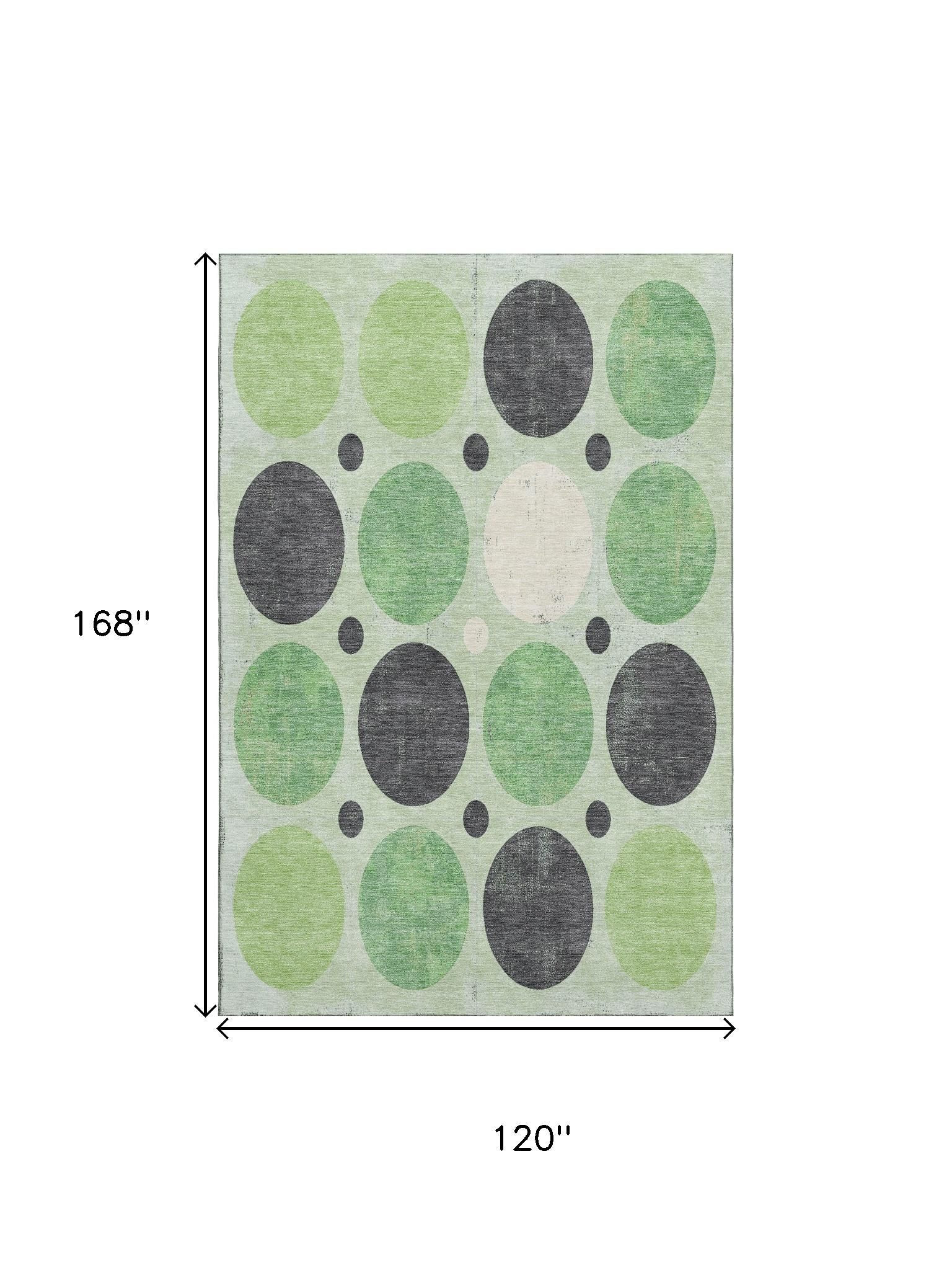 This 10-foot x 14-foot green ivory and charcoal geometric washable area rug with uv protection, is a great way to add warmth to a room. Ideal for spaces with kids and pets, this rug is stain resistant to help repel dirt and spilled liquids. Built to last, this rug crafted from polyester fibers is known for its durability and long lasting appeal. Rugs are a great way to showcase your style, hide imperfections, warm your home and reduce noise. This larger sized, transitional styled rug is ready to create a focal point or statement piece in your room. 120.00-inch h x 168.00-inch w x 0.39-inch d.