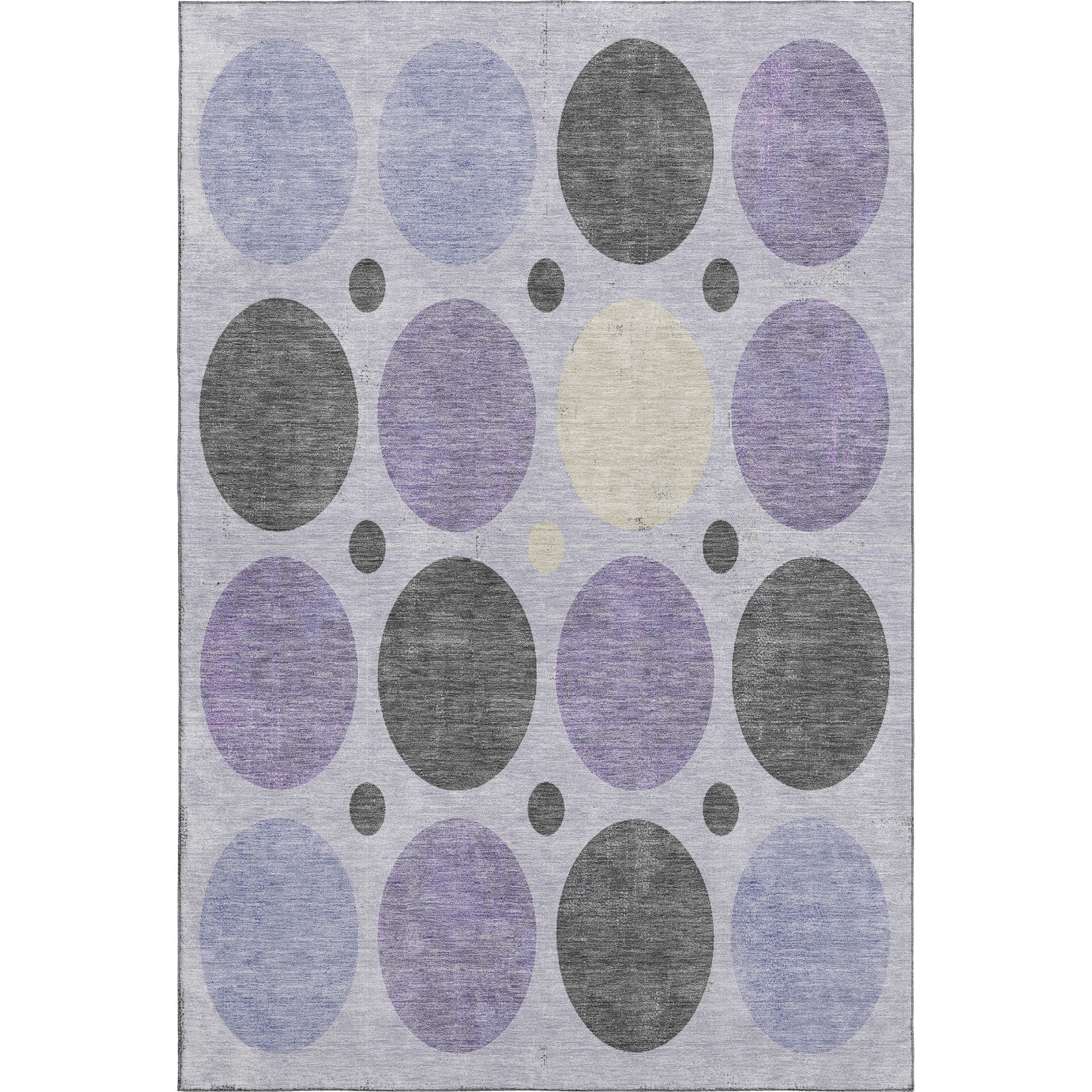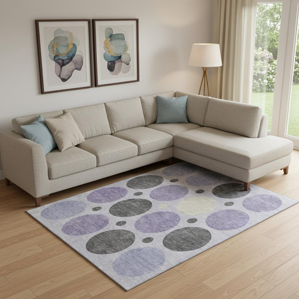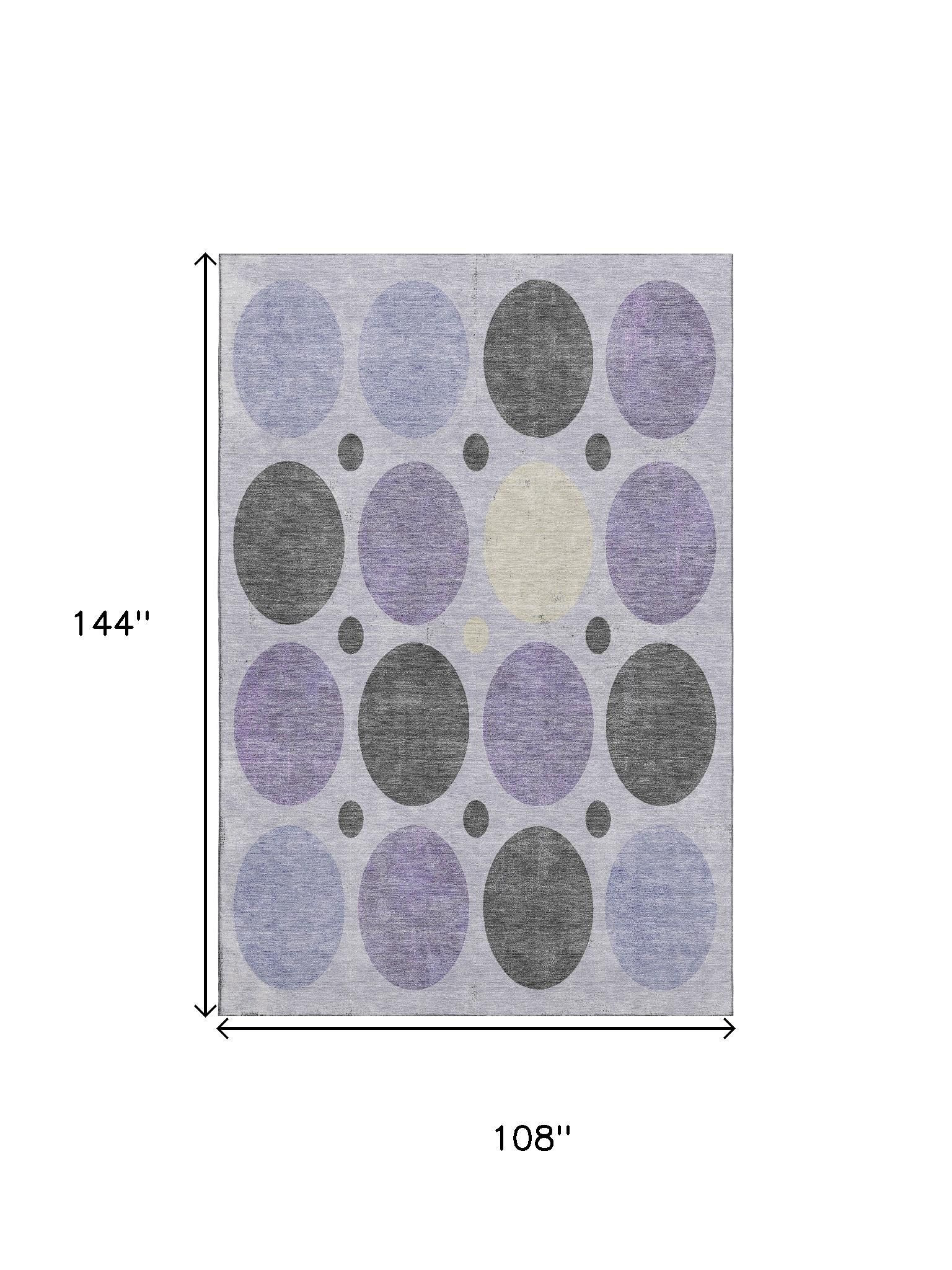 Add great coloration and comfortable texture to your space with this 9-foot x 12-foot lavender charcoal and ivory geometric washable area rug with uv protection. Ideal for spaces with kids and pets, this rug is stain resistant to help repel dirt and spilled liquids. Built to last, this rug crafted from polyester fibers is known for its durability and long lasting appeal. Rugs are a great way to showcase your style, hide imperfections, warm your home and reduce noise. This larger sized, transitional styled rug is ready to create a focal point or statement piece in your room. 108.00-inch h x 144.00-inch w x 0.39-inch d.