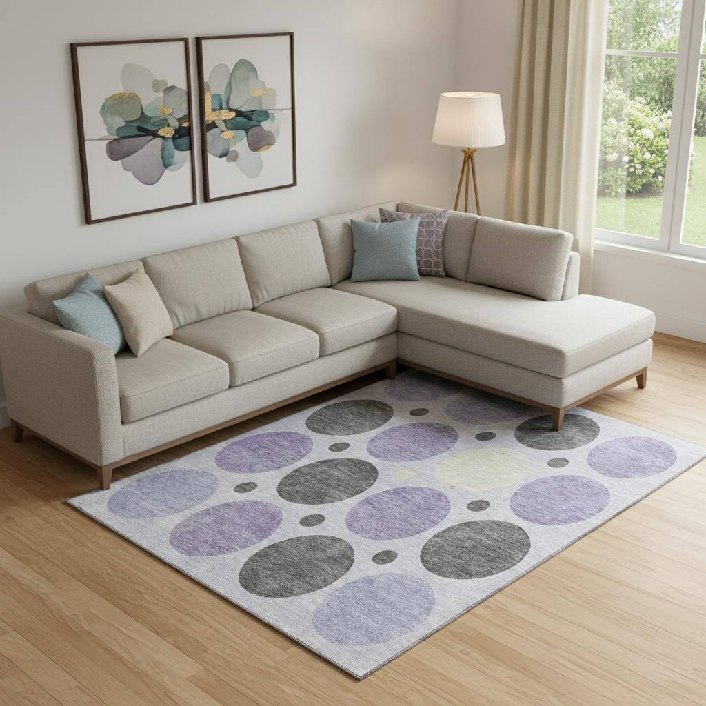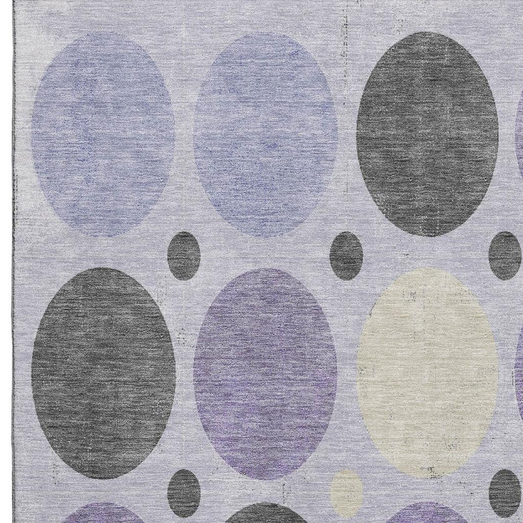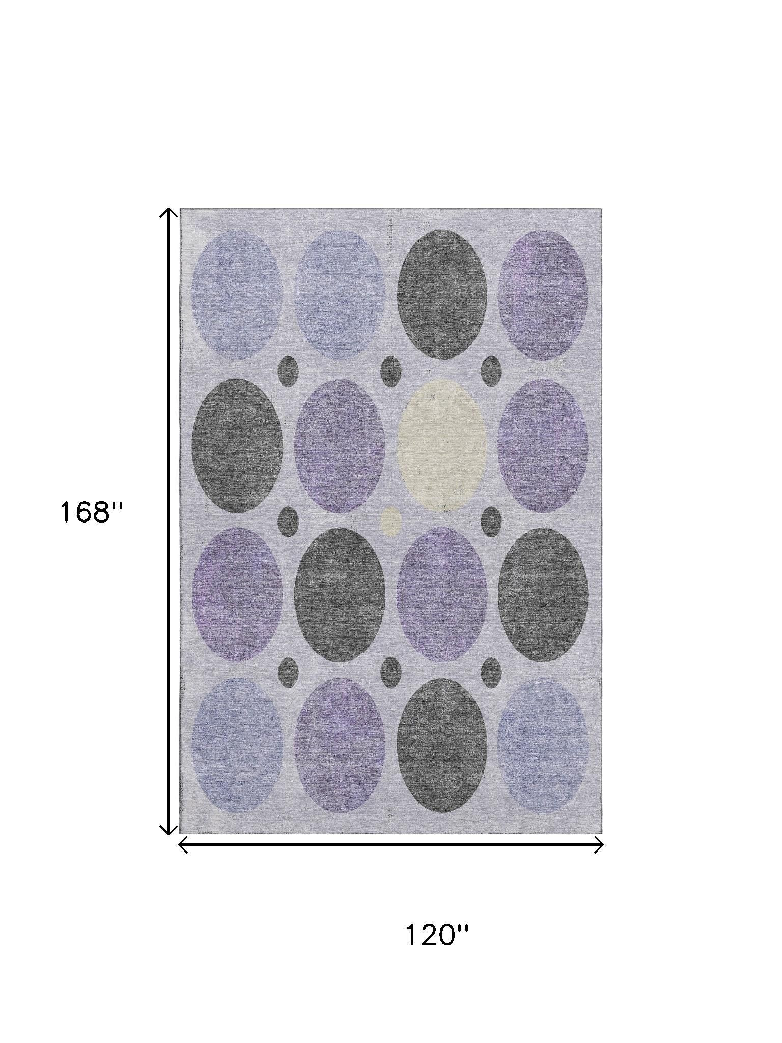 Add some artistry to your room with this 10-foot x 14-foot lavender charcoal and ivory geometric washable area rug with uv protection. Ideal for spaces with kids and pets, this rug is stain resistant to help repel dirt and spilled liquids. Built to last, this rug crafted from polyester fibers is known for its durability and long lasting appeal. Rugs are a great way to showcase your style, hide imperfections, warm your home and reduce noise. This larger sized, transitional styled rug is ready to create a focal point or statement piece in your room. 120.00-inch h x 168.00-inch w x 0.39-inch d.