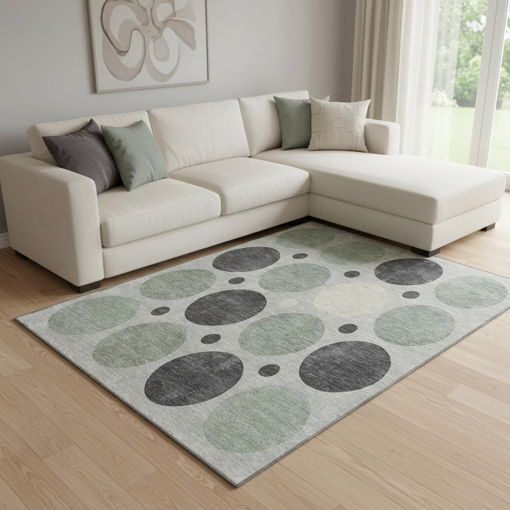Set an inviting tone in your space with this 8-foot x 10-foot sage charcoal and ivory geometric washable area rug with uv protection. Ideal for spaces with kids and pets, this rug is stain resistant to help repel dirt and spilled liquids. Built to last, this rug crafted from polyester fibers is known for its durability and long lasting appeal. Rugs are a great way to showcase your style, hide imperfections, warm your home and reduce noise. This larger sized, transitional styled rug is ready to create a focal point or statement piece in your room. 96.00-inch h x 120.00-inch w x 0.39-inch d.