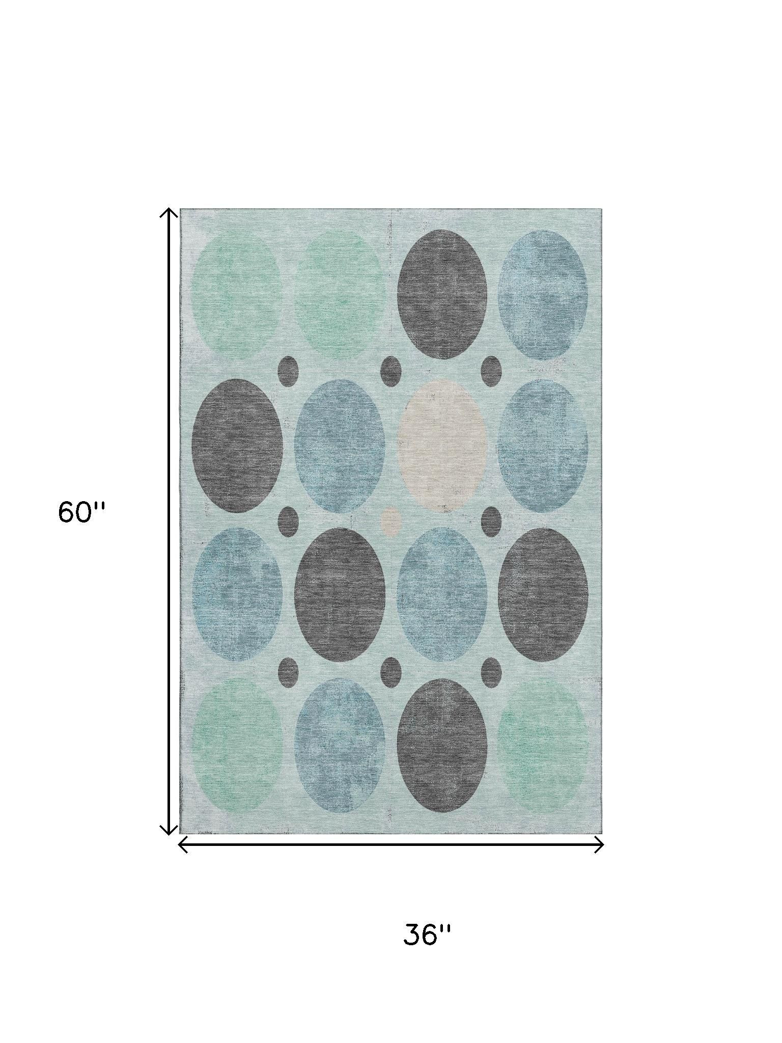 Set an inviting tone in your space with this 3-foot x 5-foot teal charcoal and beige geometric washable area rug with uv protection. Ideal for spaces with kids and pets, this rug is stain resistant to help repel dirt and spilled liquids. Built to last, this rug crafted from polyester fibers is known for its durability and long lasting appeal. Rugs are a great way to showcase your style, hide imperfections, warm your home and reduce noise. This smaller sized, transitional styled rug is just what you need for your walkway, bedside, in front of door, cabinet, refrigerator, or chair. 36.00-inch h x 60.00-inch w x 0.39-inch d.