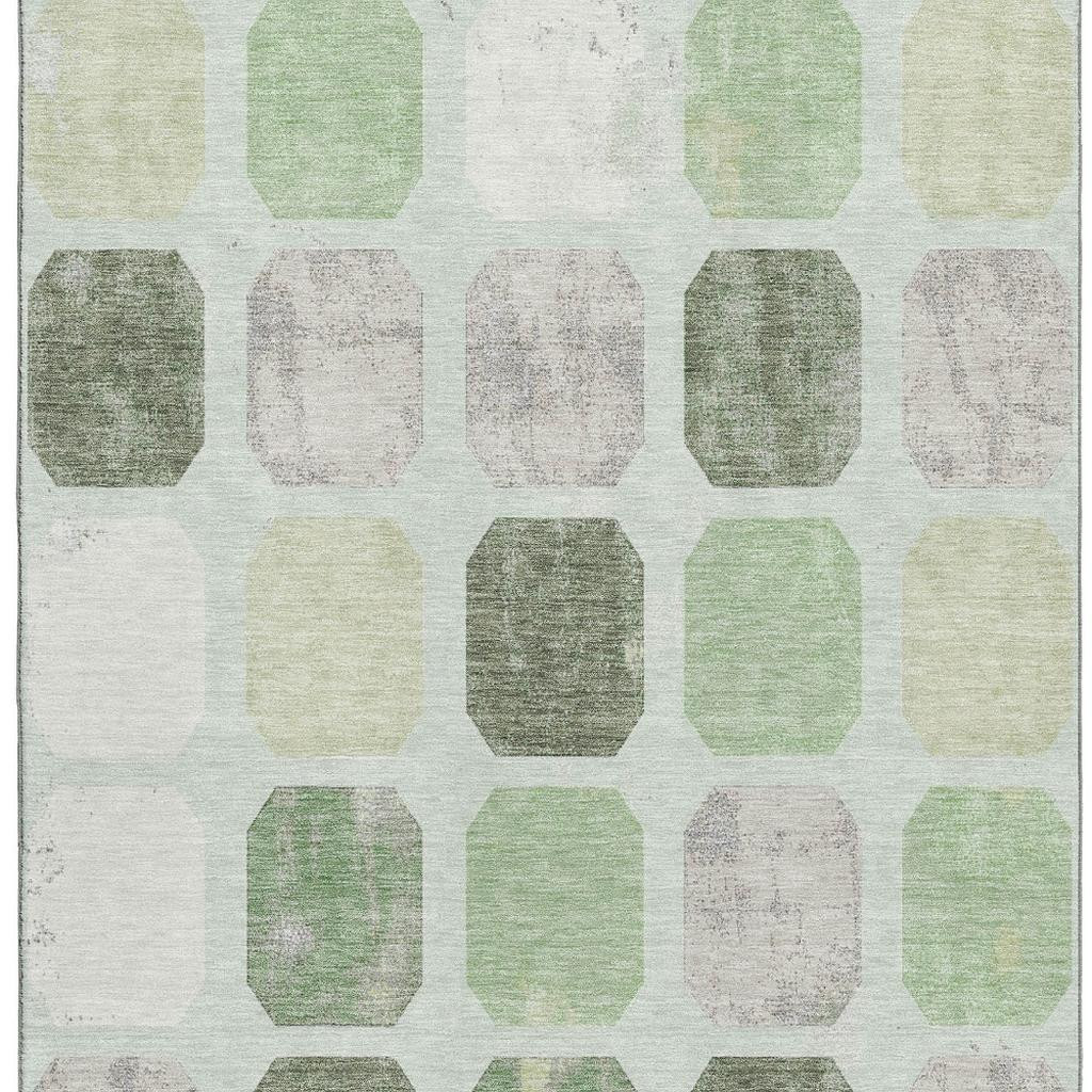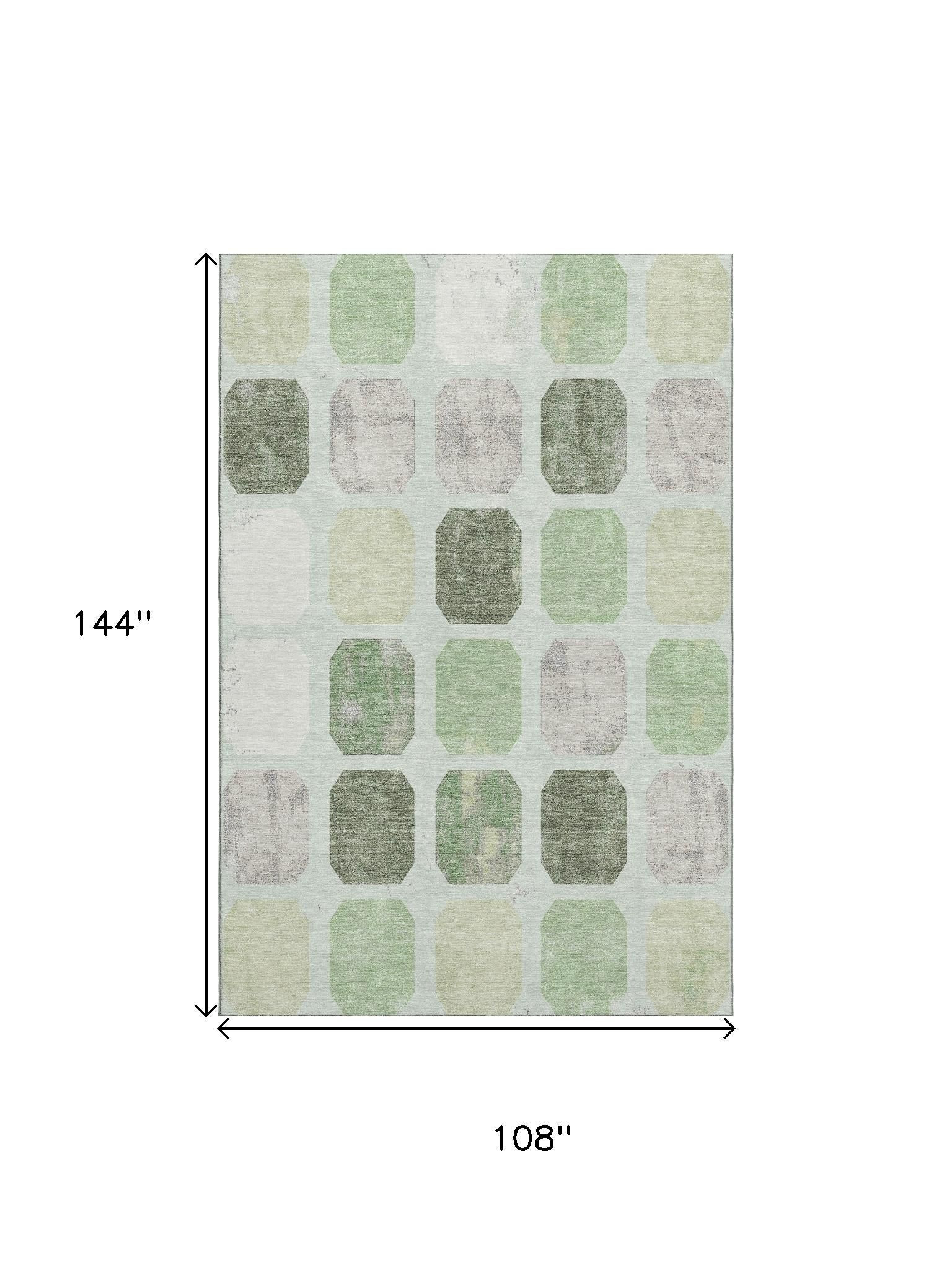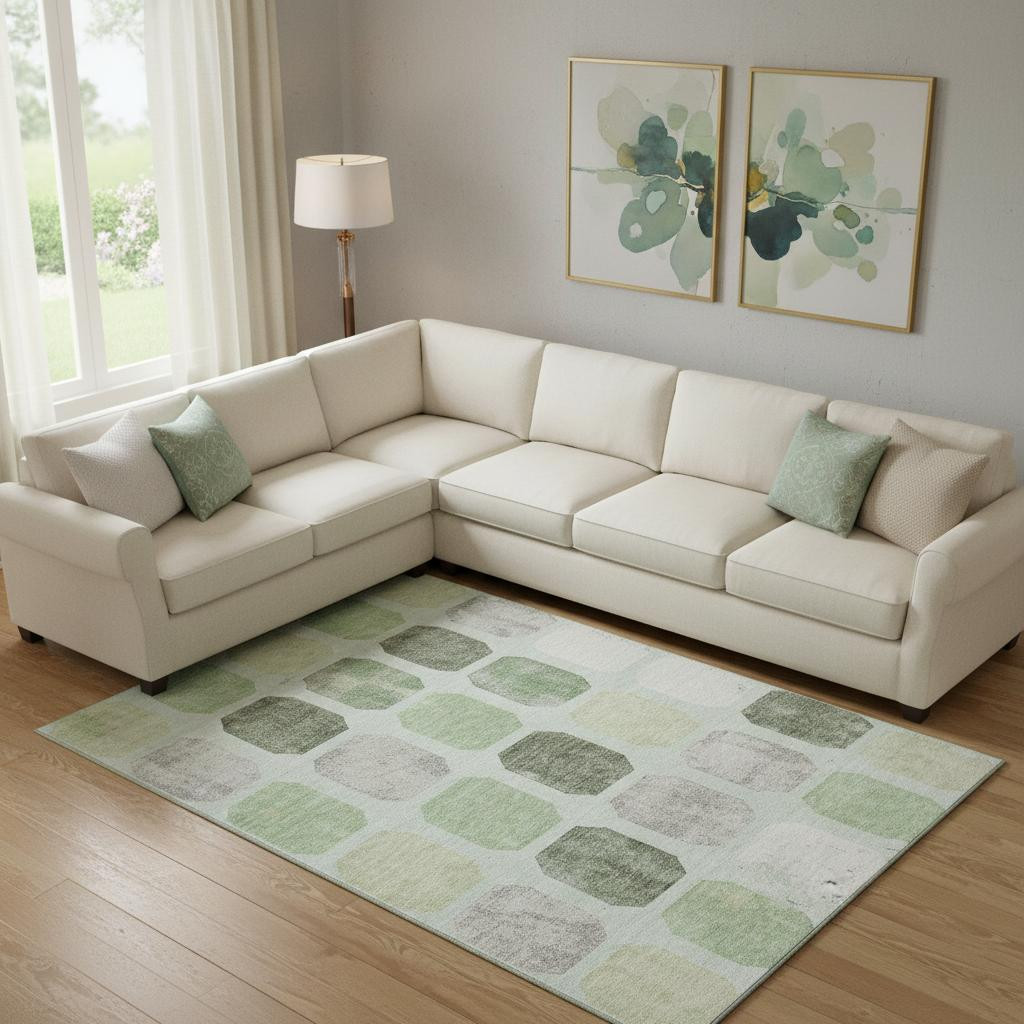 Set an inviting tone in your space with this 9-foot x 12-foot artichoke green gray and ivory geometric washable area rug with uv protection. Ideal for spaces with kids and pets, this rug is stain resistant to help repel dirt and spilled liquids. Built to last, this rug crafted from polyester fibers is known for its durability and long lasting appeal. Rugs are a great way to showcase your style, hide imperfections, warm your home and reduce noise. This larger sized, transitional styled rug is ready to create a focal point or statement piece in your room. 108.00-inch h x 144.00-inch w x 0.39-inch d.