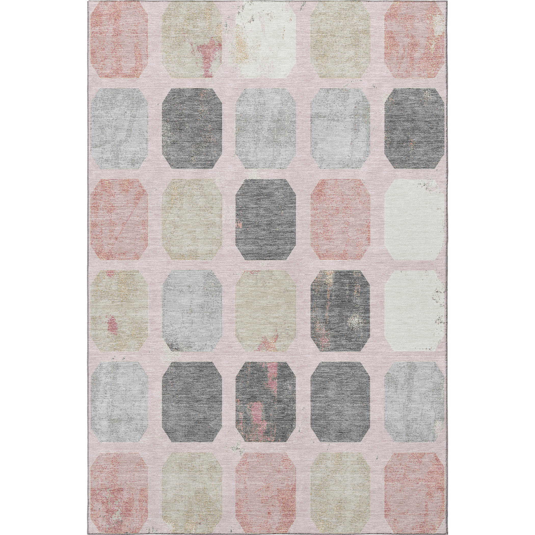 Add some artistry to your room with this 8-foot x 10-foot blush charcoal and ivory geometric washable area rug with uv protection. Ideal for spaces with kids and pets, this rug is stain resistant to help repel dirt and spilled liquids. Built to last, this rug crafted from polyester fibers is known for its durability and long lasting appeal. Rugs are a great way to showcase your style, hide imperfections, warm your home and reduce noise. This larger sized, transitional styled rug is ready to create a focal point or statement piece in your room. 96.00-inch h x 120.00-inch w x 0.39-inch d.
