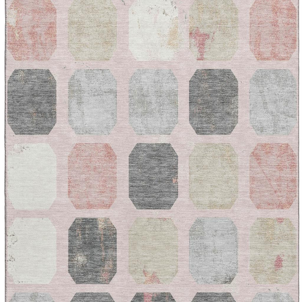 Add some artistry to your room with this 10-foot x 14-foot blush charcoal and ivory geometric washable area rug with uv protection. Ideal for spaces with kids and pets, this rug is stain resistant to help repel dirt and spilled liquids. Built to last, this rug crafted from polyester fibers is known for its durability and long lasting appeal. Rugs are a great way to showcase your style, hide imperfections, warm your home and reduce noise. This larger sized, transitional styled rug is ready to create a focal point or statement piece in your room. 120.00-inch h x 168.00-inch w x 0.39-inch d.