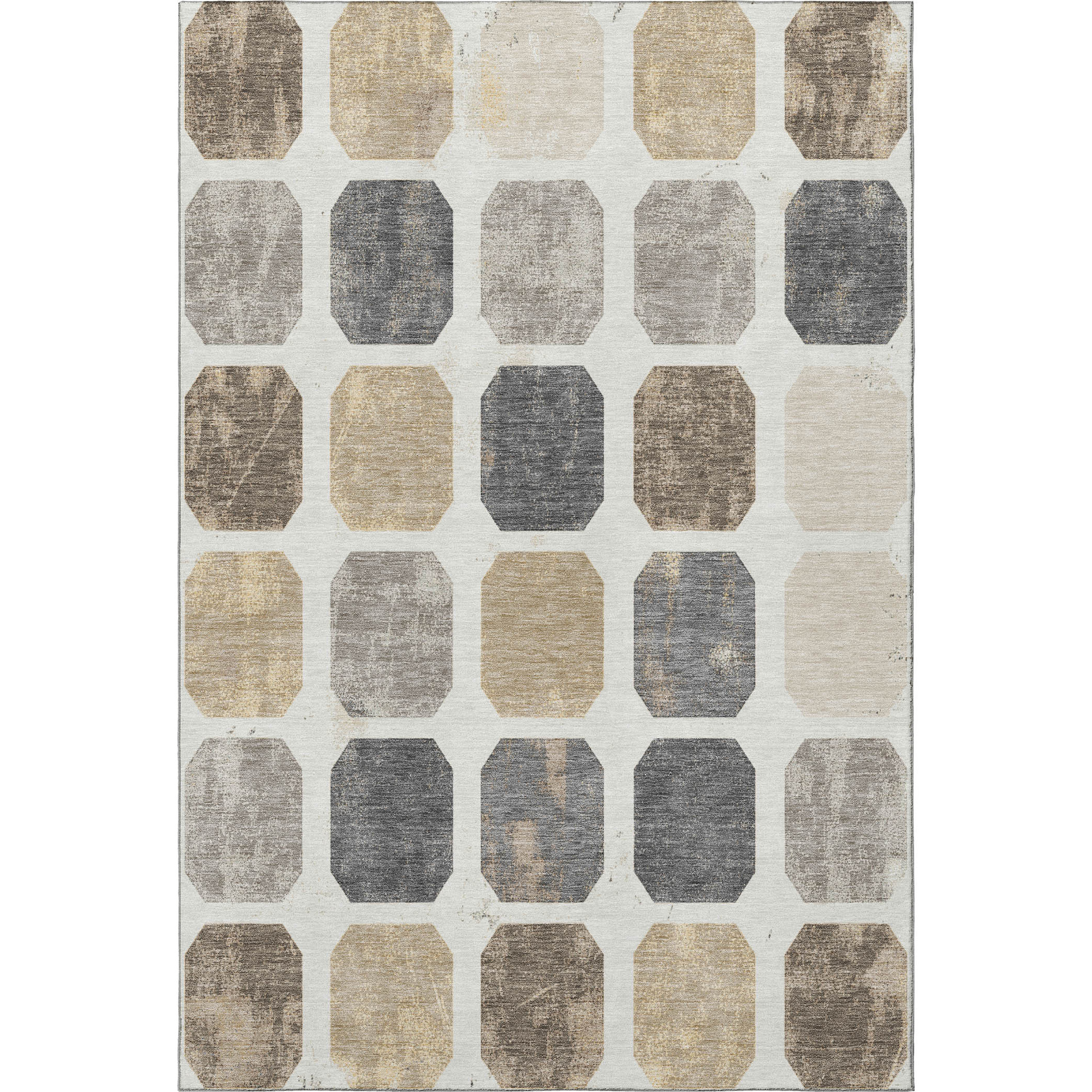 This 5-foot x 8-foot ivory beige and gray geometric washable area rug with uv protection, is a great way to add warmth to a room. Ideal for spaces with kids and pets, this rug is stain resistant to help repel dirt and spilled liquids. Built to last, this rug crafted from polyester fibers is known for its durability and long lasting appeal. Rugs are a great way to showcase your style, hide imperfections, warm your home and reduce noise. This larger sized, transitional styled rug is ready to create a focal point or statement piece in your room. 60.00-inch h x 90.00-inch w x 0.39-inch d.