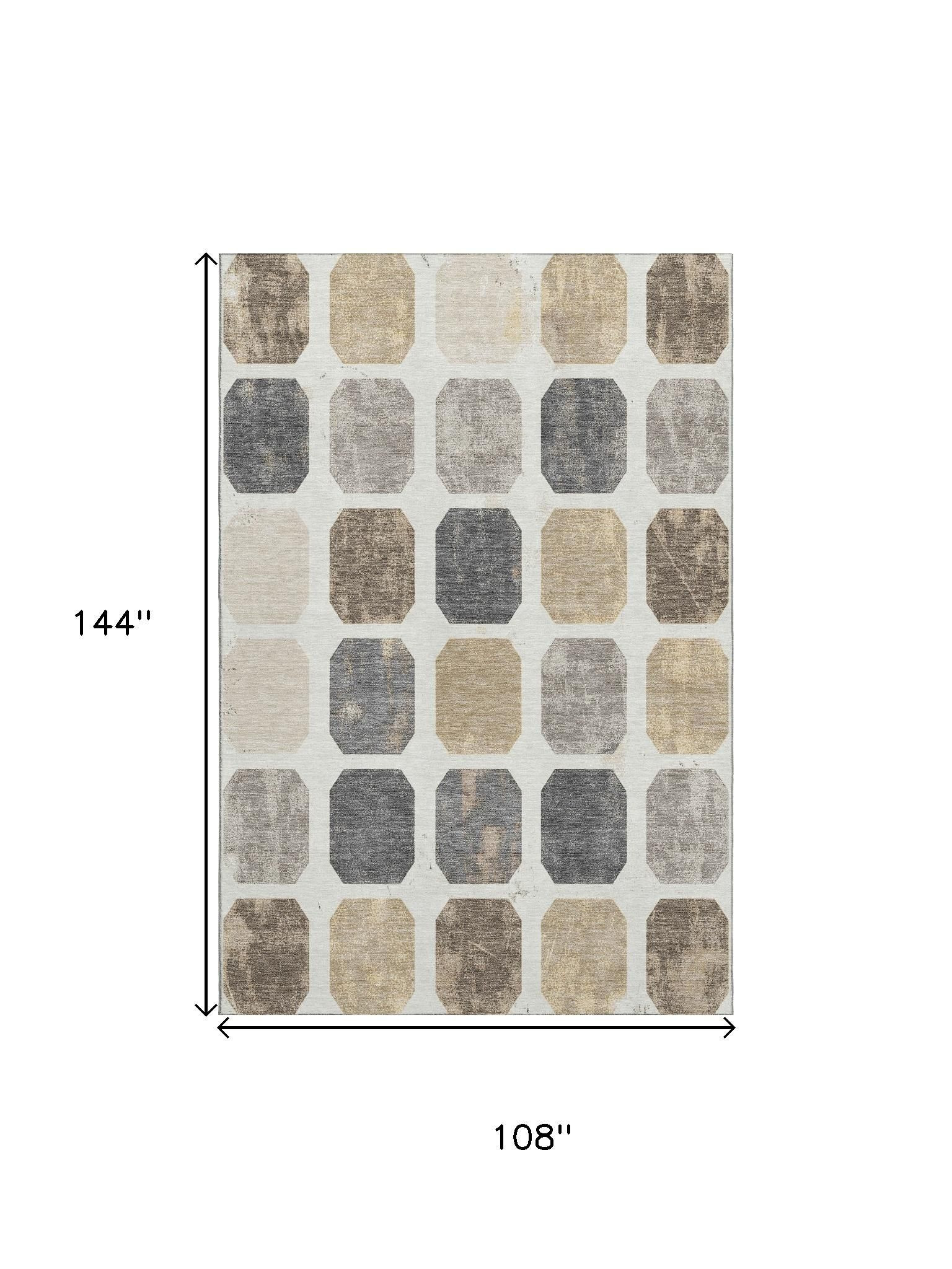 This 9-foot x 12-foot ivory beige and gray geometric washable area rug with uv protection, is a great way to add warmth to a room. Ideal for spaces with kids and pets, this rug is stain resistant to help repel dirt and spilled liquids. Built to last, this rug crafted from polyester fibers is known for its durability and long lasting appeal. Rugs are a great way to showcase your style, hide imperfections, warm your home and reduce noise. This larger sized, transitional styled rug is ready to create a focal point or statement piece in your room. 108.00-inch h x 144.00-inch w x 0.39-inch d.