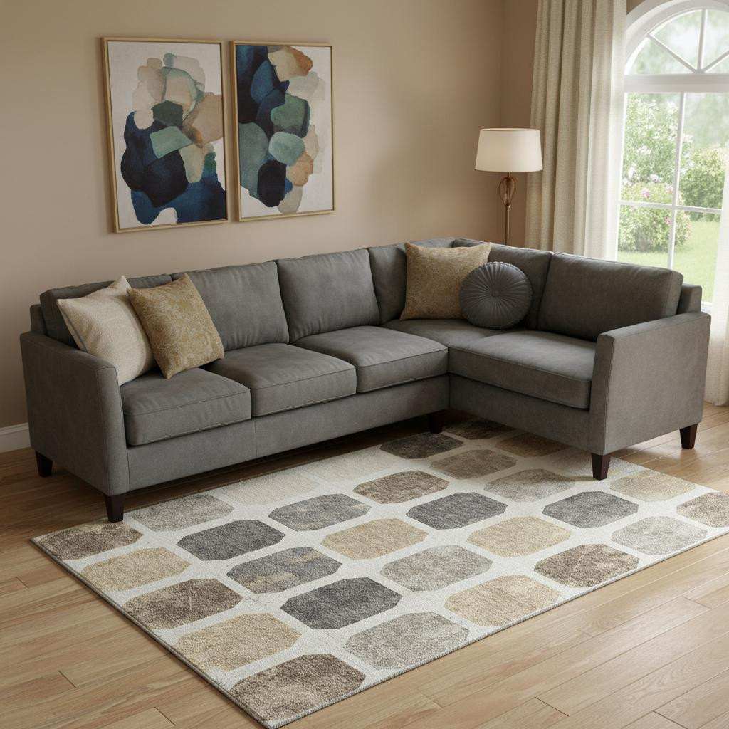 Set an inviting tone in your space with this 10-foot x 14-foot ivory beige and gray geometric washable area rug with uv protection. Ideal for spaces with kids and pets, this rug is stain resistant to help repel dirt and spilled liquids. Built to last, this rug crafted from polyester fibers is known for its durability and long lasting appeal. Rugs are a great way to showcase your style, hide imperfections, warm your home and reduce noise. This larger sized, transitional styled rug is ready to create a focal point or statement piece in your room. 120.00-inch h x 168.00-inch w x 0.39-inch d.