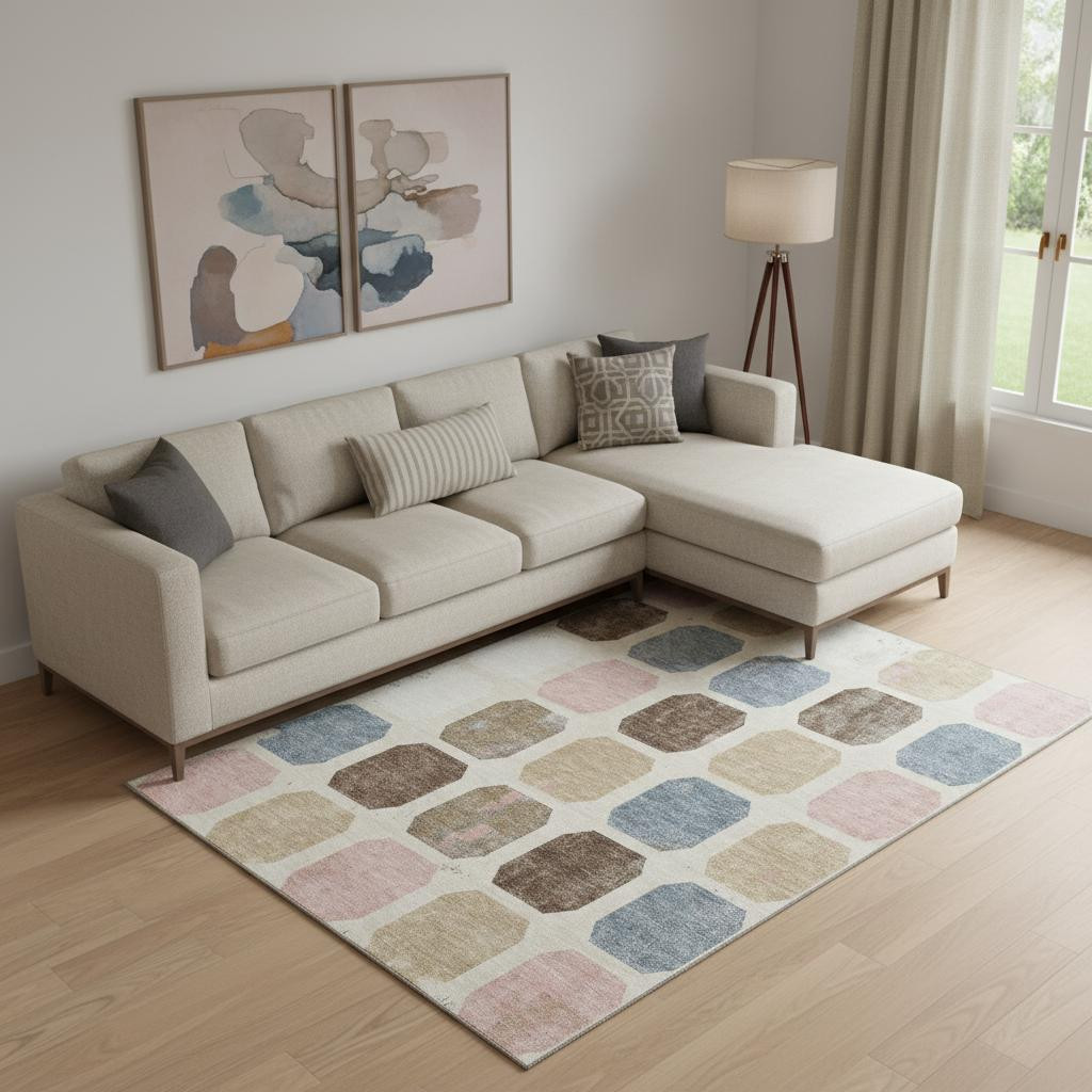 Add great coloration and comfortable texture to your space with this 10-foot x 14-foot linen ivory and brown geometric washable area rug with uv protection. Ideal for spaces with kids and pets, this rug is stain resistant to help repel dirt and spilled liquids. Built to last, this rug crafted from polyester fibers is known for its durability and long lasting appeal. Rugs are a great way to showcase your style, hide imperfections, warm your home and reduce noise. This larger sized, transitional styled rug is ready to create a focal point or statement piece in your room. 120.00-inch h x 168.00-inch w x 0.39-inch d.