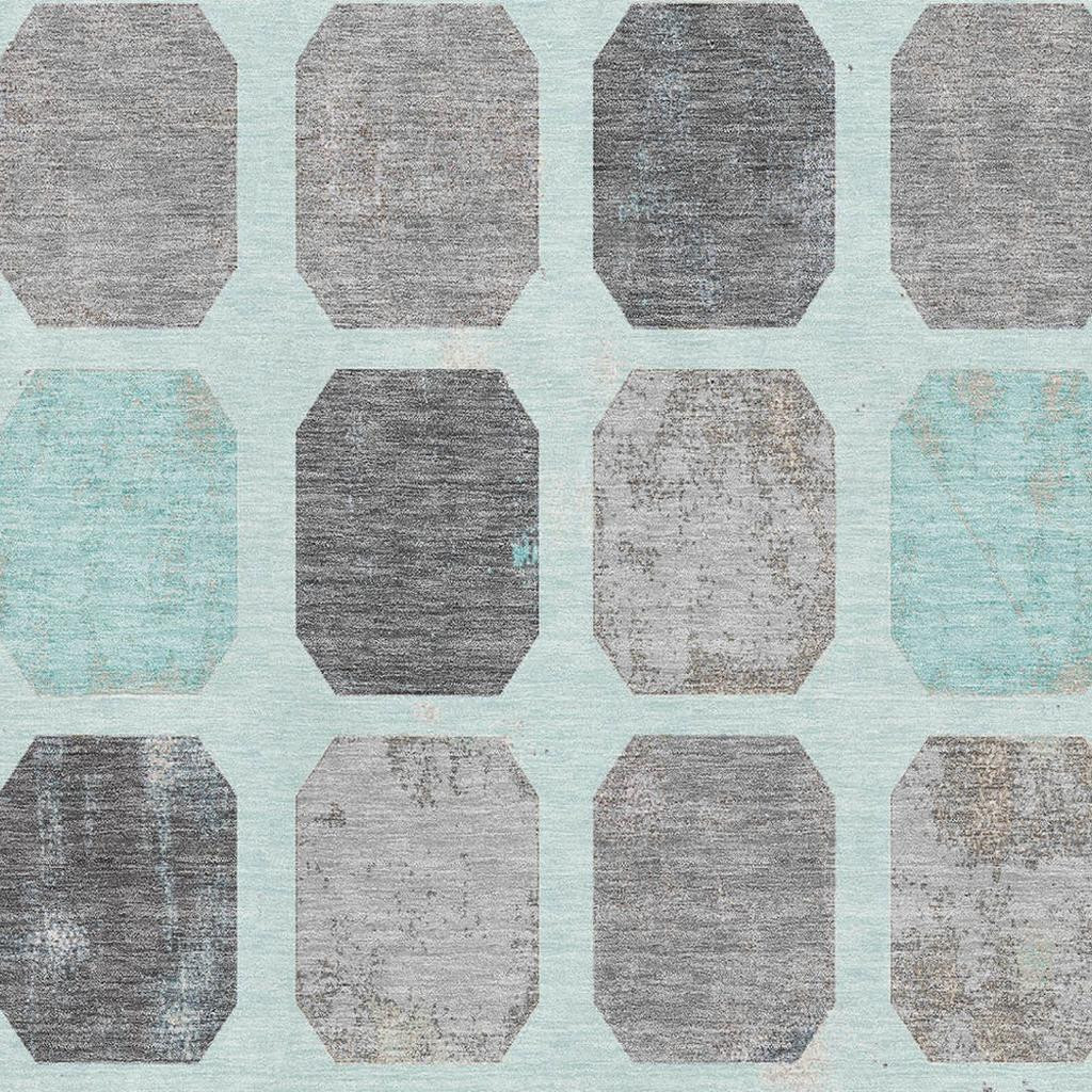 Add some artistry to your room with this 8-foot x 10-foot teal gray and ivory geometric washable area rug with uv protection. Ideal for spaces with kids and pets, this rug is stain resistant to help repel dirt and spilled liquids. Built to last, this rug crafted from polyester fibers is known for its durability and long lasting appeal. Rugs are a great way to showcase your style, hide imperfections, warm your home and reduce noise. This larger sized, transitional styled rug is ready to create a focal point or statement piece in your room. 96.00-inch h x 120.00-inch w x 0.39-inch d.