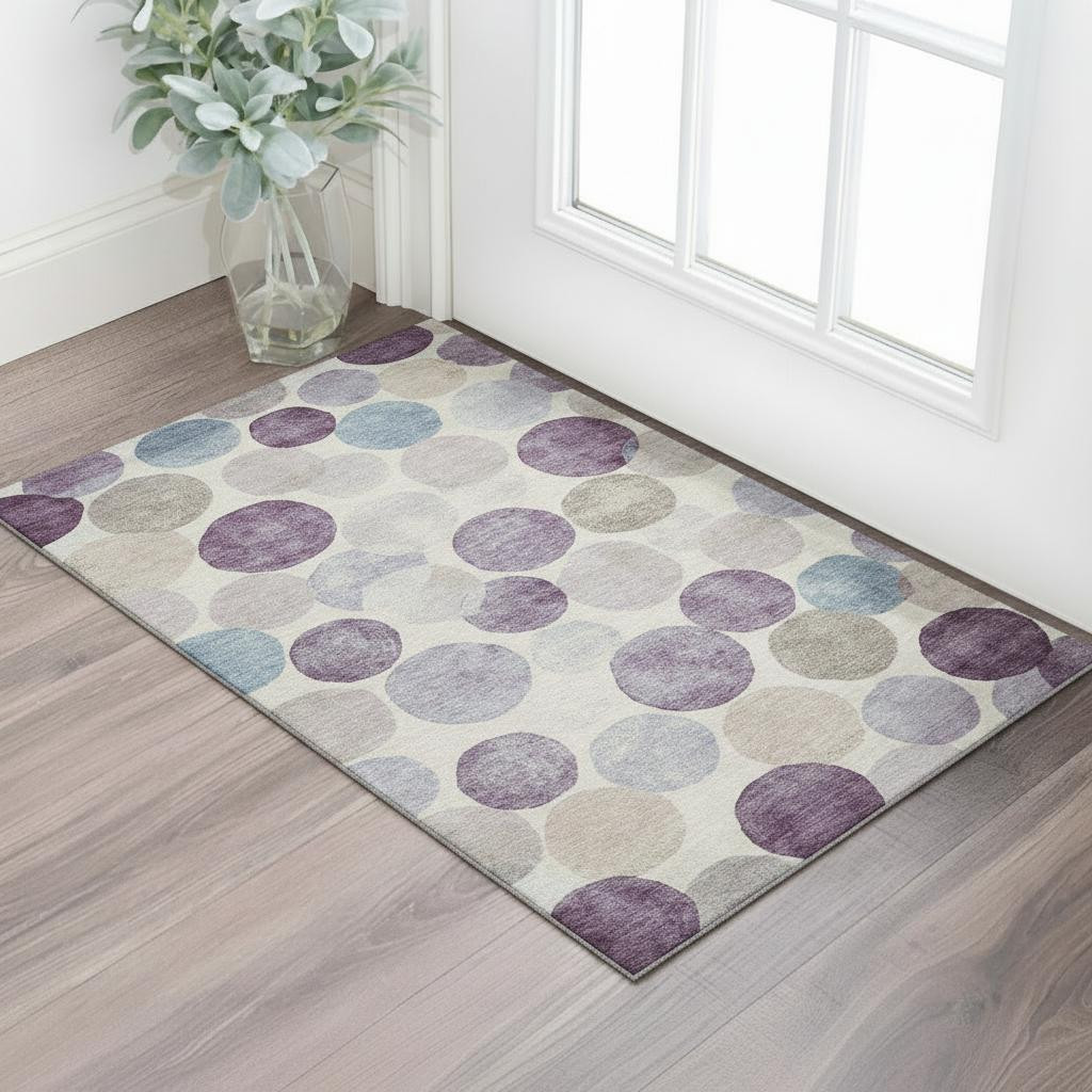 Set an inviting tone in your space with this 3-foot x 5-foot plum beige and blue geometric washable area rug with uv protection. Ideal for spaces with kids and pets, this rug is stain resistant to help repel dirt and spilled liquids. Built to last, this rug crafted from polyester fibers is known for its durability and long lasting appeal. Rugs are a great way to showcase your style, hide imperfections, warm your home and reduce noise. This smaller sized, transitional styled rug is just what you need for your walkway, bedside, in front of door, cabinet, refrigerator, or chair. 36.00-inch h x 60.00-inch w x 0.39-inch d.