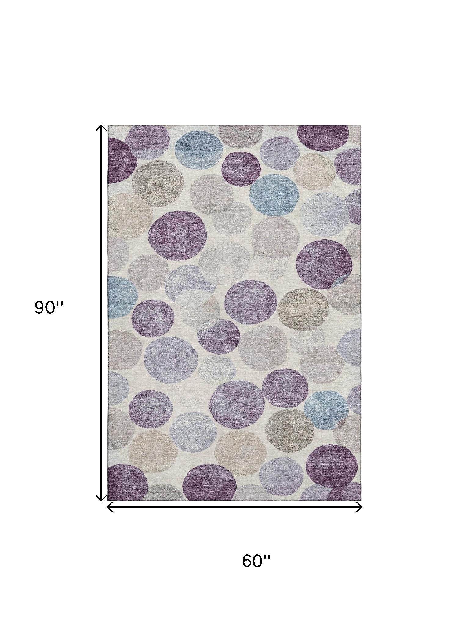 Add some artistry to your room with this 5-foot x 8-foot plum beige and blue geometric washable area rug with uv protection. Ideal for spaces with kids and pets, this rug is stain resistant to help repel dirt and spilled liquids. Built to last, this rug crafted from polyester fibers is known for its durability and long lasting appeal. Rugs are a great way to showcase your style, hide imperfections, warm your home and reduce noise. This larger sized, transitional styled rug is ready to create a focal point or statement piece in your room. 60.00-inch h x 90.00-inch w x 0.39-inch d.