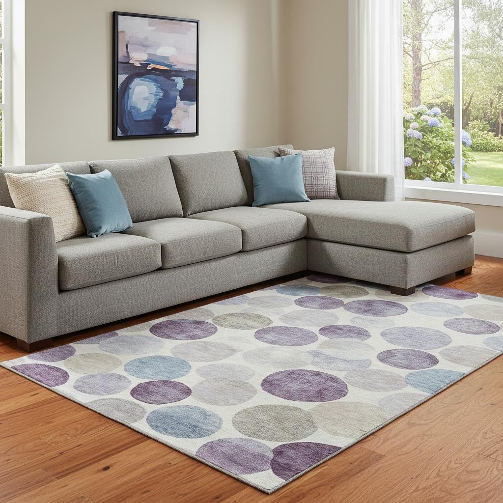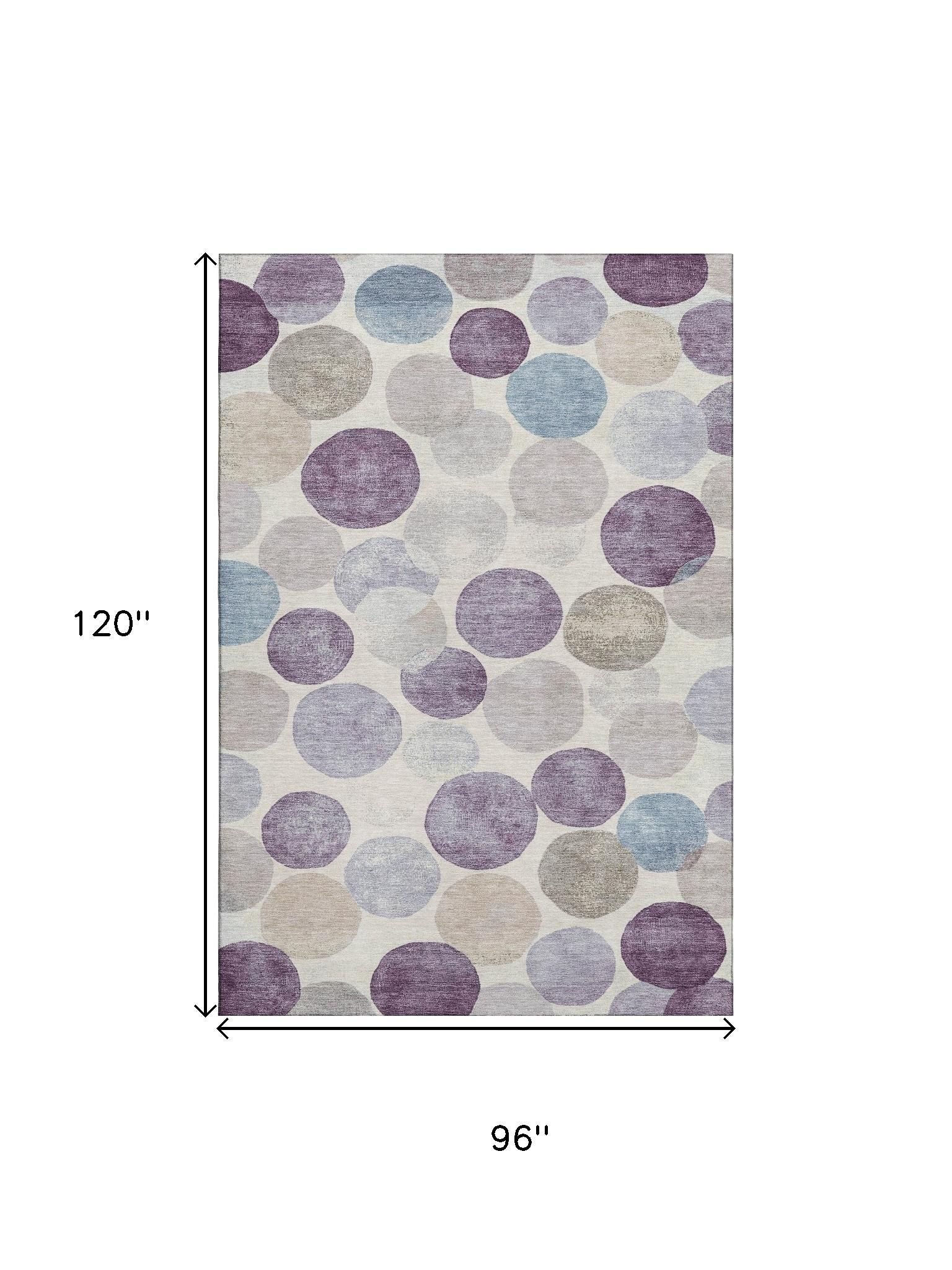 Add some artistry to your room with this 8-foot x 10-foot plum beige and blue geometric washable area rug with uv protection. Ideal for spaces with kids and pets, this rug is stain resistant to help repel dirt and spilled liquids. Built to last, this rug crafted from polyester fibers is known for its durability and long lasting appeal. Rugs are a great way to showcase your style, hide imperfections, warm your home and reduce noise. This larger sized, transitional styled rug is ready to create a focal point or statement piece in your room. 96.00-inch h x 120.00-inch w x 0.39-inch d.