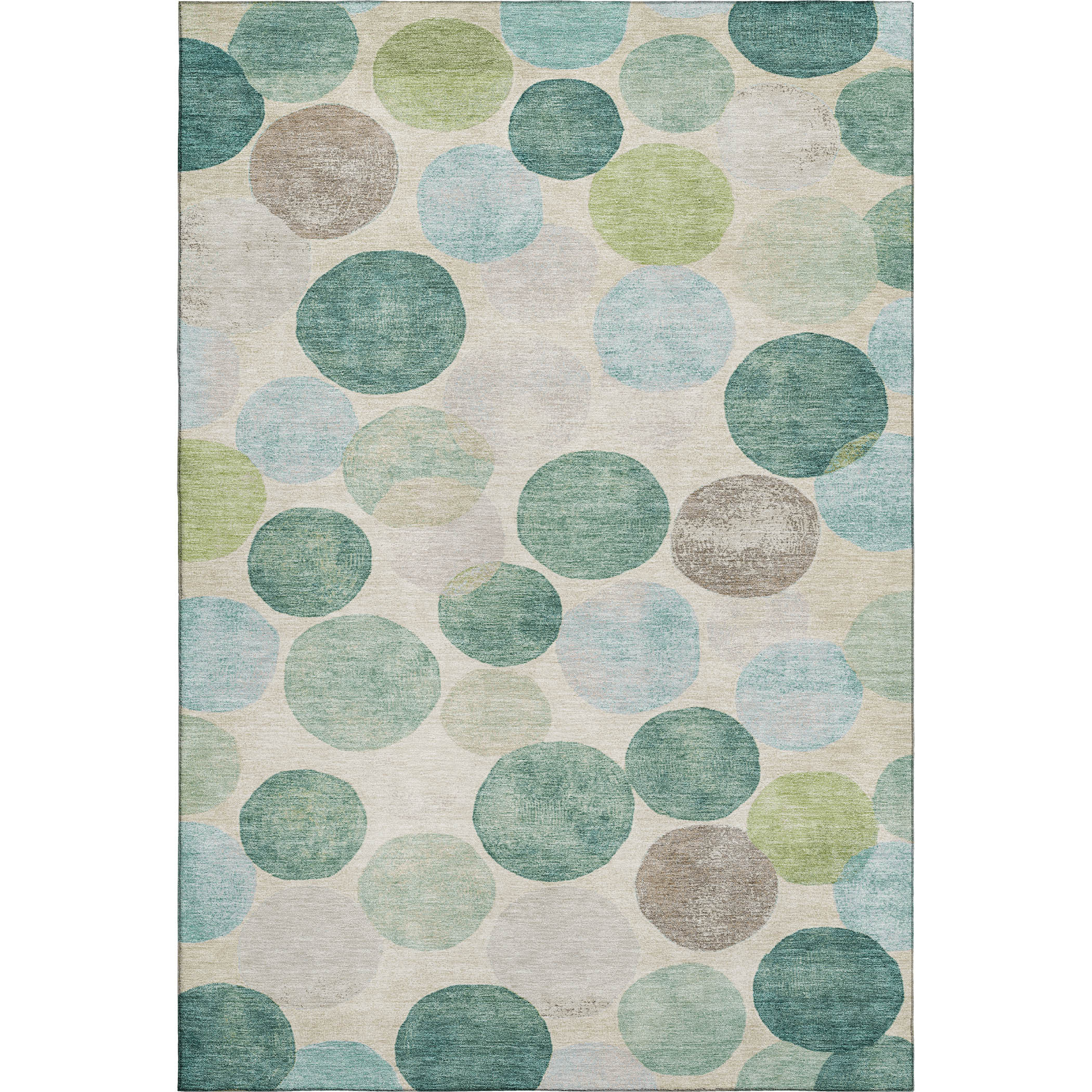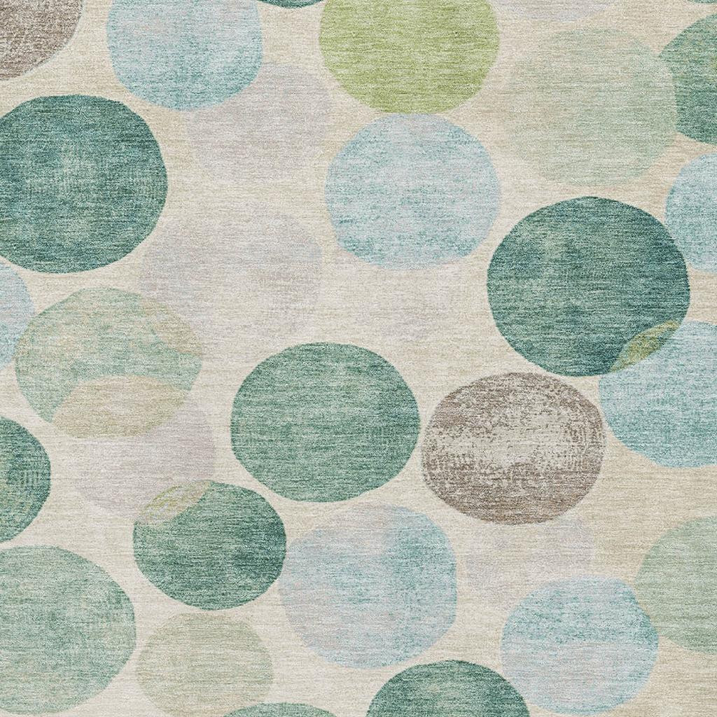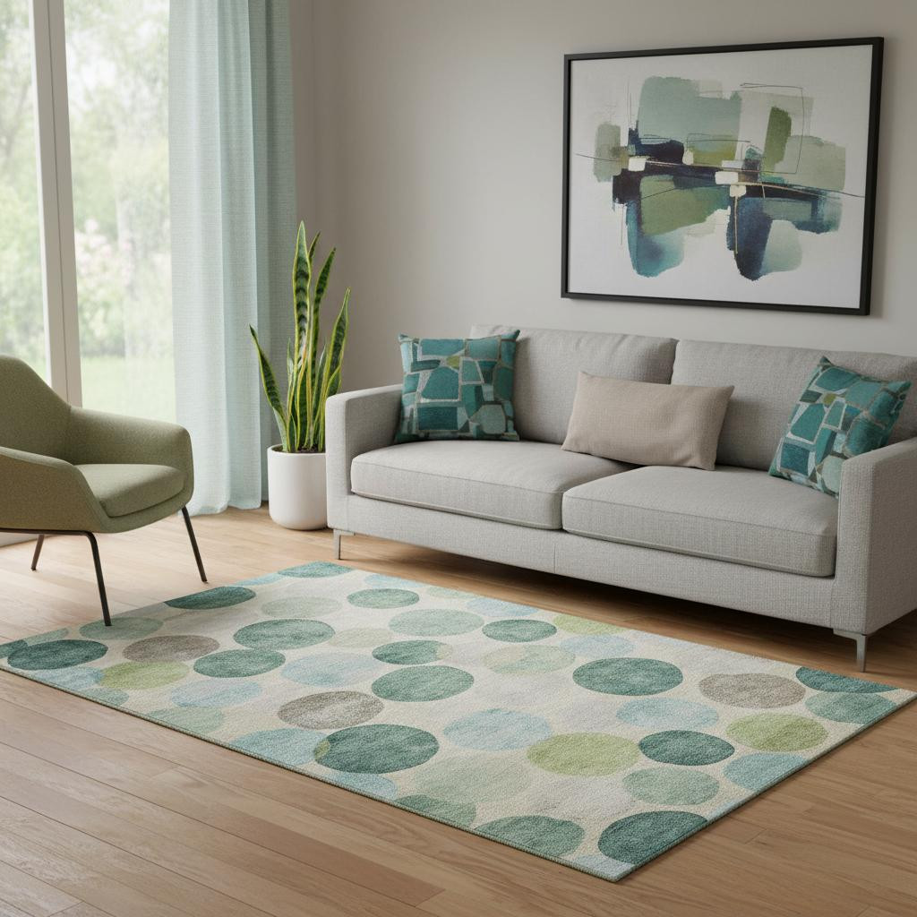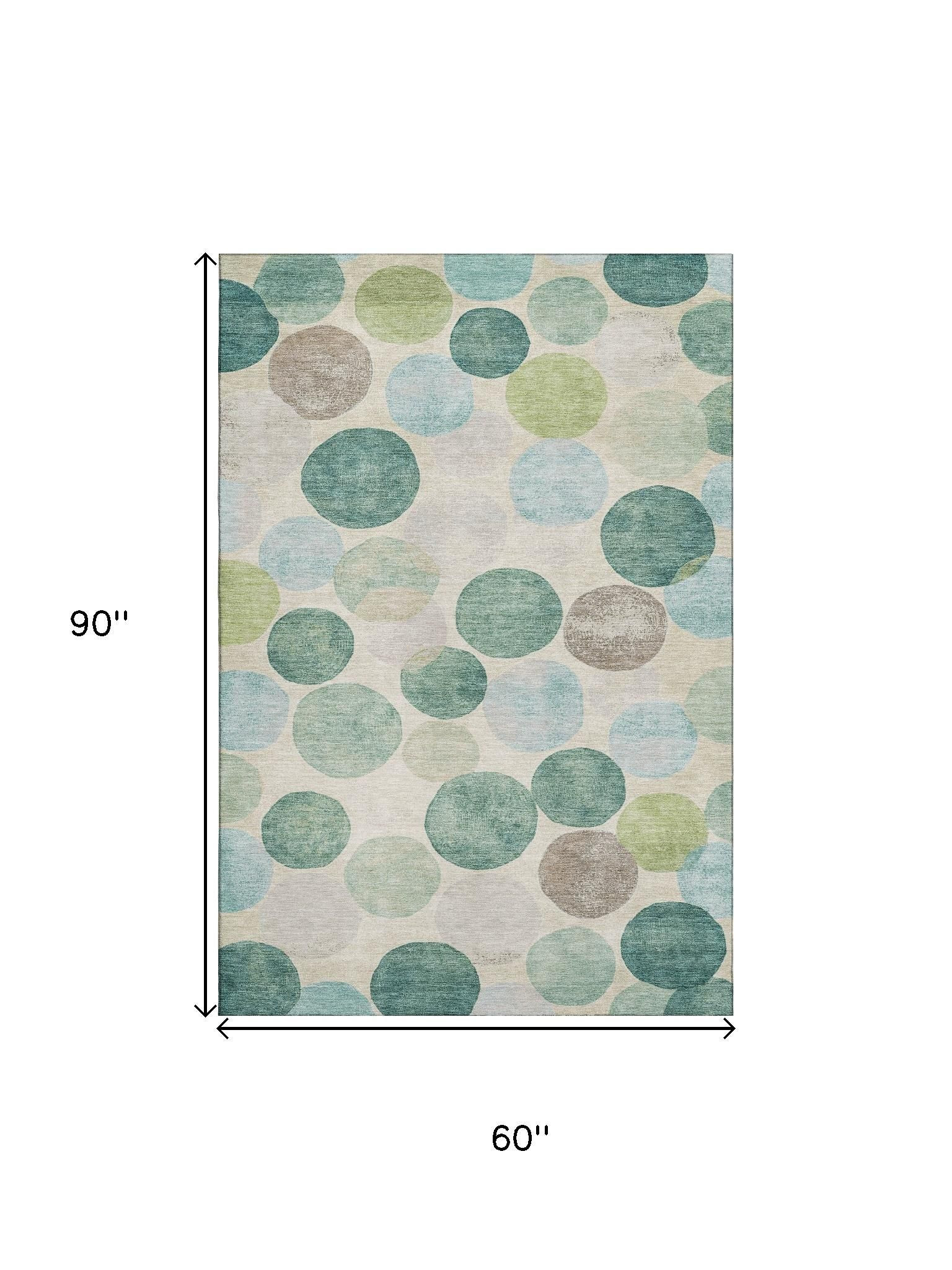 Add great coloration and comfortable texture to your space with this 5-foot x 8-foot teal green and ivory geometric washable area rug with uv protection. Ideal for spaces with kids and pets, this rug is stain resistant to help repel dirt and spilled liquids. Built to last, this rug crafted from polyester fibers is known for its durability and long lasting appeal. Rugs are a great way to showcase your style, hide imperfections, warm your home and reduce noise. This larger sized, transitional styled rug is ready to create a focal point or statement piece in your room. 60.00-inch h x 90.00-inch w x 0.39-inch d.