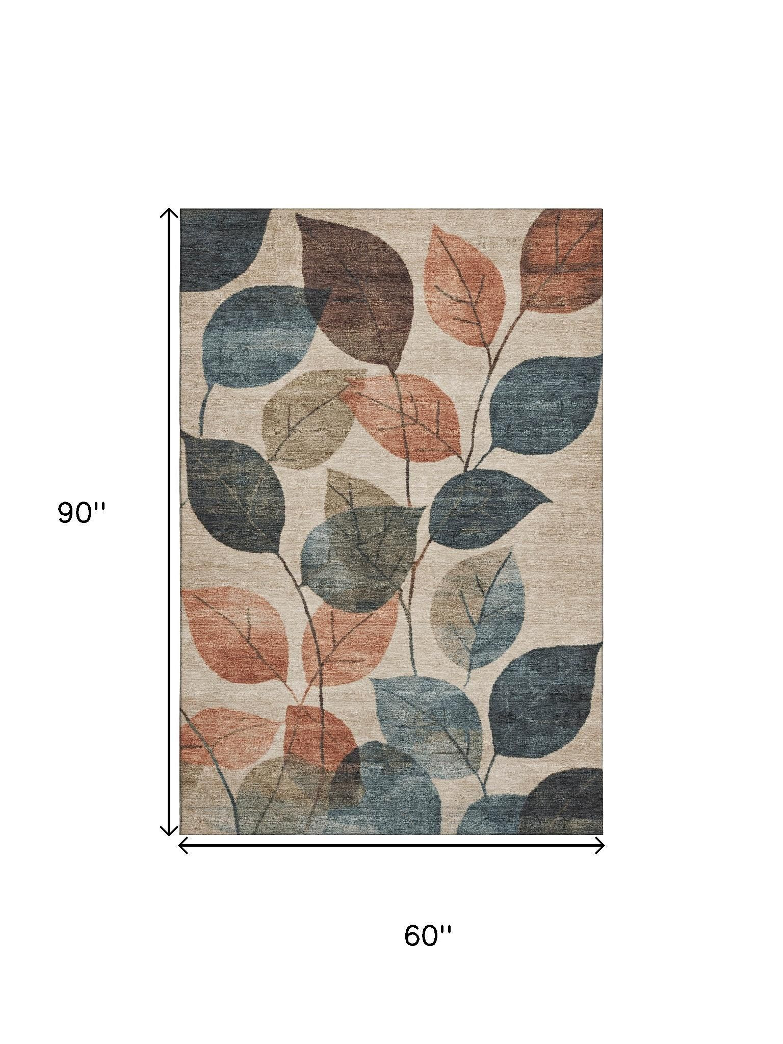 This 5-foot x 8-foot beige copper and denim blue floral washable area rug with uv protection, is a great way to add warmth to a room. Ideal for spaces with kids and pets, this rug is stain resistant to help repel dirt and spilled liquids. Built to last, this rug crafted from polyester fibers is known for its durability and long lasting appeal. Rugs are a great way to showcase your style, hide imperfections, warm your home and reduce noise. This larger sized, transitional styled rug is ready to create a focal point or statement piece in your room. 60.00-inch h x 90.00-inch w x 0.39-inch d.