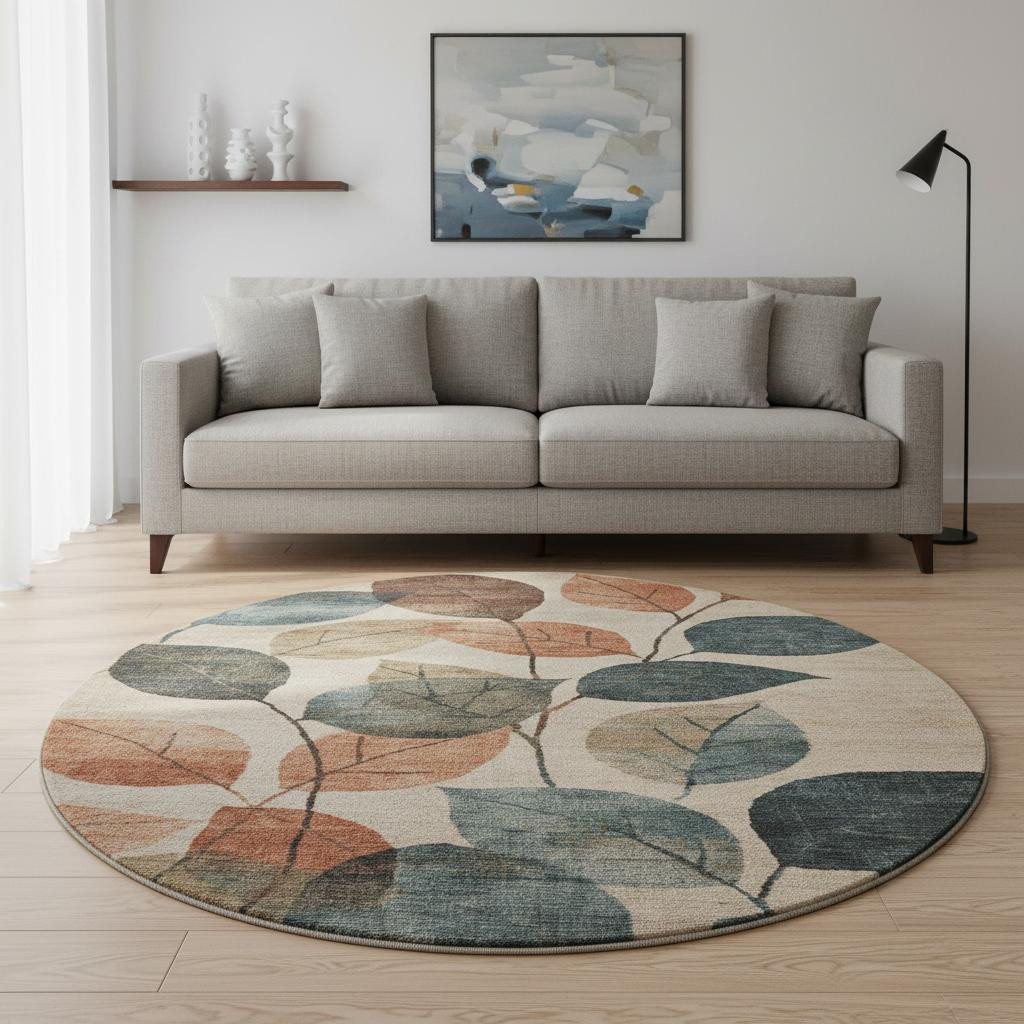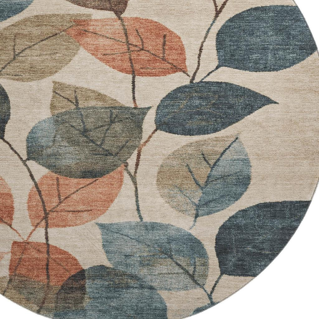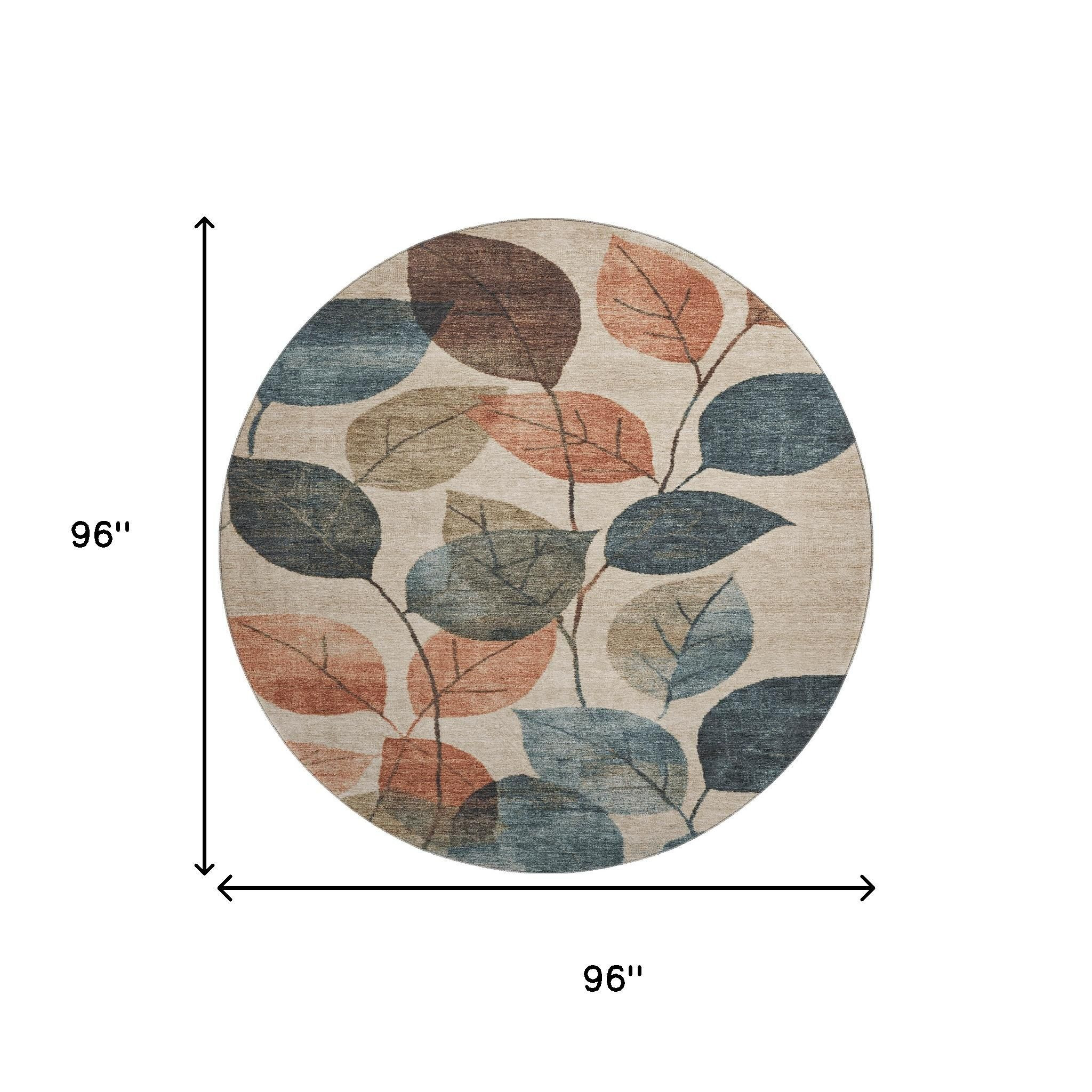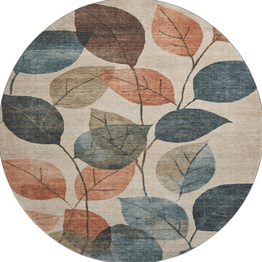 Add great coloration and comfortable texture to your space with this 8-foot beige copper and denim blue floral washable round rug with uv protection. Ideal for spaces with kids and pets, this rug is stain resistant to help repel dirt and spilled liquids. Built to last, this rug crafted from polyester fibers is known for its durability and long lasting appeal. Rugs are a great way to showcase your style, hide imperfections, warm your home and reduce noise. This larger sized, transitional styled rug is ready to create a focal point or statement piece in your room. 96.00-inch h x 96.00-inch w x 0.39-inch d.