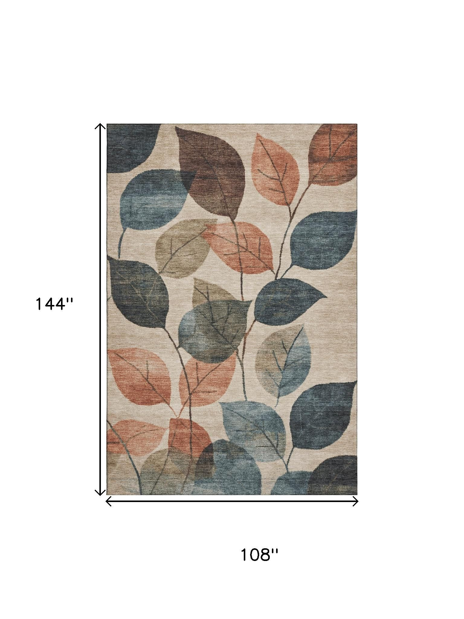 Add some artistry to your room with this 9-foot x 12-foot beige copper and denim blue floral washable area rug with uv protection. Ideal for spaces with kids and pets, this rug is stain resistant to help repel dirt and spilled liquids. Built to last, this rug crafted from polyester fibers is known for its durability and long lasting appeal. Rugs are a great way to showcase your style, hide imperfections, warm your home and reduce noise. This larger sized, transitional styled rug is ready to create a focal point or statement piece in your room. 108.00-inch h x 144.00-inch w x 0.39-inch d.