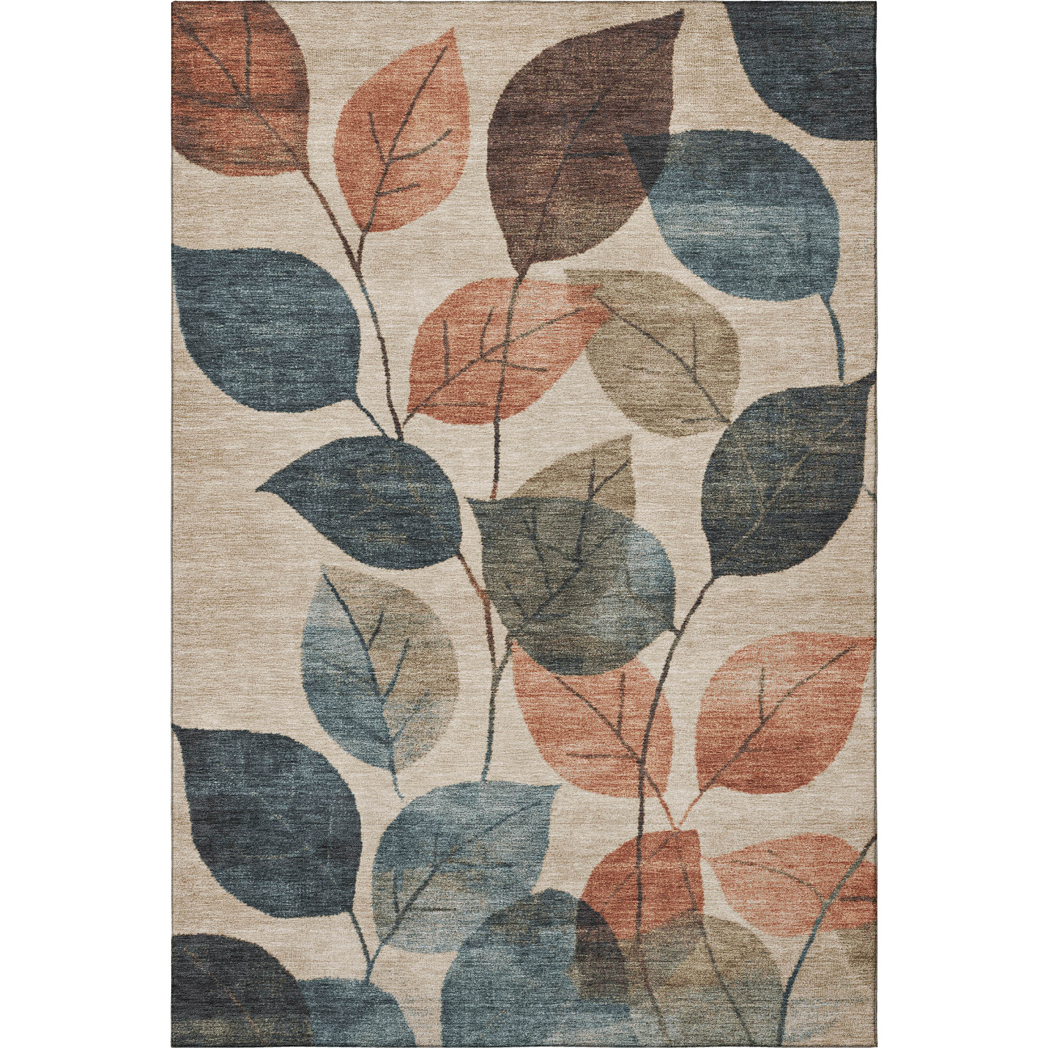 Add great coloration and comfortable texture to your space with this 10-foot x 14-foot beige copper and denim blue floral washable area rug with uv protection. Ideal for spaces with kids and pets, this rug is stain resistant to help repel dirt and spilled liquids. Built to last, this rug crafted from polyester fibers is known for its durability and long lasting appeal. Rugs are a great way to showcase your style, hide imperfections, warm your home and reduce noise. This larger sized, transitional styled rug is ready to create a focal point or statement piece in your room. 120.00-inch h x 168.00-inch w x 0.39-inch d.