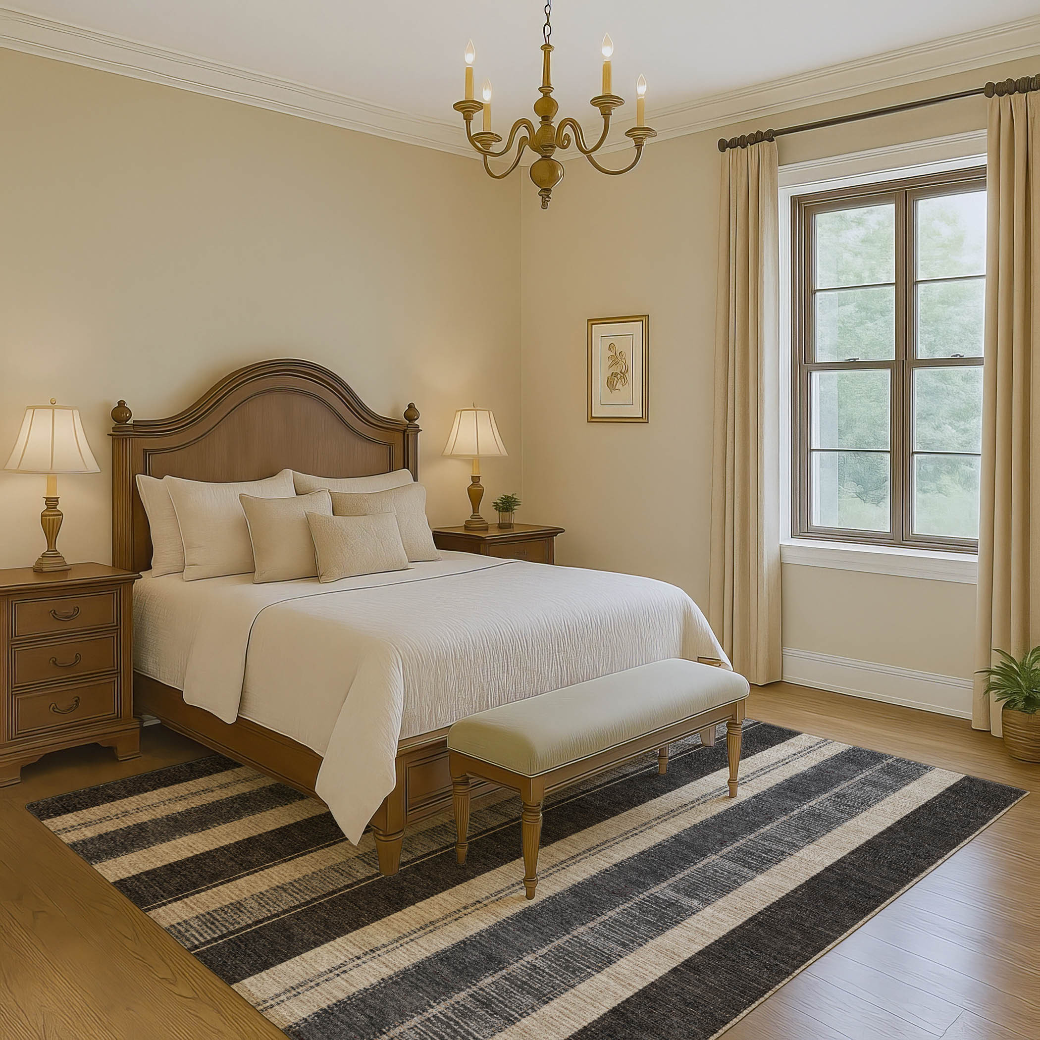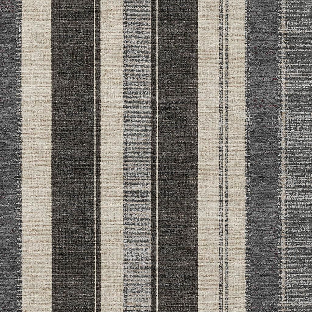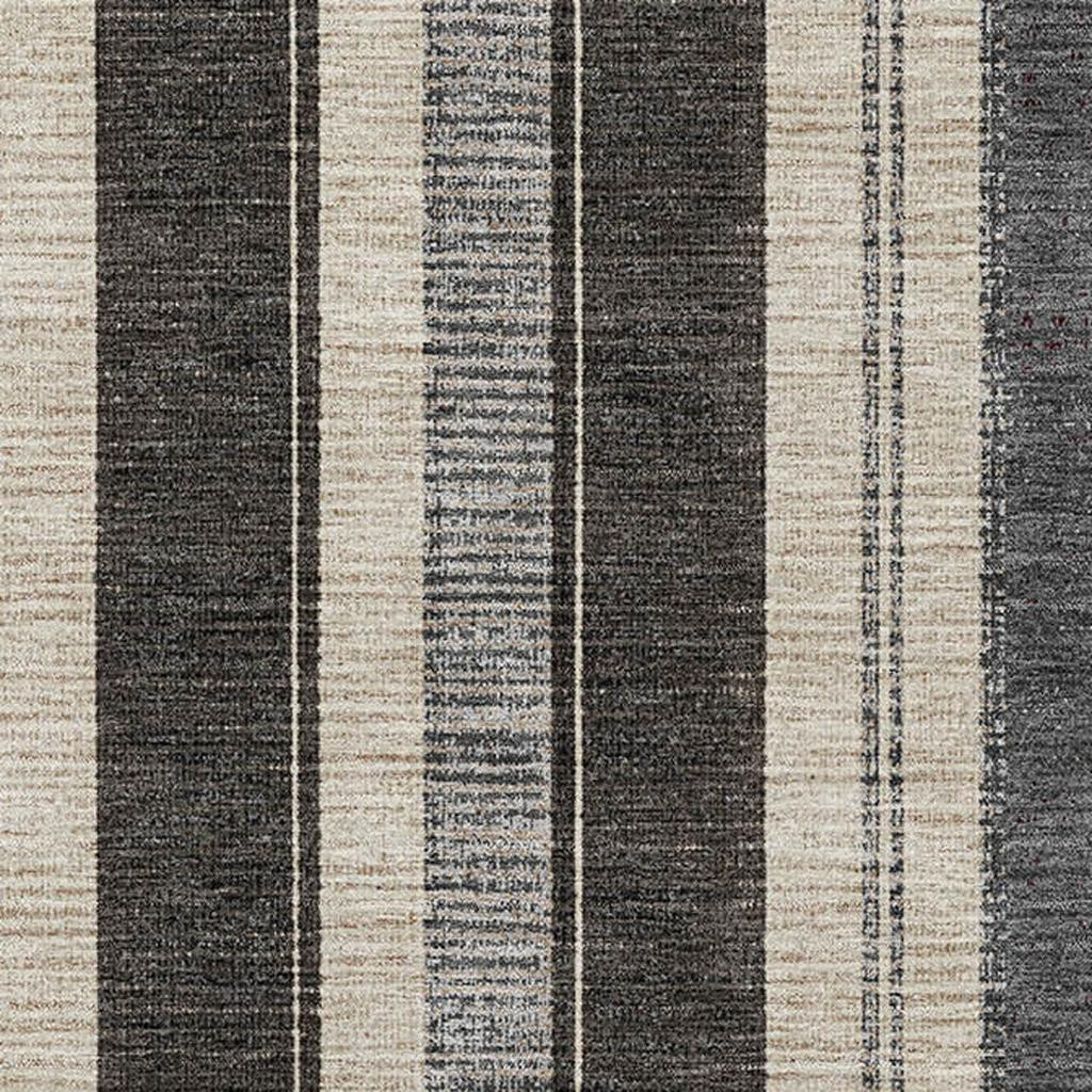 This 8-foot x 10-foot black ivory and gray striped washable area rug with uv protection, is a great way to add warmth to a room. Ideal for spaces with kids and pets, this rug is stain resistant to help repel dirt and spilled liquids. Built to last, this rug crafted from polyester fibers is known for its durability and long lasting appeal. Rugs are a great way to showcase your style, hide imperfections, warm your home and reduce noise. This larger sized, transitional styled rug is ready to create a focal point or statement piece in your room. 96.00-inch h x 120.00-inch w x 0.39-inch d.