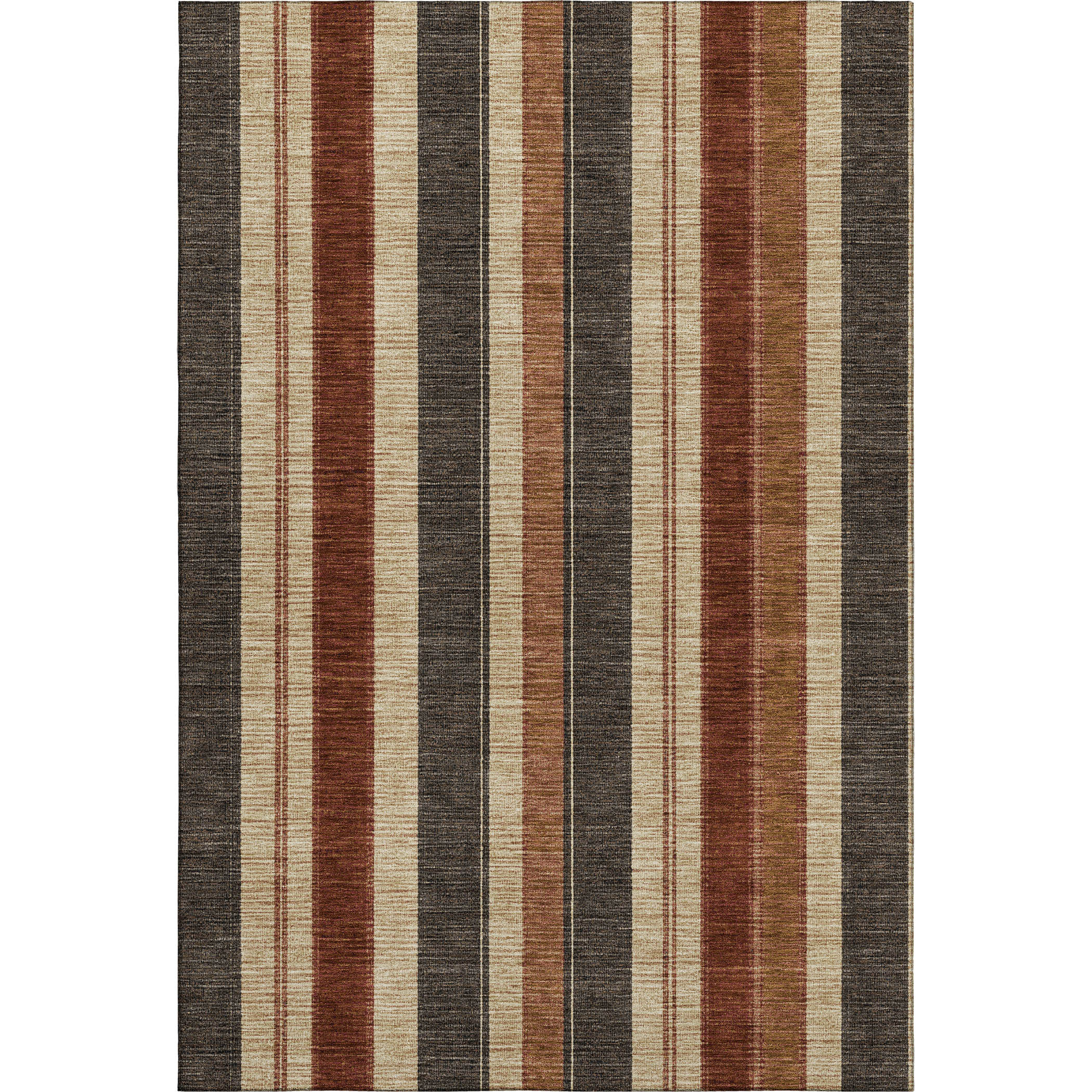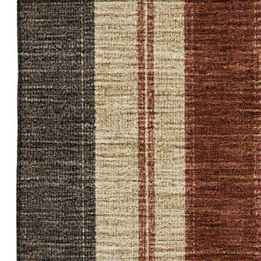 Add some artistry to your room with this 8-foot x 10-foot chocolate rust and beige striped washable area rug with uv protection. Ideal for spaces with kids and pets, this rug is stain resistant to help repel dirt and spilled liquids. Built to last, this rug crafted from polyester fibers is known for its durability and long lasting appeal. Rugs are a great way to showcase your style, hide imperfections, warm your home and reduce noise. This larger sized, transitional styled rug is ready to create a focal point or statement piece in your room. 96.00-inch h x 120.00-inch w x 0.39-inch d.