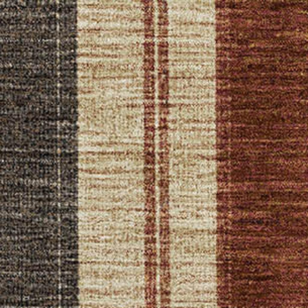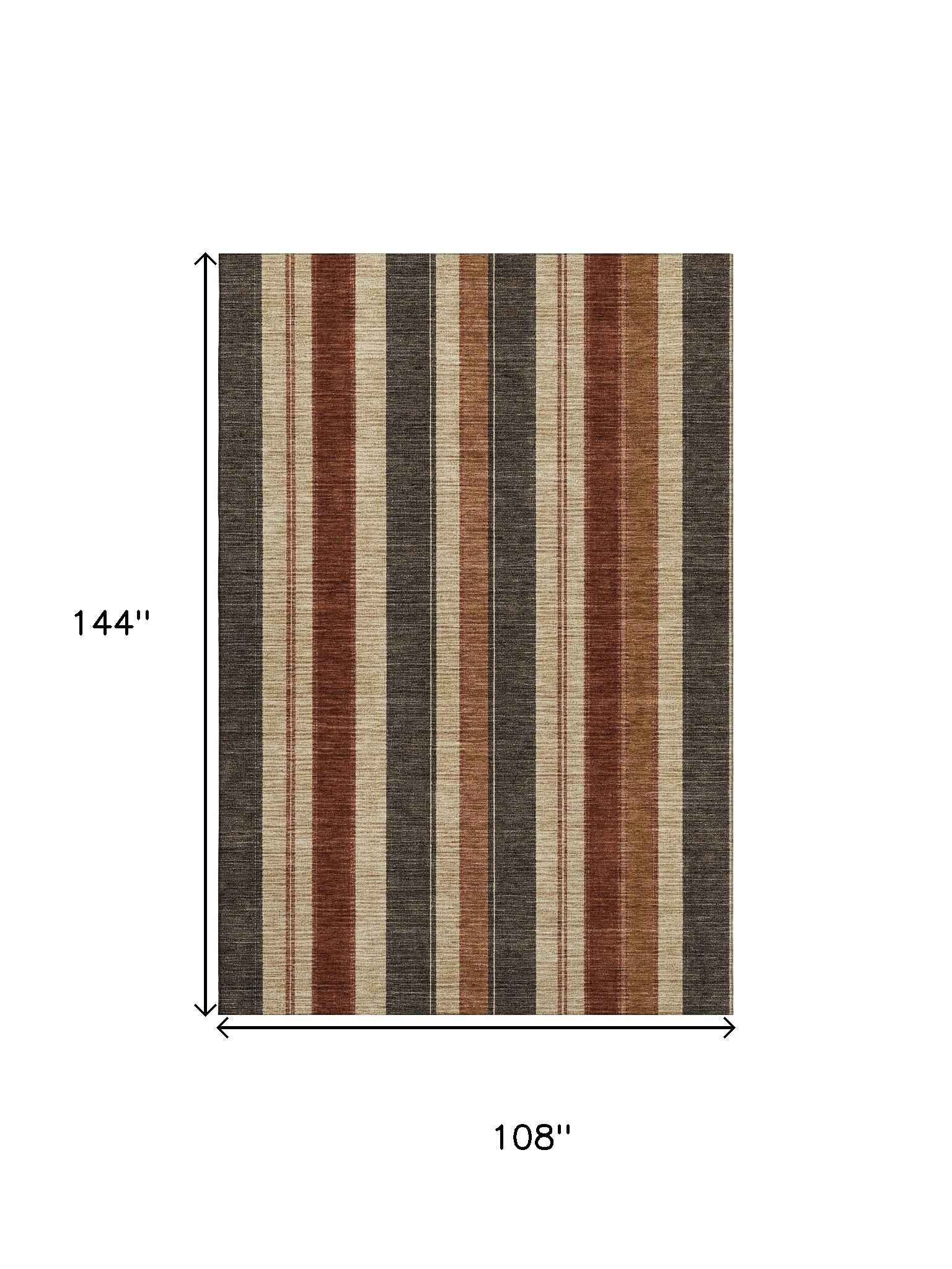 This 9-foot x 12-foot chocolate rust and beige striped washable area rug with uv protection, is a great way to add warmth to a room. Ideal for spaces with kids and pets, this rug is stain resistant to help repel dirt and spilled liquids. Built to last, this rug crafted from polyester fibers is known for its durability and long lasting appeal. Rugs are a great way to showcase your style, hide imperfections, warm your home and reduce noise. This larger sized, transitional styled rug is ready to create a focal point or statement piece in your room. 108.00-inch h x 144.00-inch w x 0.39-inch d.