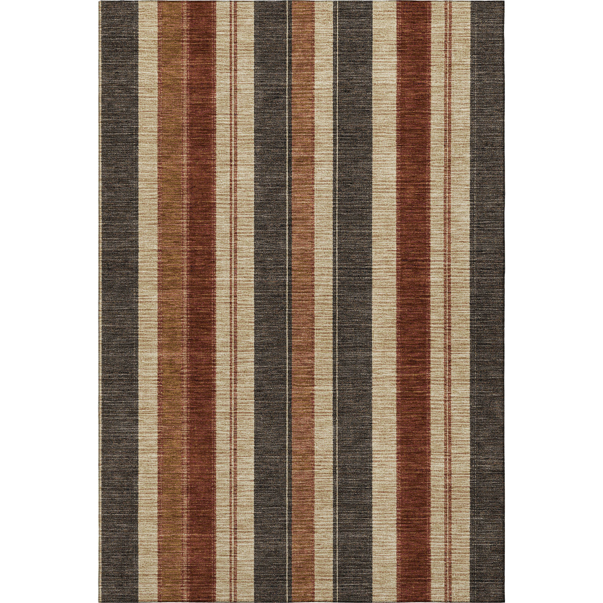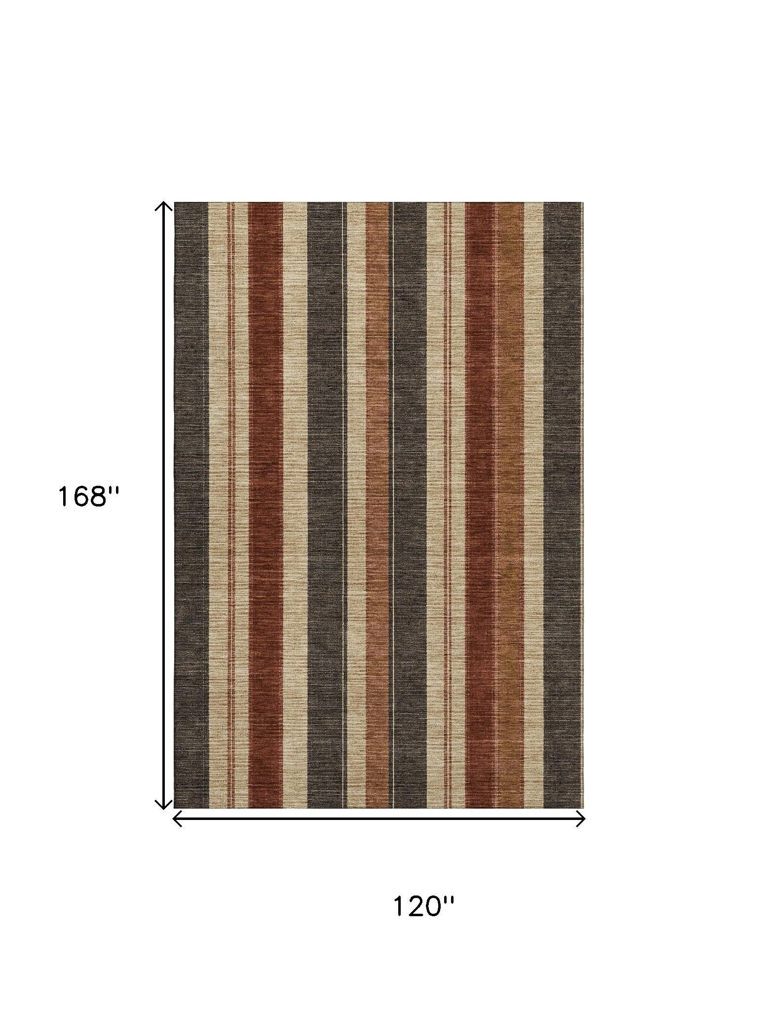 Add great coloration and comfortable texture to your space with this 10-foot x 14-foot chocolate rust and beige striped washable area rug with uv protection. Ideal for spaces with kids and pets, this rug is stain resistant to help repel dirt and spilled liquids. Built to last, this rug crafted from polyester fibers is known for its durability and long lasting appeal. Rugs are a great way to showcase your style, hide imperfections, warm your home and reduce noise. This larger sized, transitional styled rug is ready to create a focal point or statement piece in your room. 120.00-inch h x 168.00-inch w x 0.39-inch d.