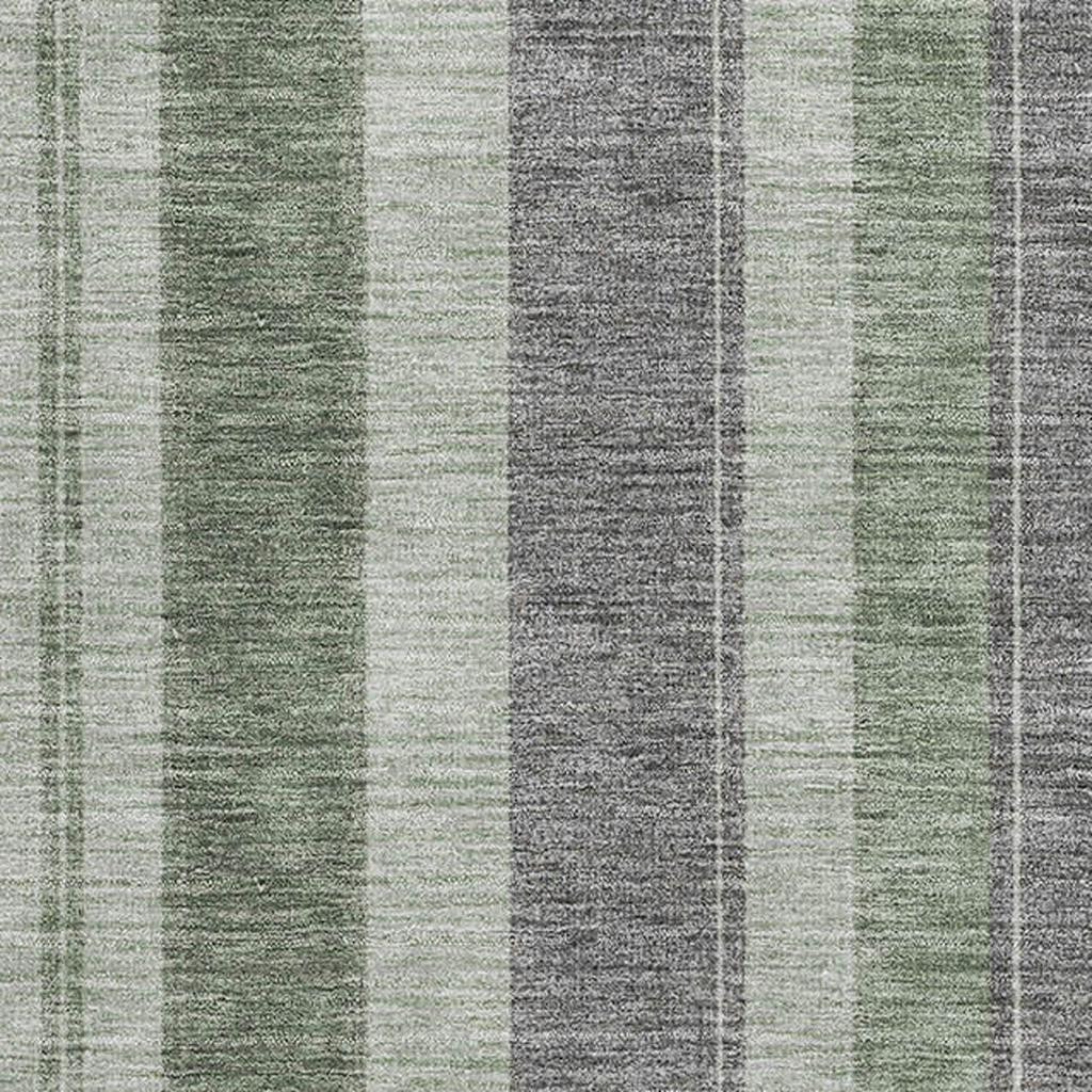Add some artistry to your room with this 5-foot x 8-foot green and gray striped washable area rug with uv protection. Ideal for spaces with kids and pets, this rug is stain resistant to help repel dirt and spilled liquids. Built to last, this rug crafted from polyester fibers is known for its durability and long lasting appeal. Rugs are a great way to showcase your style, hide imperfections, warm your home and reduce noise. This larger sized, transitional styled rug is ready to create a focal point or statement piece in your room. 60.00-inch h x 90.00-inch w x 0.39-inch d.