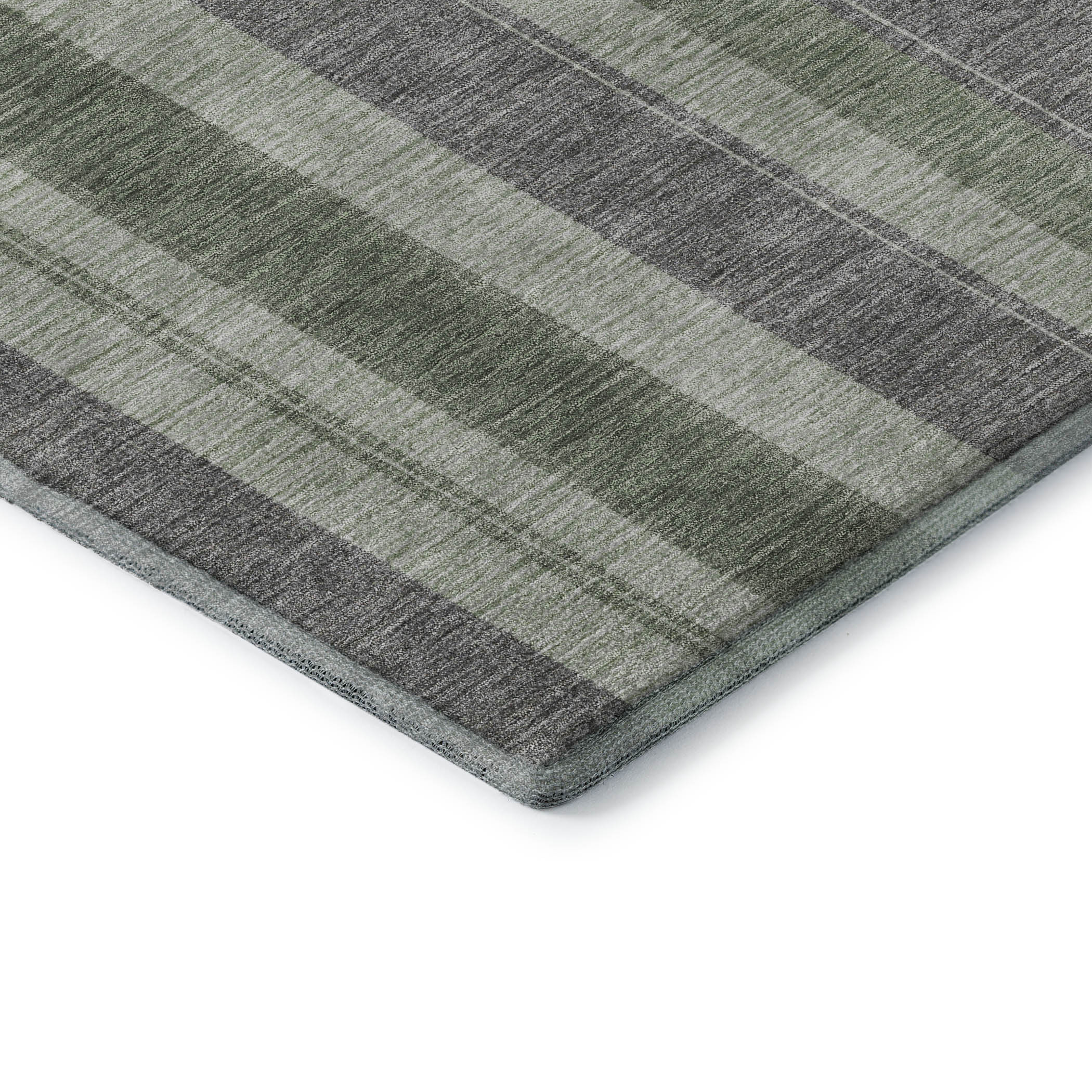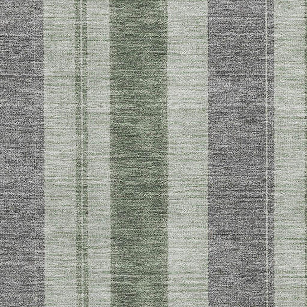 Set an inviting tone in your space with this 9-foot x 12-foot green and gray striped washable area rug with uv protection. Ideal for spaces with kids and pets, this rug is stain resistant to help repel dirt and spilled liquids. Built to last, this rug crafted from polyester fibers is known for its durability and long lasting appeal. Rugs are a great way to showcase your style, hide imperfections, warm your home and reduce noise. This larger sized, transitional styled rug is ready to create a focal point or statement piece in your room. 108.00-inch h x 144.00-inch w x 0.39-inch d.