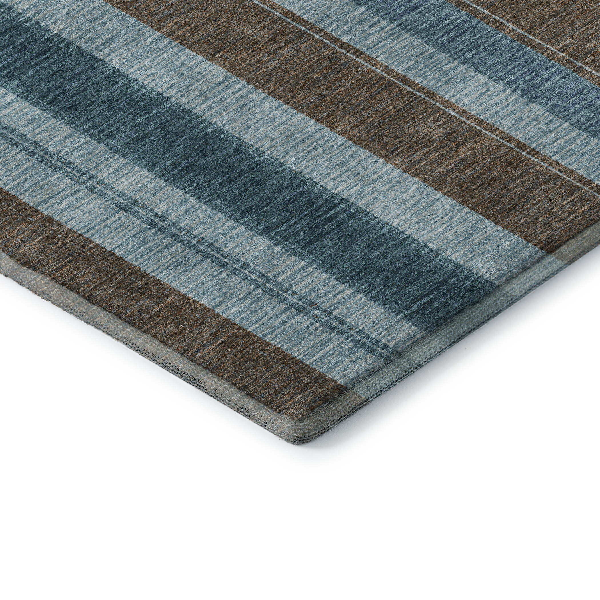 Add great coloration and comfortable texture to your space with this 3-foot x 5-foot teal and brown striped washable area rug with uv protection. Ideal for spaces with kids and pets, this rug is stain resistant to help repel dirt and spilled liquids. Built to last, this rug crafted from polyester fibers is known for its durability and long lasting appeal. Rugs are a great way to showcase your style, hide imperfections, warm your home and reduce noise. This smaller sized, transitional styled rug is just what you need for your walkway, bedside, in front of door, cabinet, refrigerator, or chair. 36.00-inch h x 60.00-inch w x 0.39-inch d.