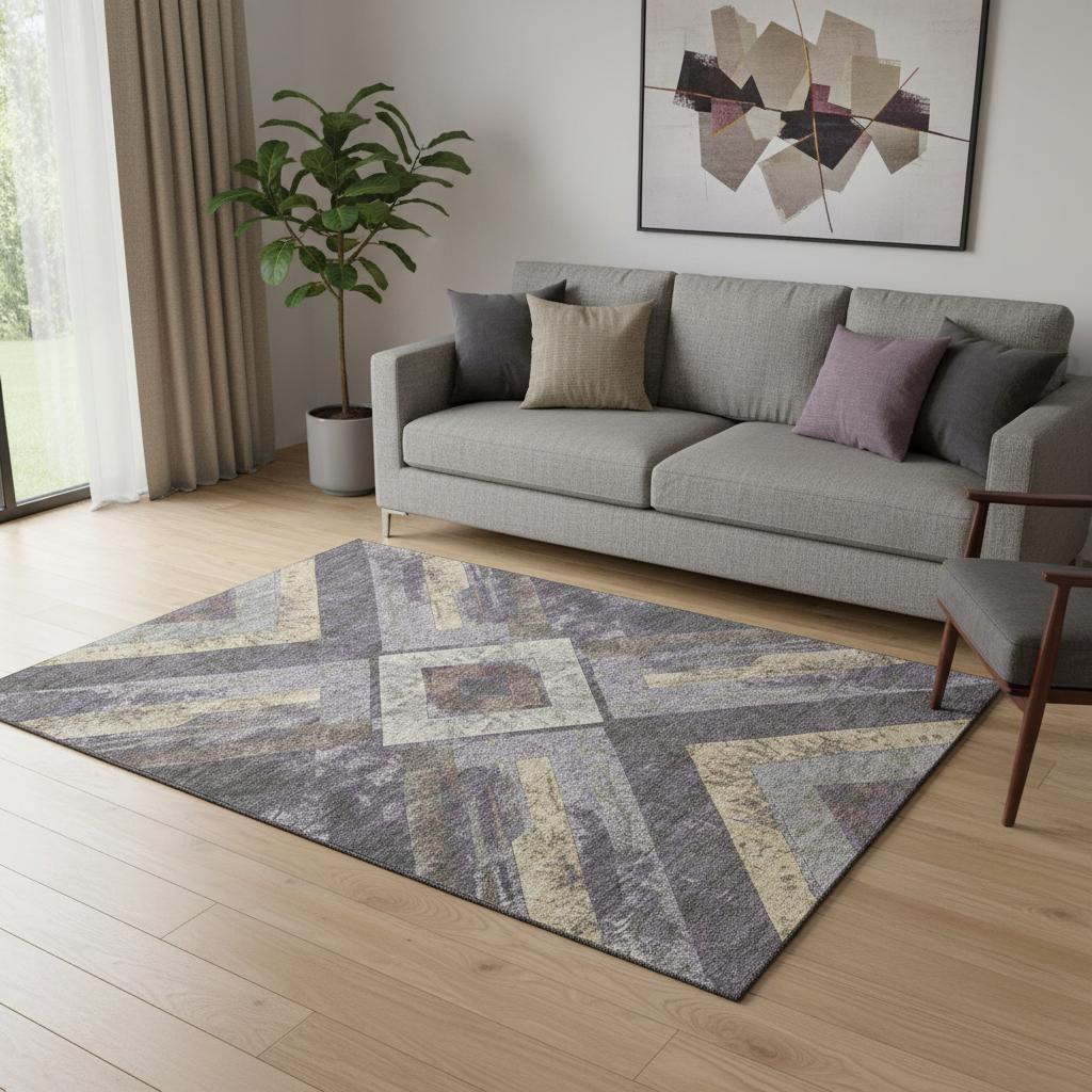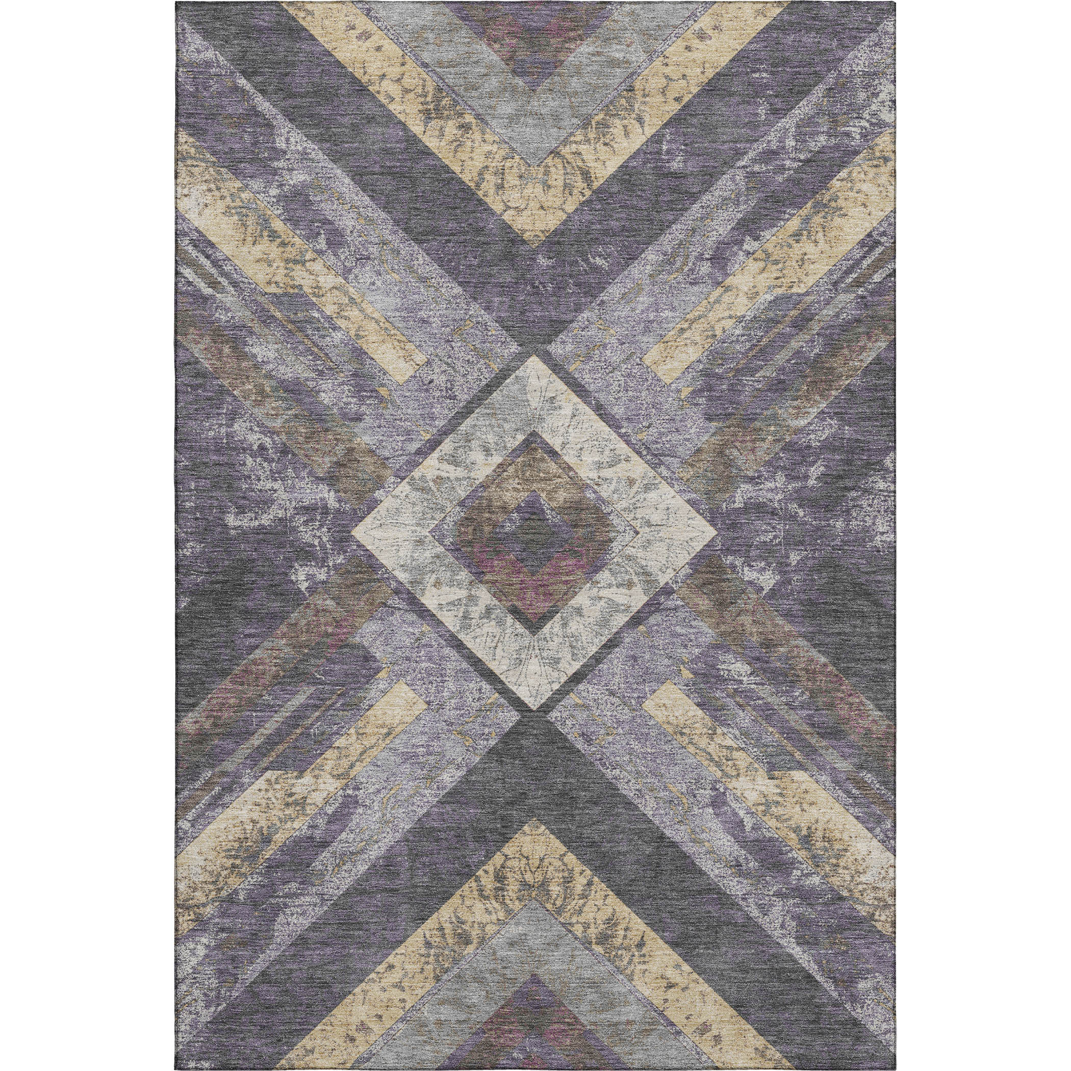 Add some artistry to your room with this 5-foot x 8-foot purple gold and ivory geometric washable area rug with uv protection. Ideal for spaces with kids and pets, this rug is stain resistant to help repel dirt and spilled liquids. Built to last, this rug crafted from polyester fibers is known for its durability and long lasting appeal. Rugs are a great way to showcase your style, hide imperfections, warm your home and reduce noise. This larger sized, transitional styled rug is ready to create a focal point or statement piece in your room. 60.00-inch h x 90.00-inch w x 0.39-inch d.