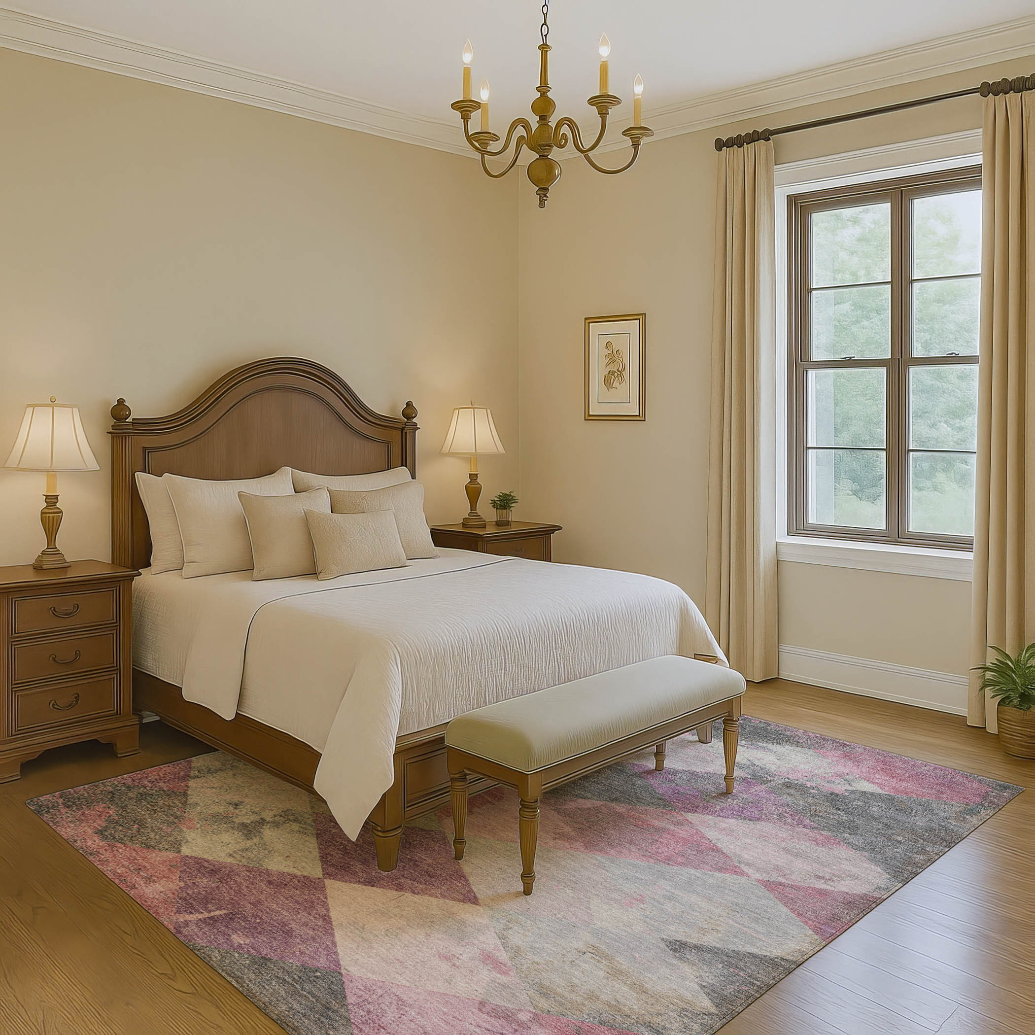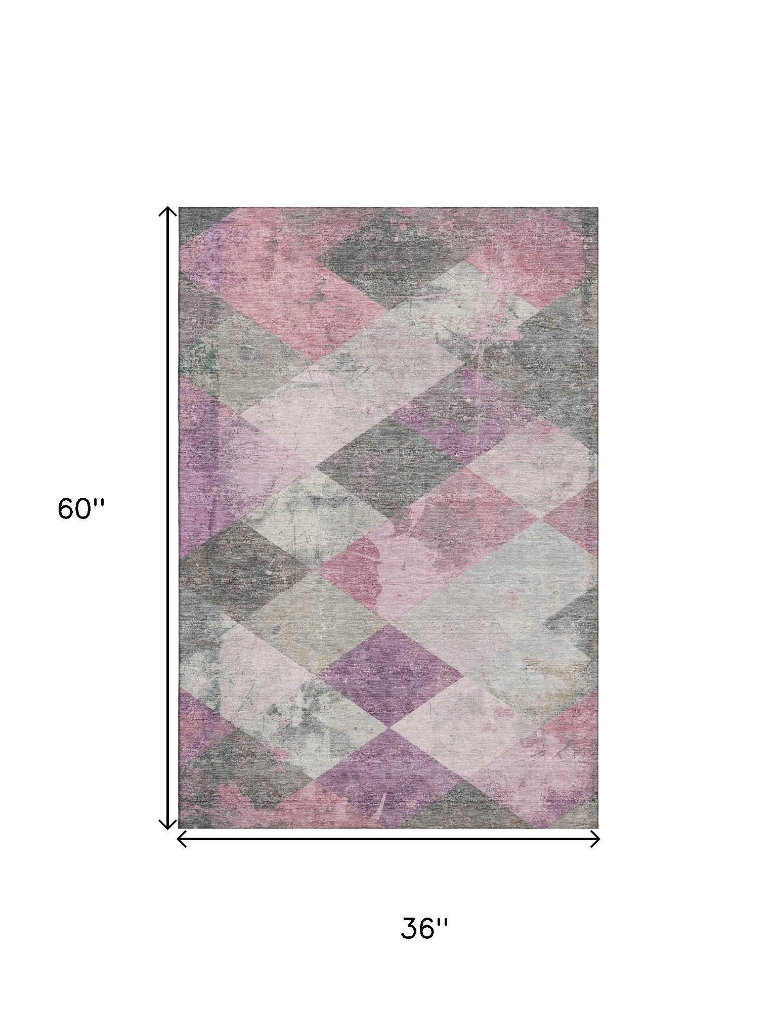 This 3-foot x 5-foot blush gray and silver geometric washable area rug with uv protection, is a great way to add warmth to a room. Ideal for spaces with kids and pets, this rug is stain resistant to help repel dirt and spilled liquids. Built to last, this rug crafted from polyester fibers is known for its durability and long lasting appeal. Rugs are a great way to showcase your style, hide imperfections, warm your home and reduce noise. This smaller sized, transitional styled rug is just what you need for your walkway, bedside, in front of door, cabinet, refrigerator, or chair. 36.00-inch h x 60.00-inch w x 0.39-inch d.