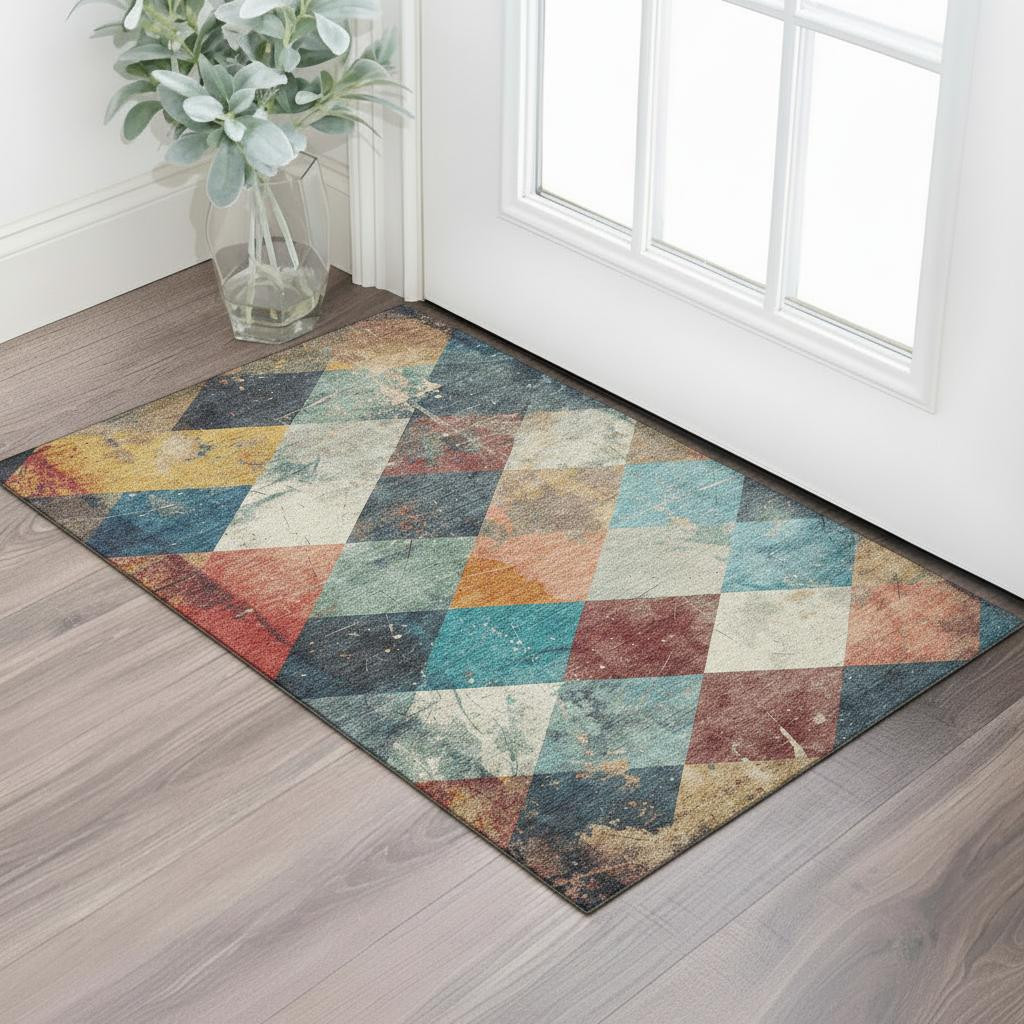 Add some artistry to your room with this 3-foot x 5-foot navy blue orange and red geometric washable area rug with uv protection. Ideal for spaces with kids and pets, this rug is stain resistant to help repel dirt and spilled liquids. Built to last, this rug crafted from polyester fibers is known for its durability and long lasting appeal. Rugs are a great way to showcase your style, hide imperfections, warm your home and reduce noise. This smaller sized, transitional styled rug is just what you need for your walkway, bedside, in front of door, cabinet, refrigerator, or chair. 36.00-inch h x 60.00-inch w x 0.39-inch d.