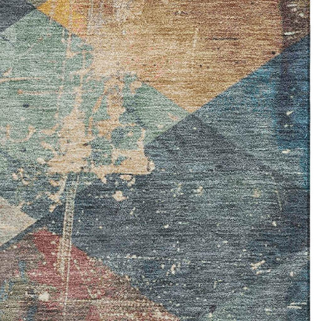 Add some artistry to your room with this 9-foot x 12-foot navy blue orange and red geometric washable area rug with uv protection. Ideal for spaces with kids and pets, this rug is stain resistant to help repel dirt and spilled liquids. Built to last, this rug crafted from polyester fibers is known for its durability and long lasting appeal. Rugs are a great way to showcase your style, hide imperfections, warm your home and reduce noise. This larger sized, transitional styled rug is ready to create a focal point or statement piece in your room. 108.00-inch h x 144.00-inch w x 0.39-inch d.