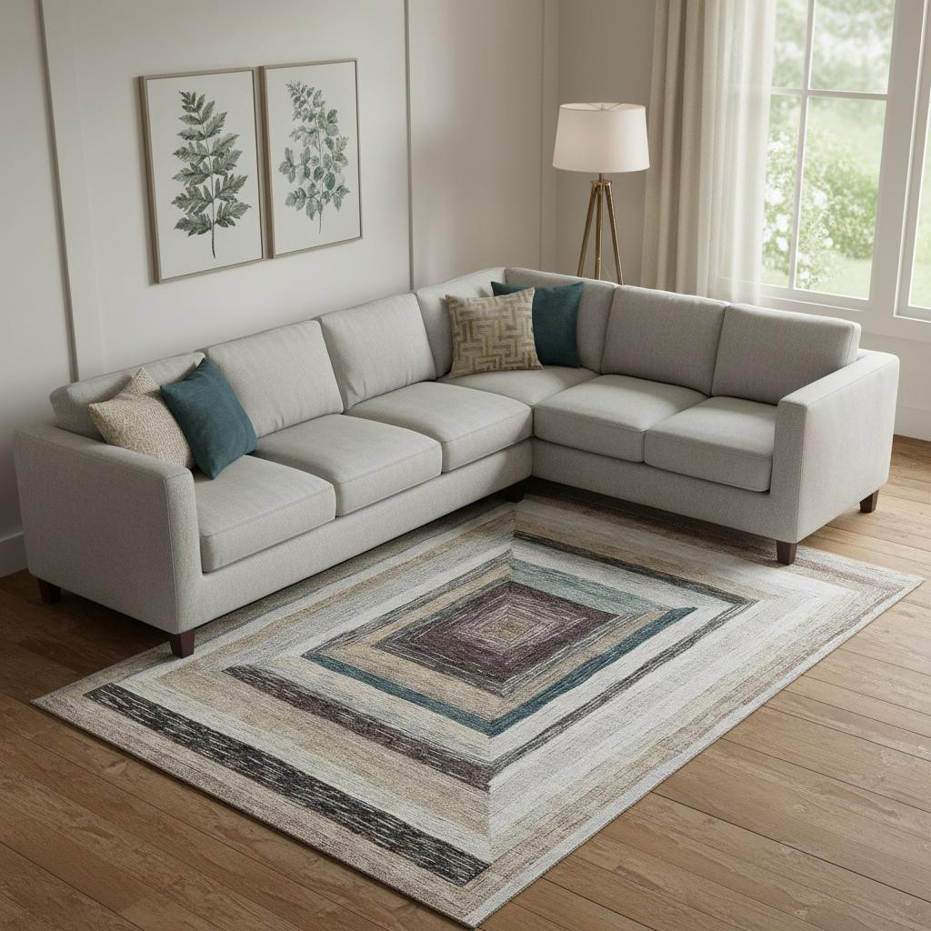 Add some artistry to your room with this 10-foot x 14-foot beige ivory and charcoal geometric washable area rug with uv protection. Ideal for spaces with kids and pets, this rug is stain resistant to help repel dirt and spilled liquids. Built to last, this rug crafted from polyester fibers is known for its durability and long lasting appeal. Rugs are a great way to showcase your style, hide imperfections, warm your home and reduce noise. This larger sized, transitional styled rug is ready to create a focal point or statement piece in your room. 120.00-inch h x 168.00-inch w x 0.39-inch d.