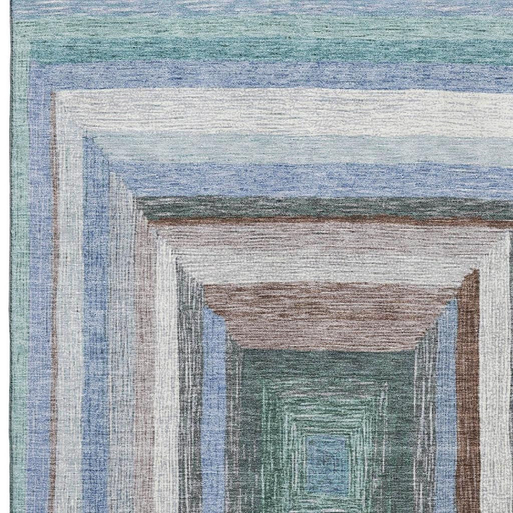 Add great coloration and comfortable texture to your space with this 3-foot x 5-foot denim blue ivory and brown geometric washable area rug with uv protection. Ideal for spaces with kids and pets, this rug is stain resistant to help repel dirt and spilled liquids. Built to last, this rug crafted from polyester fibers is known for its durability and long lasting appeal. Rugs are a great way to showcase your style, hide imperfections, warm your home and reduce noise. This smaller sized, transitional styled rug is just what you need for your walkway, bedside, in front of door, cabinet, refrigerator, or chair. 36.00-inch h x 60.00-inch w x 0.39-inch d.