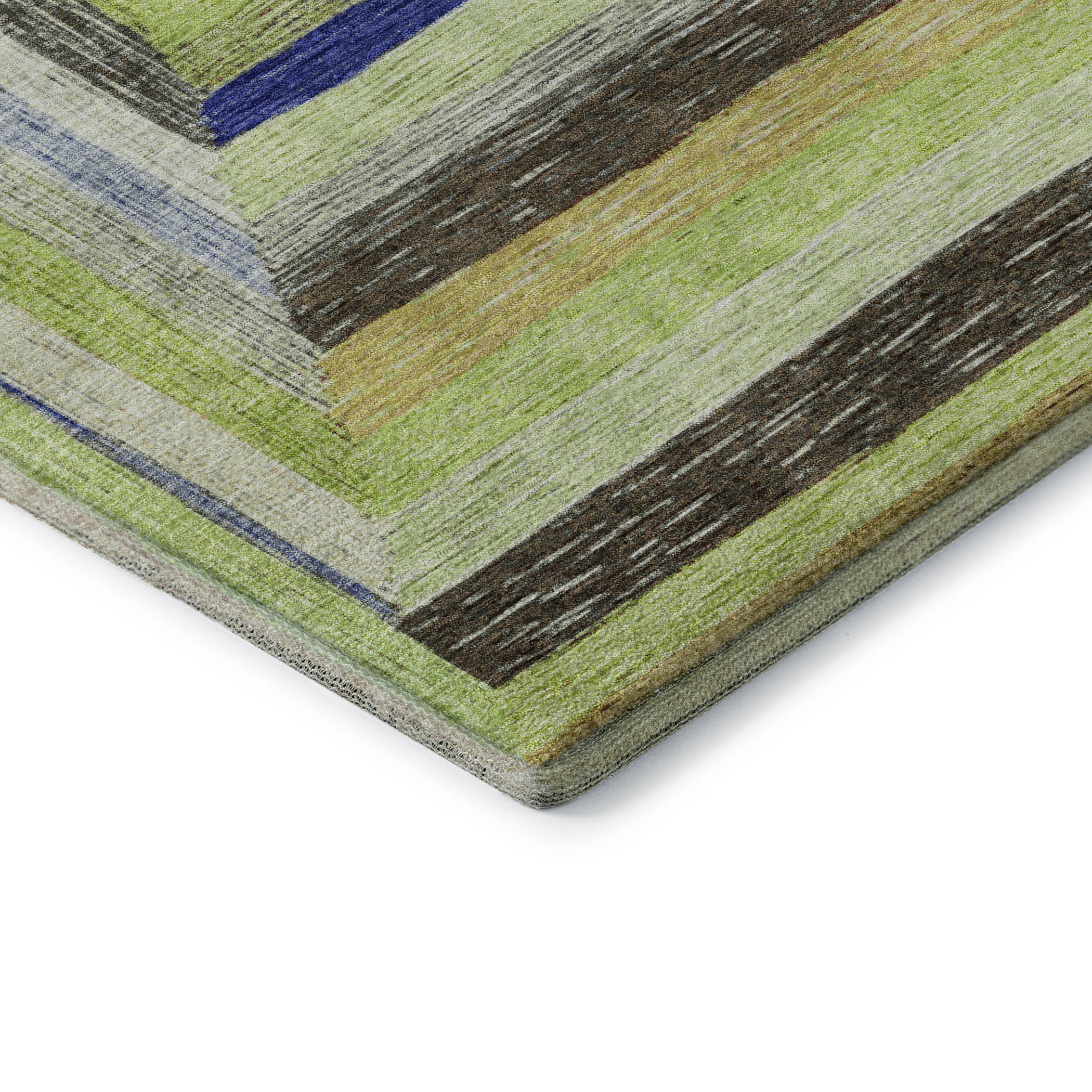 Set an inviting tone in your space with this 3-foot x 5-foot lime green blue and brown geometric washable area rug with uv protection. Ideal for spaces with kids and pets, this rug is stain resistant to help repel dirt and spilled liquids. Built to last, this rug crafted from polyester fibers is known for its durability and long lasting appeal. Rugs are a great way to showcase your style, hide imperfections, warm your home and reduce noise. This smaller sized, transitional styled rug is just what you need for your walkway, bedside, in front of door, cabinet, refrigerator, or chair. 36.00-inch h x 60.00-inch w x 0.39-inch d.