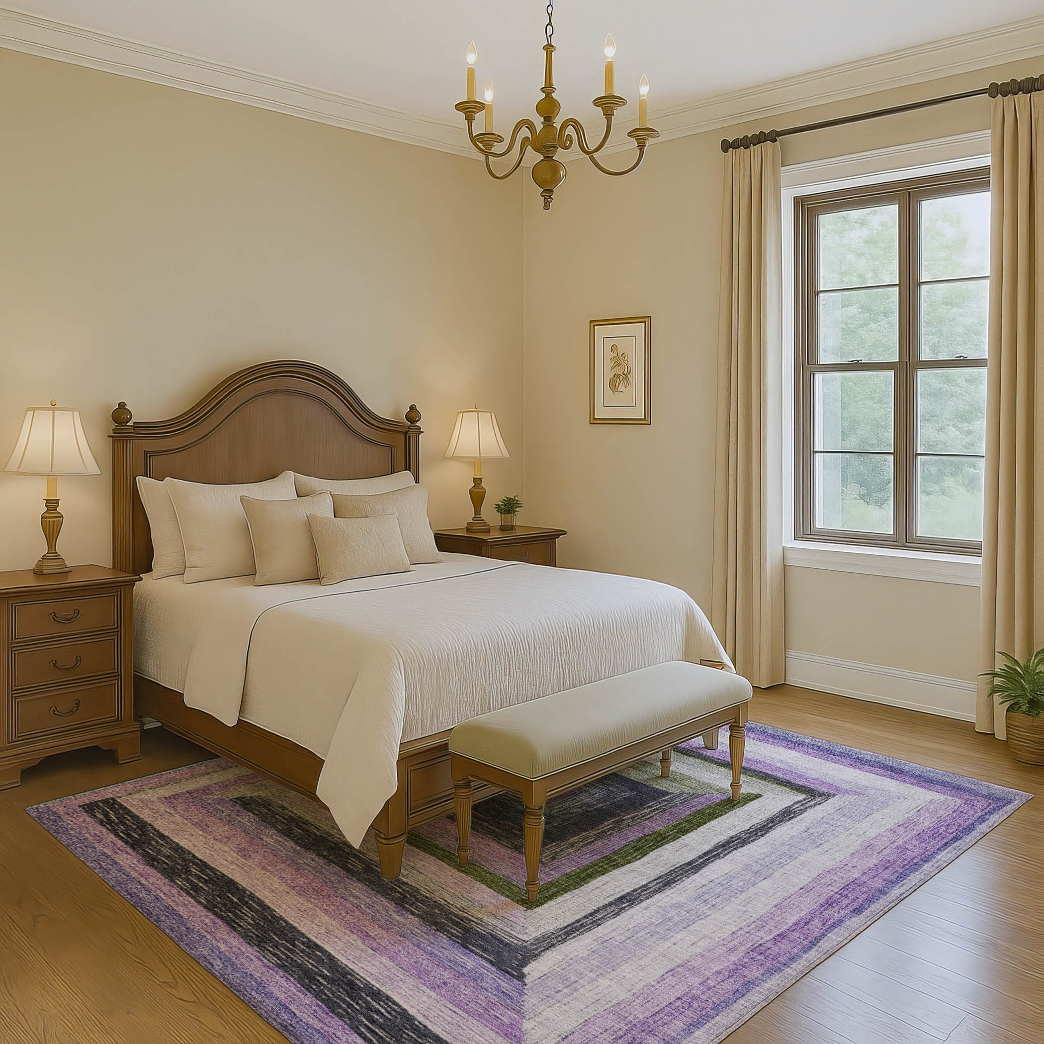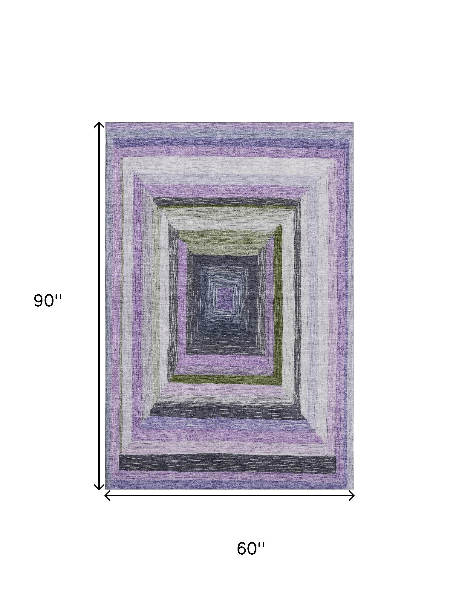 Set an inviting tone in your space with this 5-foot x 8-foot lavender ivory and charcoal geometric washable area rug with uv protection. Ideal for spaces with kids and pets, this rug is stain resistant to help repel dirt and spilled liquids. Built to last, this rug crafted from polyester fibers is known for its durability and long lasting appeal. Rugs are a great way to showcase your style, hide imperfections, warm your home and reduce noise. This larger sized, transitional styled rug is ready to create a focal point or statement piece in your room. 60.00-inch h x 90.00-inch w x 0.39-inch d.
