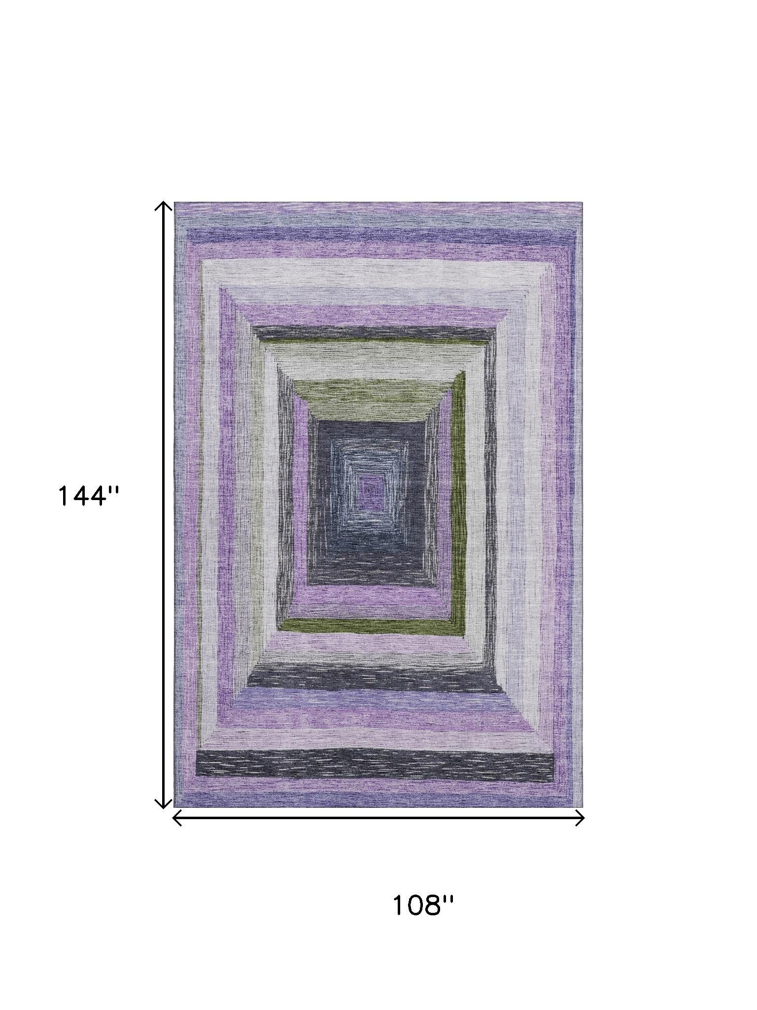 Set an inviting tone in your space with this 9-foot x 12-foot lavender ivory and charcoal geometric washable area rug with uv protection. Ideal for spaces with kids and pets, this rug is stain resistant to help repel dirt and spilled liquids. Built to last, this rug crafted from polyester fibers is known for its durability and long lasting appeal. Rugs are a great way to showcase your style, hide imperfections, warm your home and reduce noise. This larger sized, transitional styled rug is ready to create a focal point or statement piece in your room. 108.00-inch h x 144.00-inch w x 0.39-inch d.