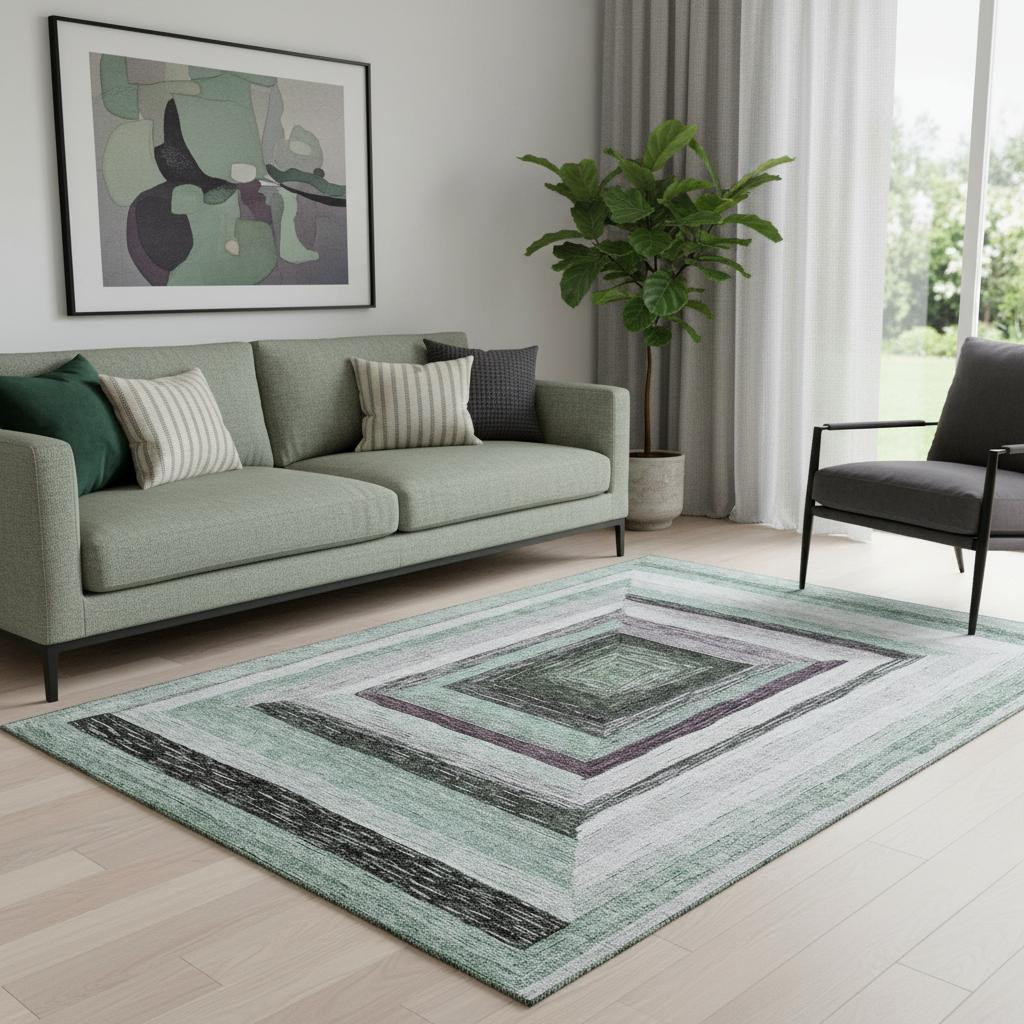 This 5-foot x 8-foot pale aqua ivory and gray geometric washable area rug with uv protection, is a great way to add warmth to a room. Ideal for spaces with kids and pets, this rug is stain resistant to help repel dirt and spilled liquids. Built to last, this rug crafted from polyester fibers is known for its durability and long lasting appeal. Rugs are a great way to showcase your style, hide imperfections, warm your home and reduce noise. This larger sized, transitional styled rug is ready to create a focal point or statement piece in your room. 60.00-inch h x 90.00-inch w x 0.39-inch d.