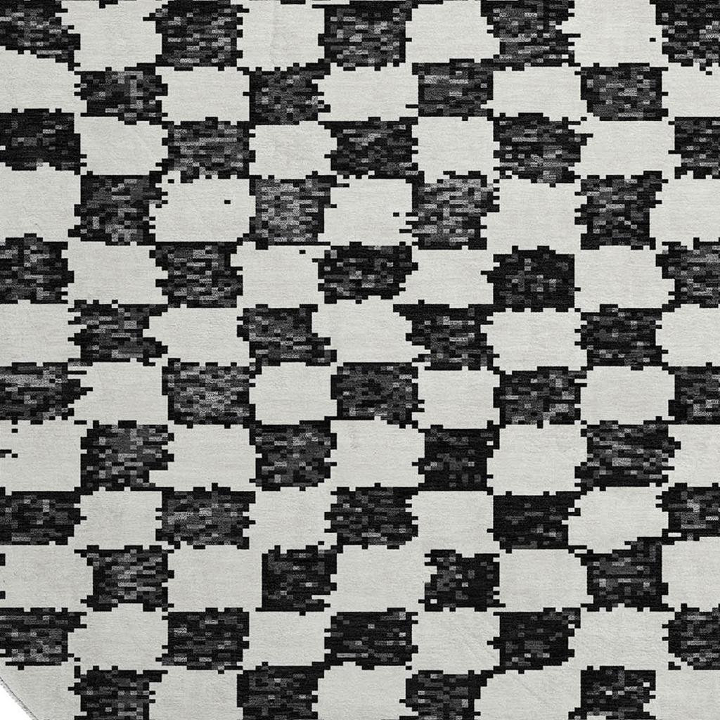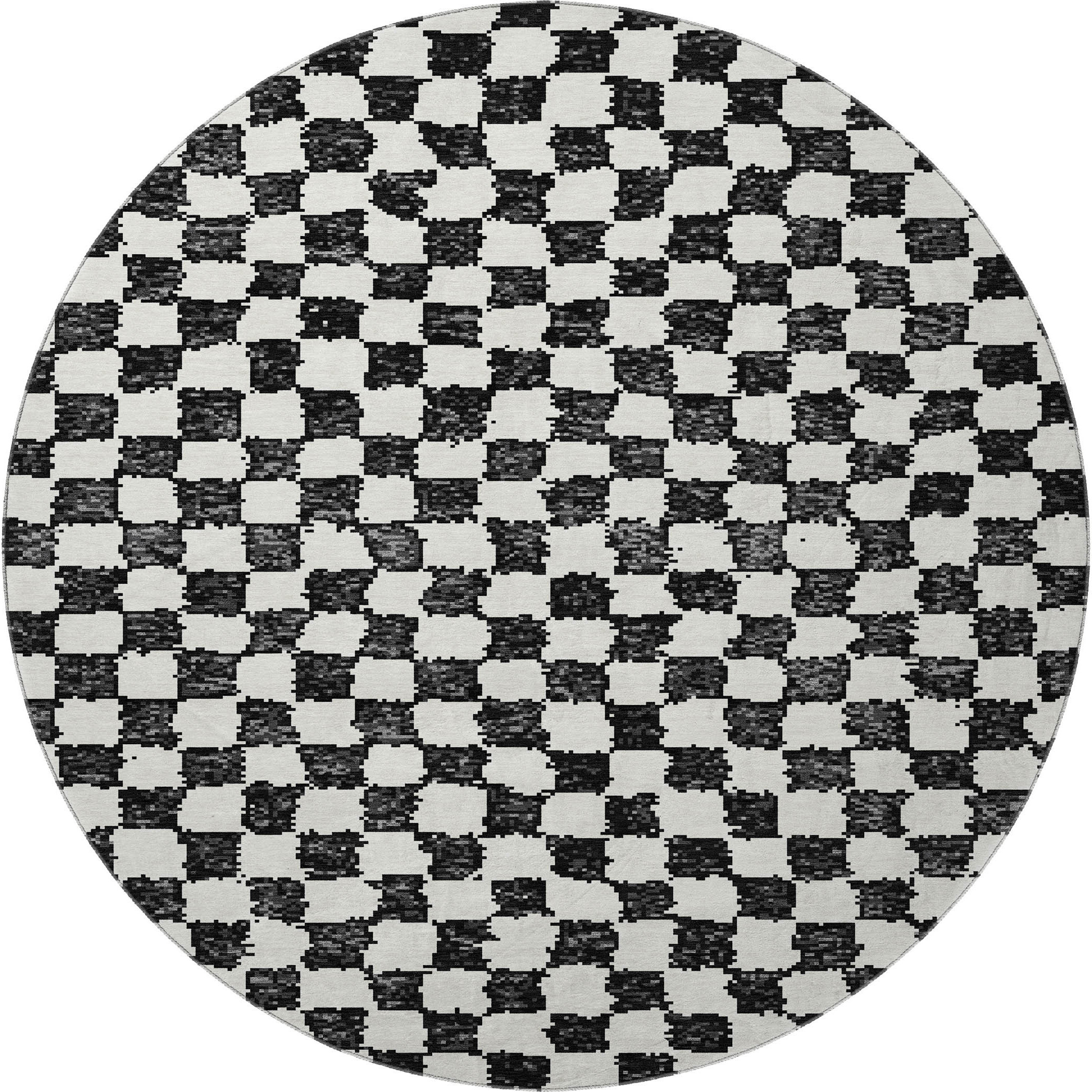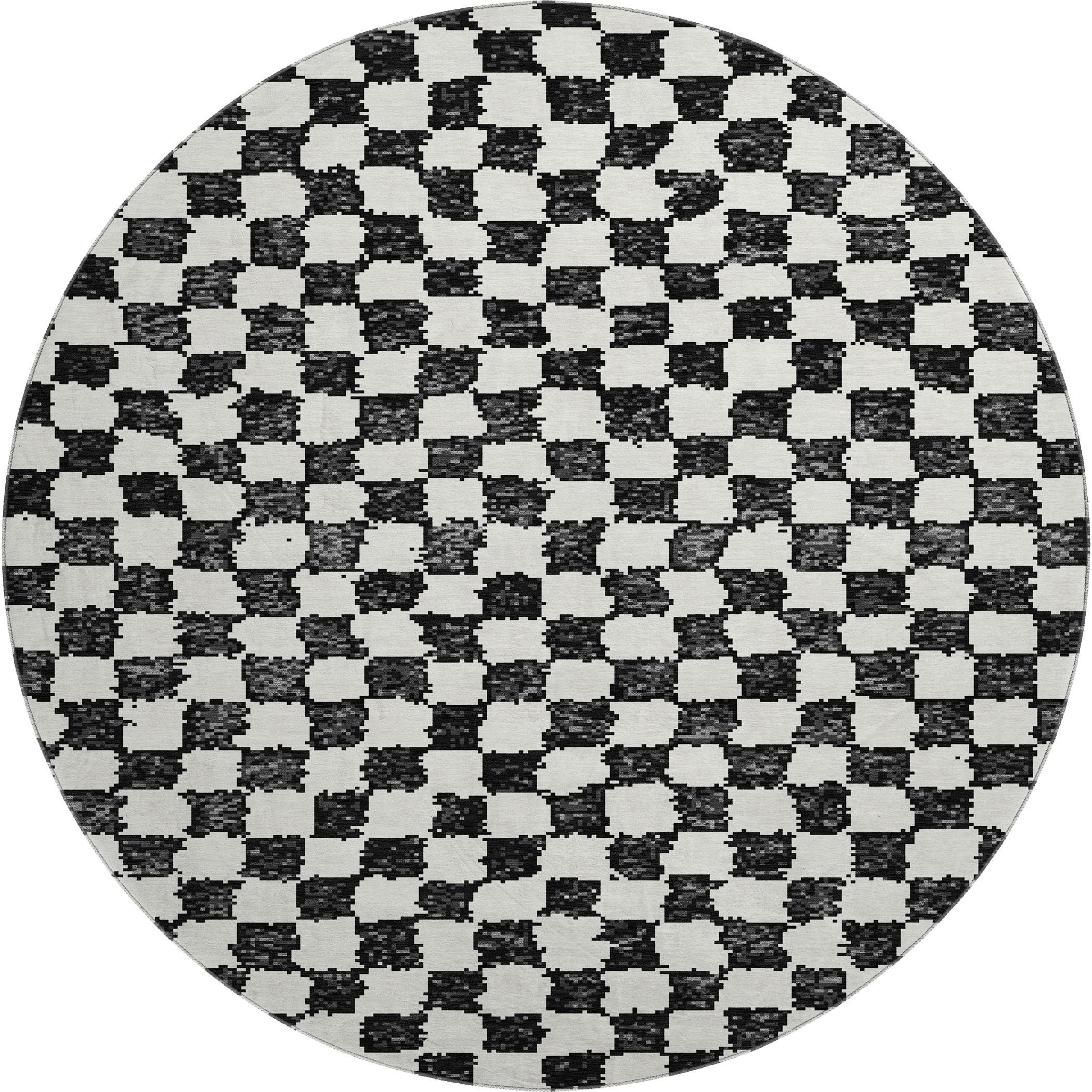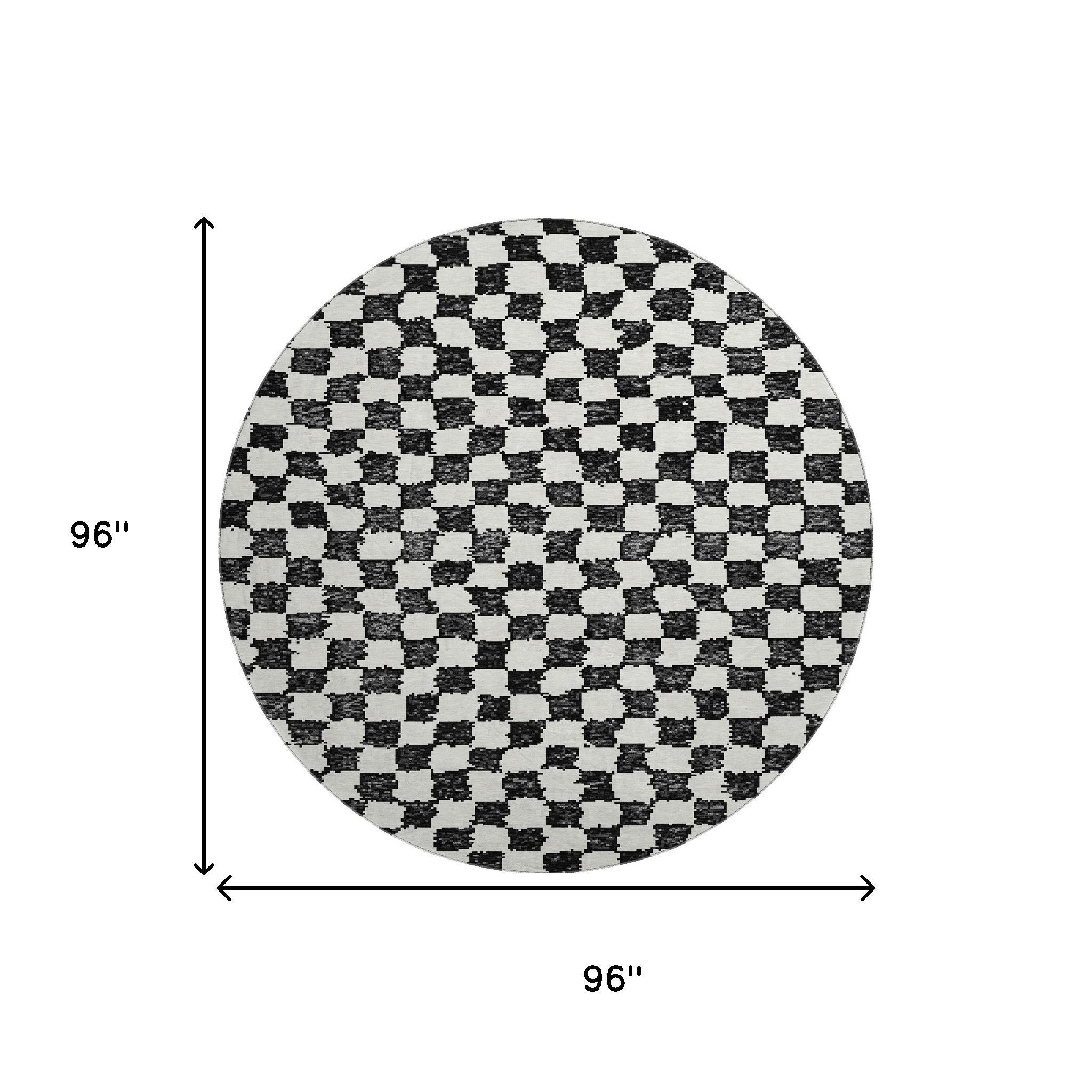 This 8-foot black and ivory geometric washable round rug with uv protection, is a great way to add warmth to a room. Ideal for spaces with kids and pets, this rug is stain resistant to help repel dirt and spilled liquids. Built to last, this rug crafted from polyester fibers is known for its durability and long lasting appeal. Rugs are a great way to showcase your style, hide imperfections, warm your home and reduce noise. This larger sized, transitional styled rug is ready to create a focal point or statement piece in your room. 96.00-inch h x 96.00-inch w x 0.39-inch d.