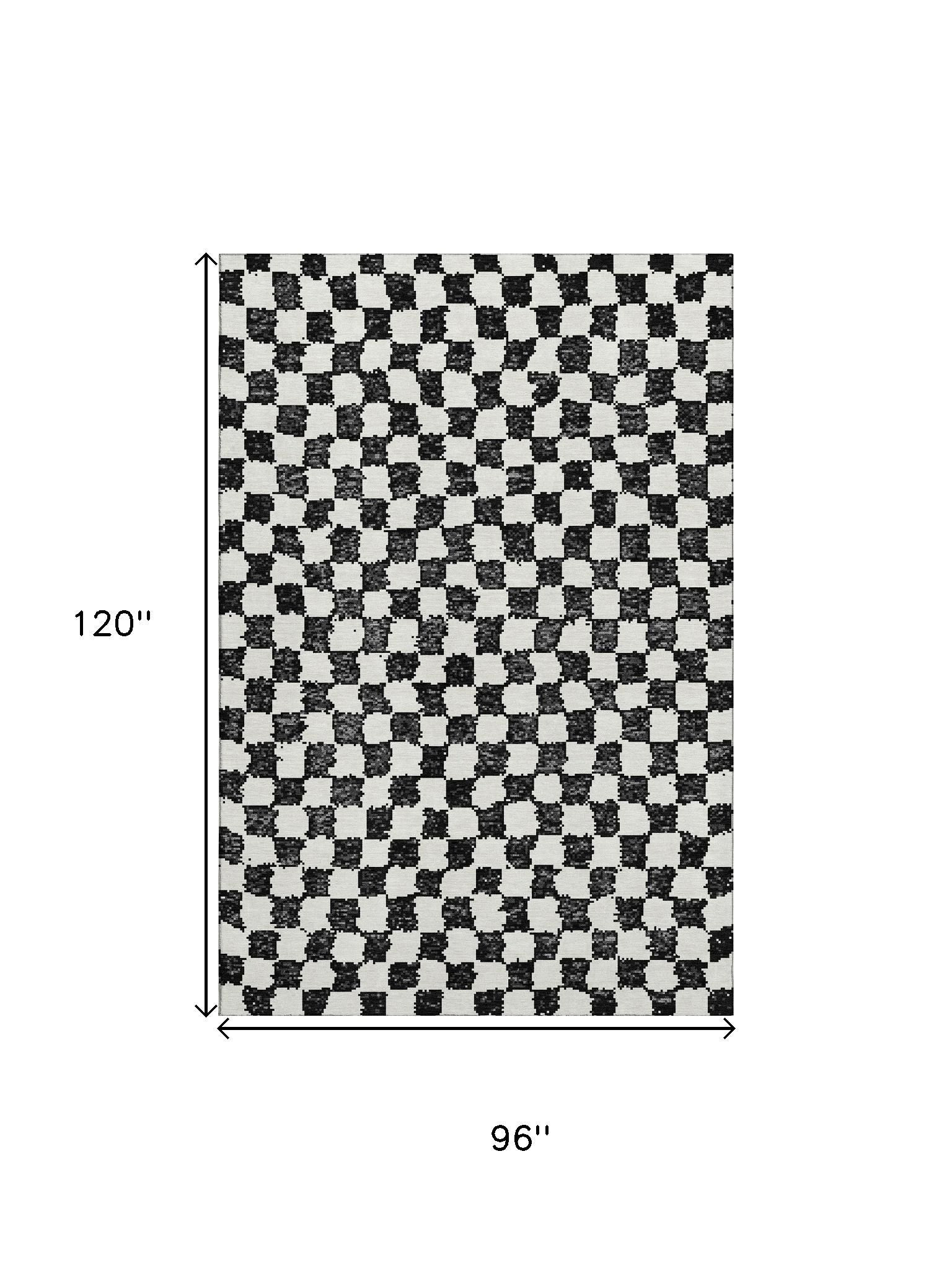 Add great coloration and comfortable texture to your space with this 8-foot x 10-foot black and ivory geometric washable area rug with uv protection. Ideal for spaces with kids and pets, this rug is stain resistant to help repel dirt and spilled liquids. Built to last, this rug crafted from polyester fibers is known for its durability and long lasting appeal. Rugs are a great way to showcase your style, hide imperfections, warm your home and reduce noise. This larger sized, transitional styled rug is ready to create a focal point or statement piece in your room. 96.00-inch h x 120.00-inch w x 0.39-inch d.