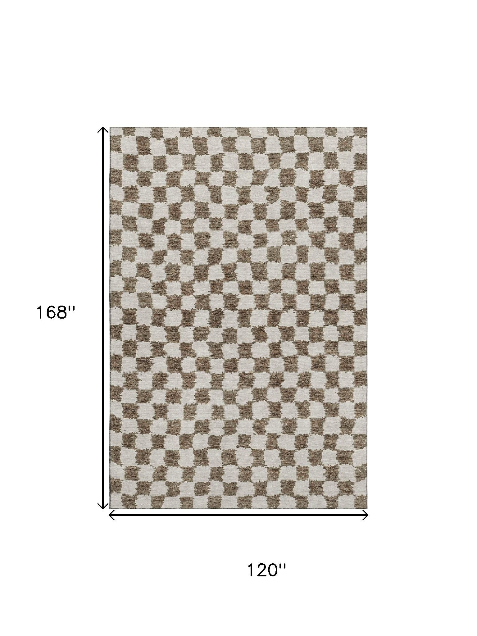 Add some artistry to your room with this 10-foot x 14-foot brown and ivory geometric washable area rug with uv protection. Ideal for spaces with kids and pets, this rug is stain resistant to help repel dirt and spilled liquids. Built to last, this rug crafted from polyester fibers is known for its durability and long lasting appeal. Rugs are a great way to showcase your style, hide imperfections, warm your home and reduce noise. This larger sized, transitional styled rug is ready to create a focal point or statement piece in your room. 120.00-inch h x 168.00-inch w x 0.39-inch d.