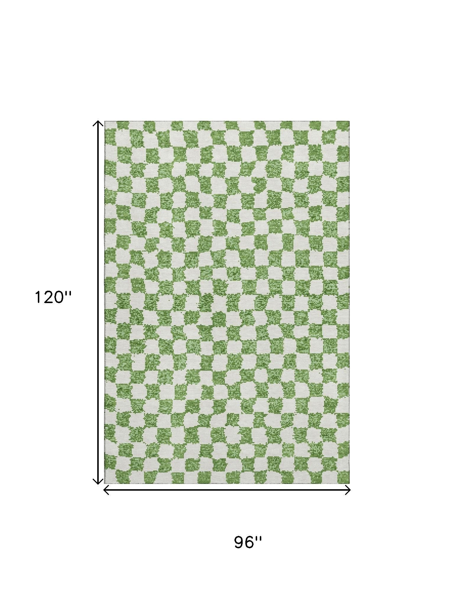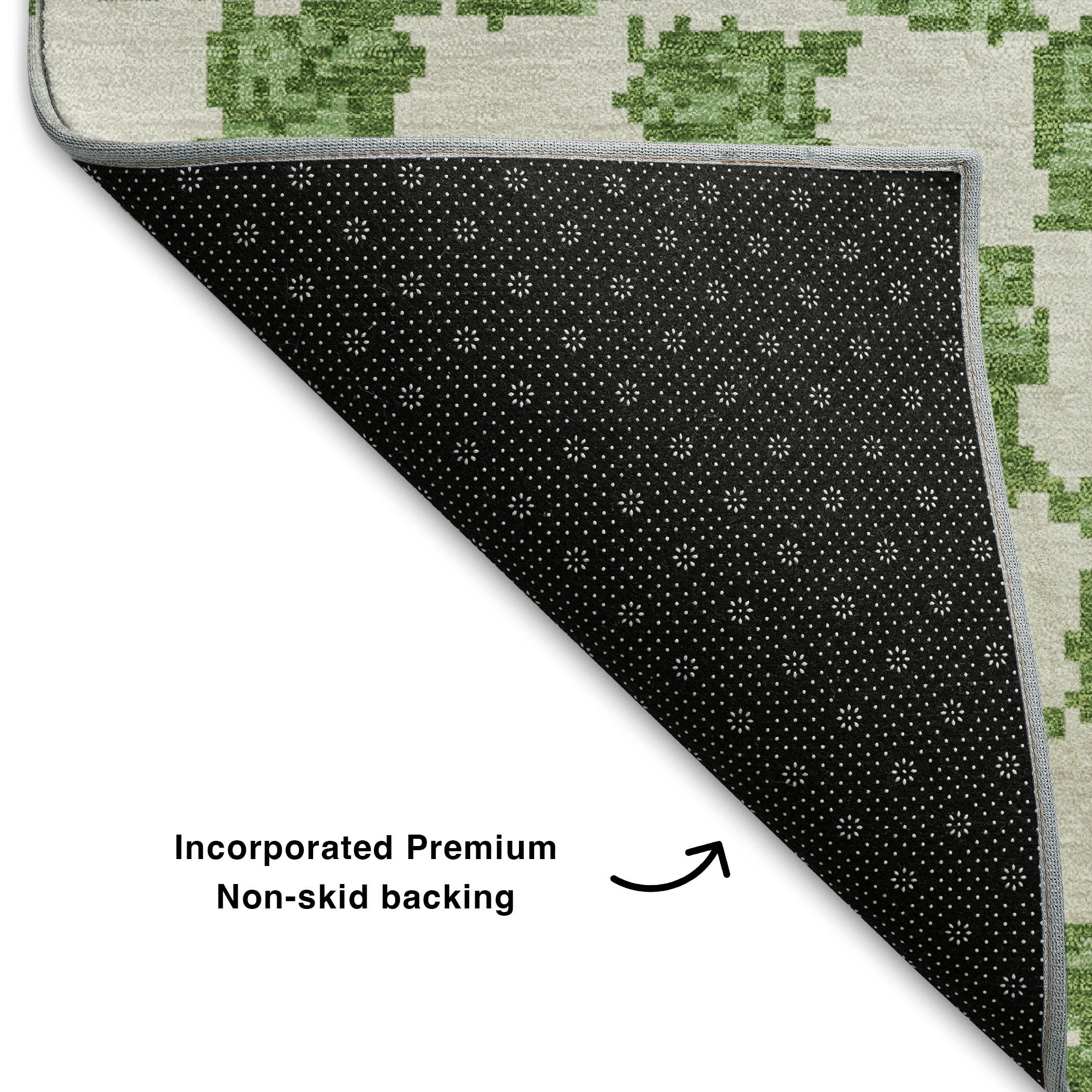Set an inviting tone in your space with this 8-foot x 10-foot green and ivory geometric washable area rug with uv protection. Ideal for spaces with kids and pets, this rug is stain resistant to help repel dirt and spilled liquids. Built to last, this rug crafted from polyester fibers is known for its durability and long lasting appeal. Rugs are a great way to showcase your style, hide imperfections, warm your home and reduce noise. This larger sized, transitional styled rug is ready to create a focal point or statement piece in your room. 96.00-inch h x 120.00-inch w x 0.39-inch d.
